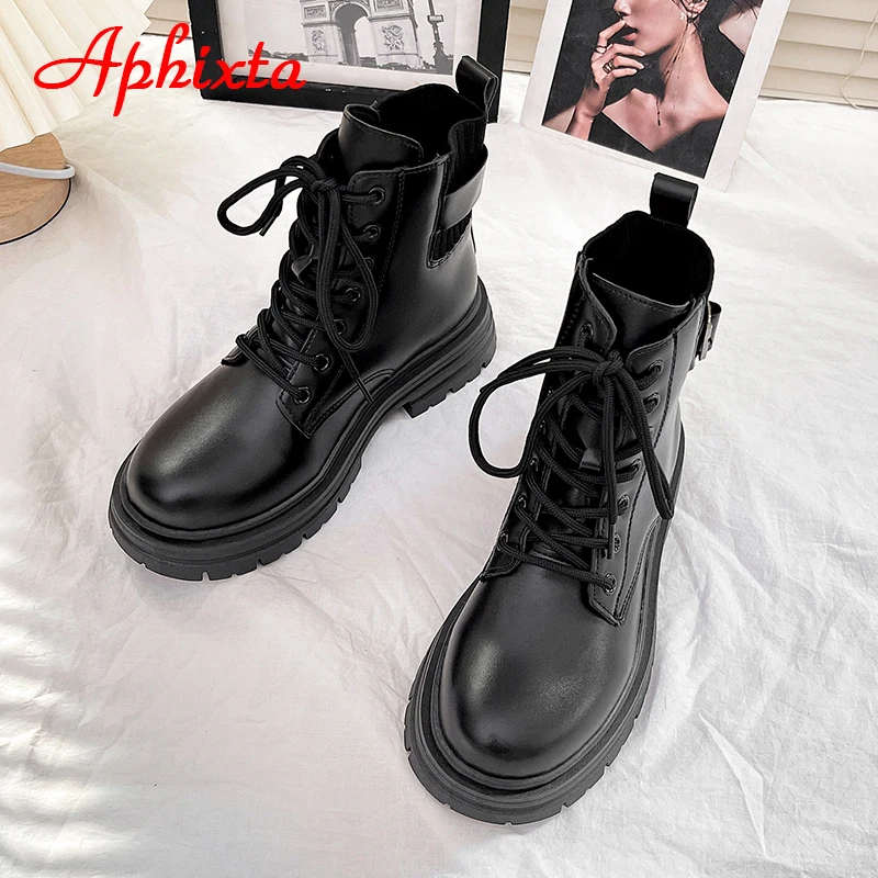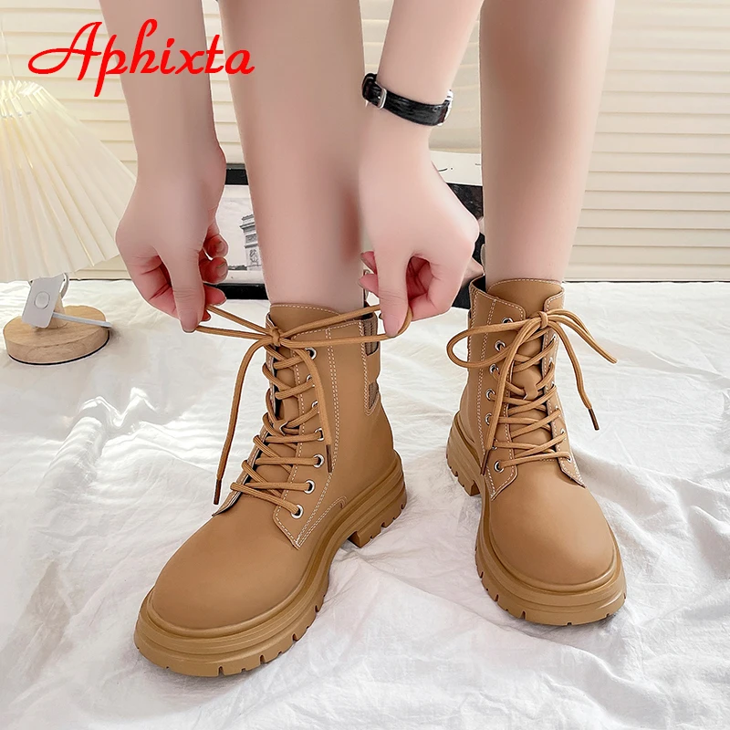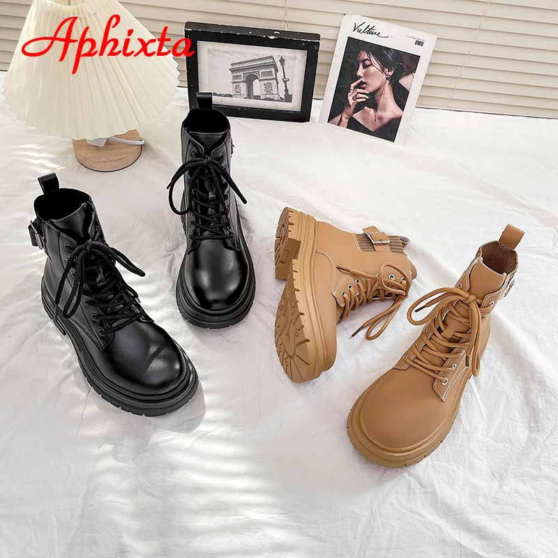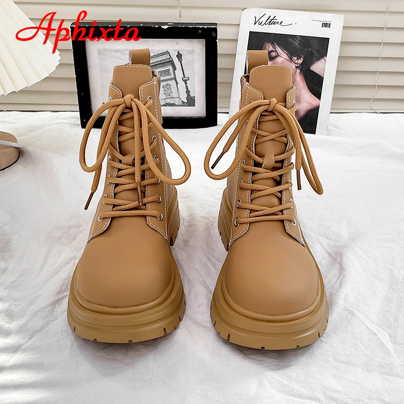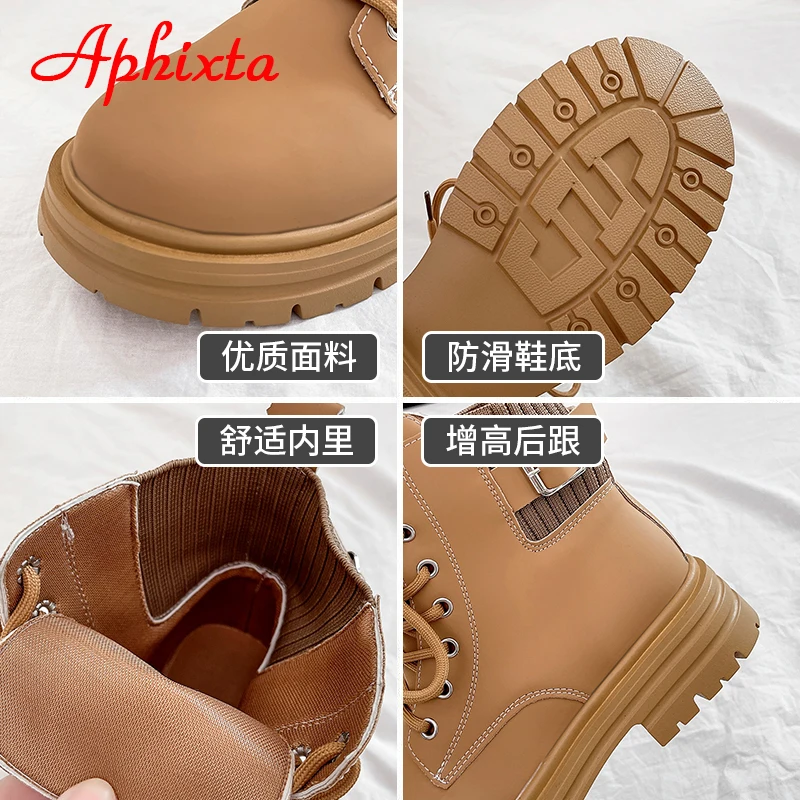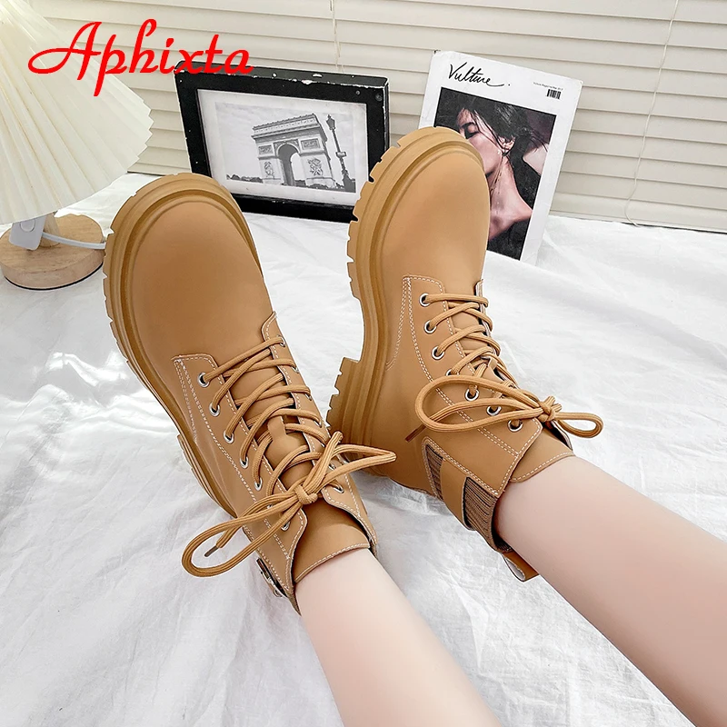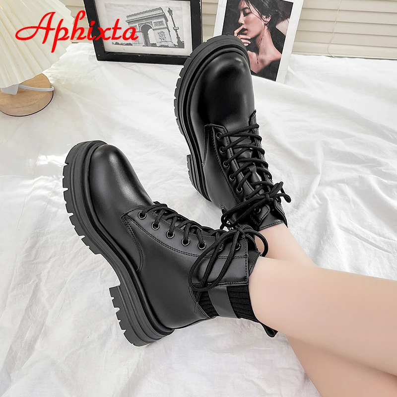 Aphixta Winter Platform Stretch Woolen Shoe Mouth Buckle Thick Sole Boots Women Non-slip Lace-up Waterproof Shoes
