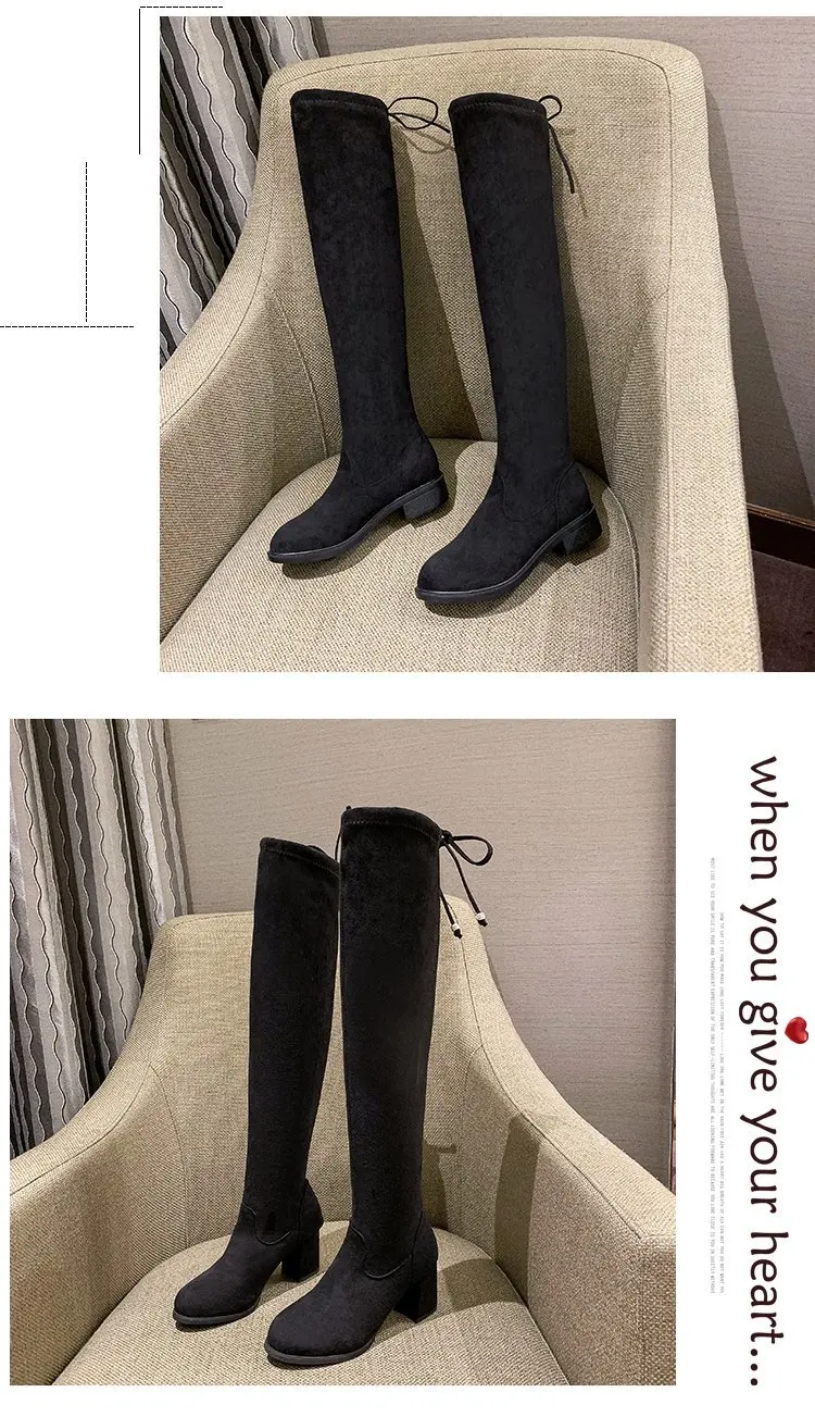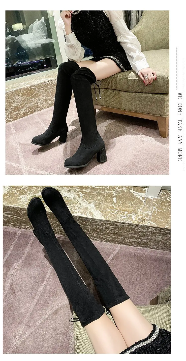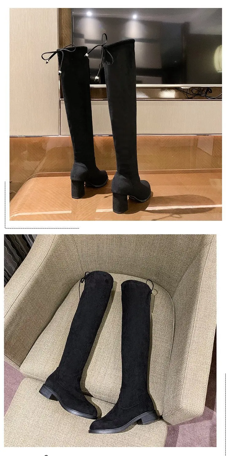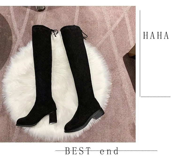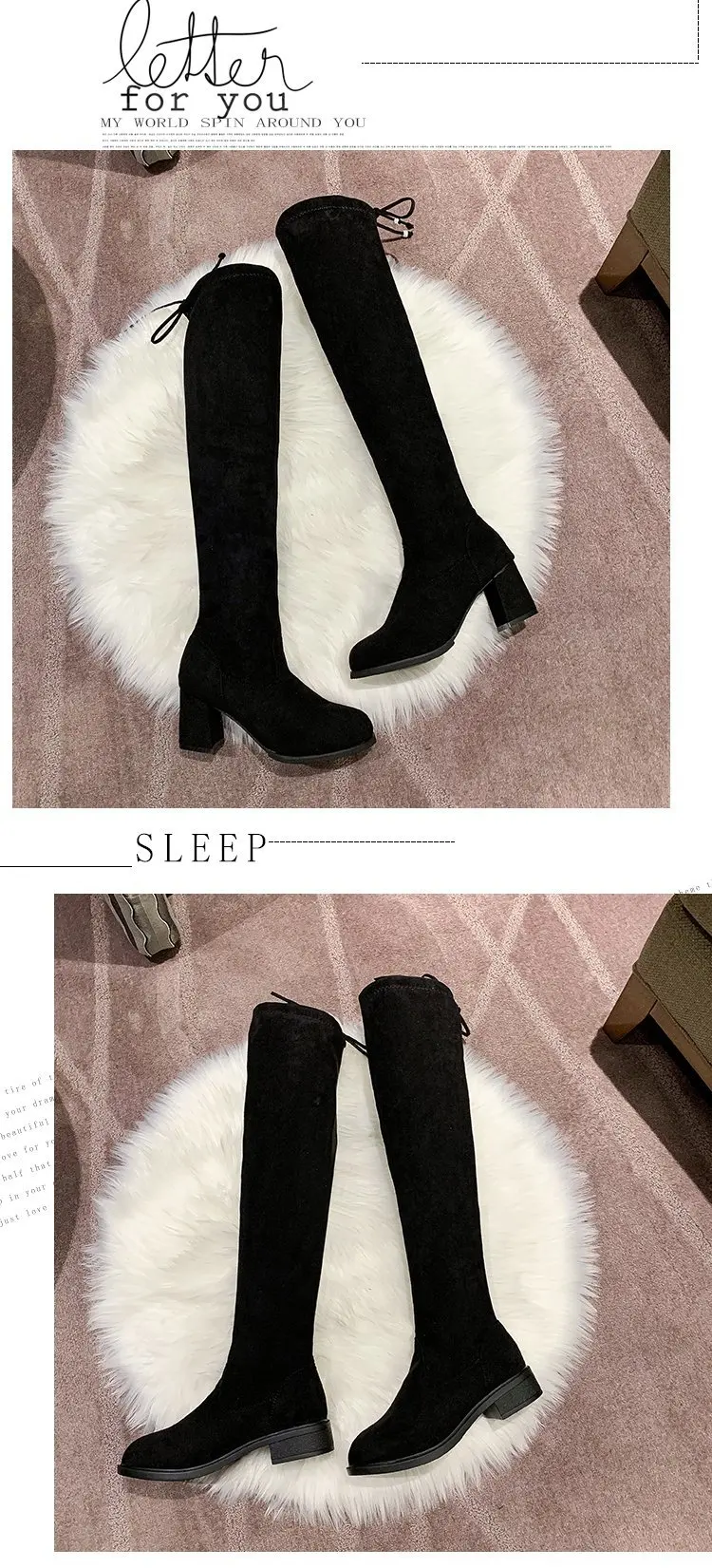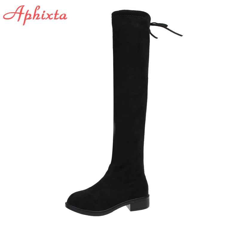 Aphixta Winter Women's High Boots Suede Shoes For Women Square Heel Female Fashion Over-the-Knee Long Botas Mujer Big Size 44
