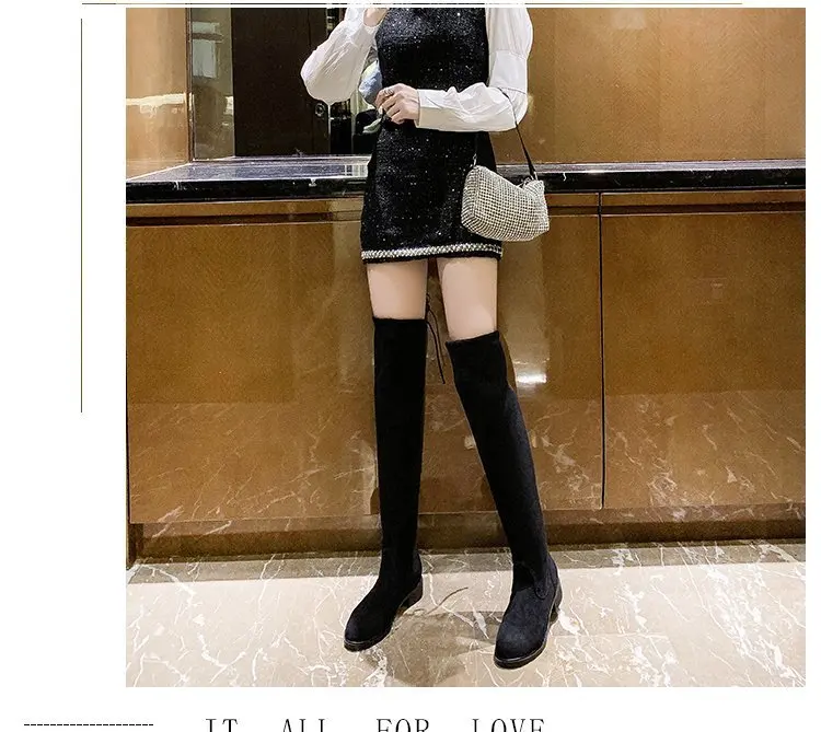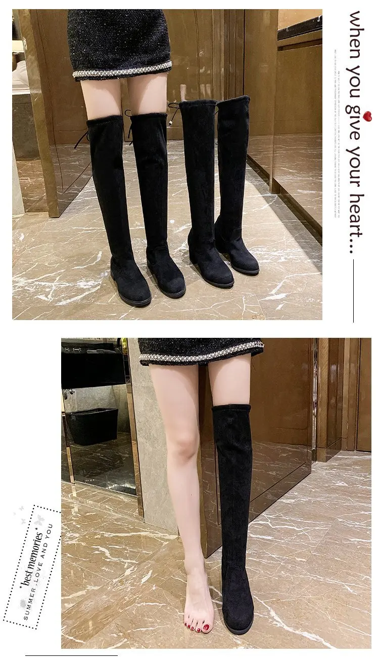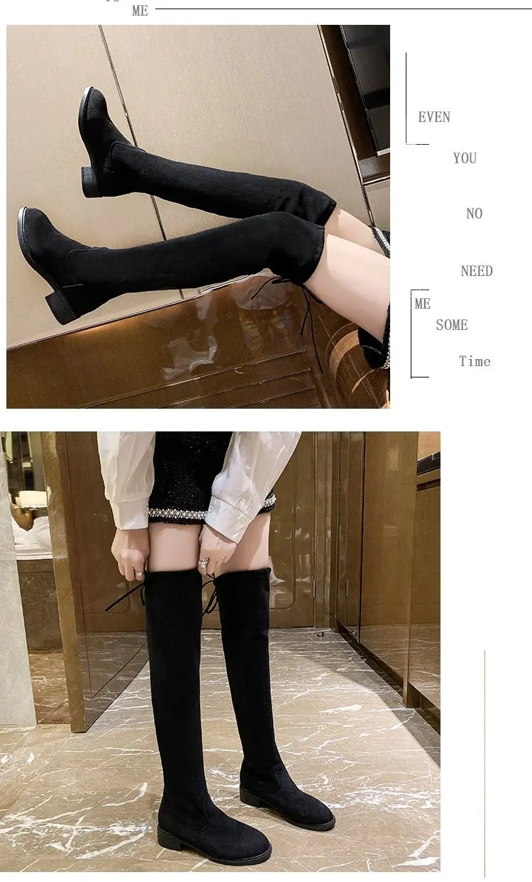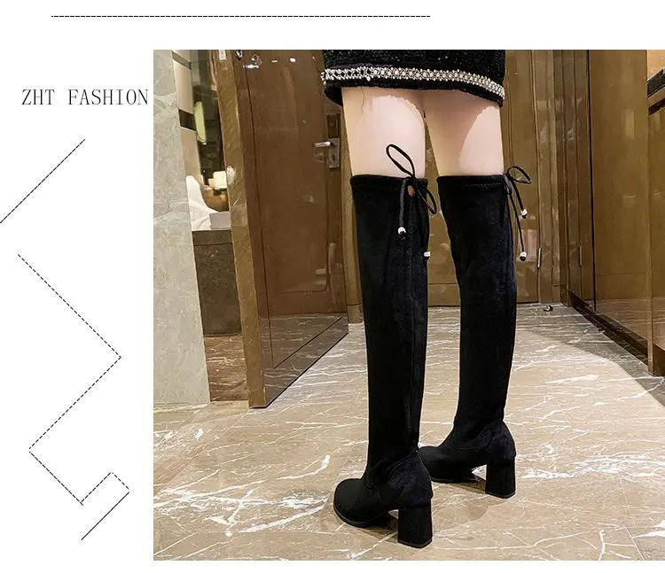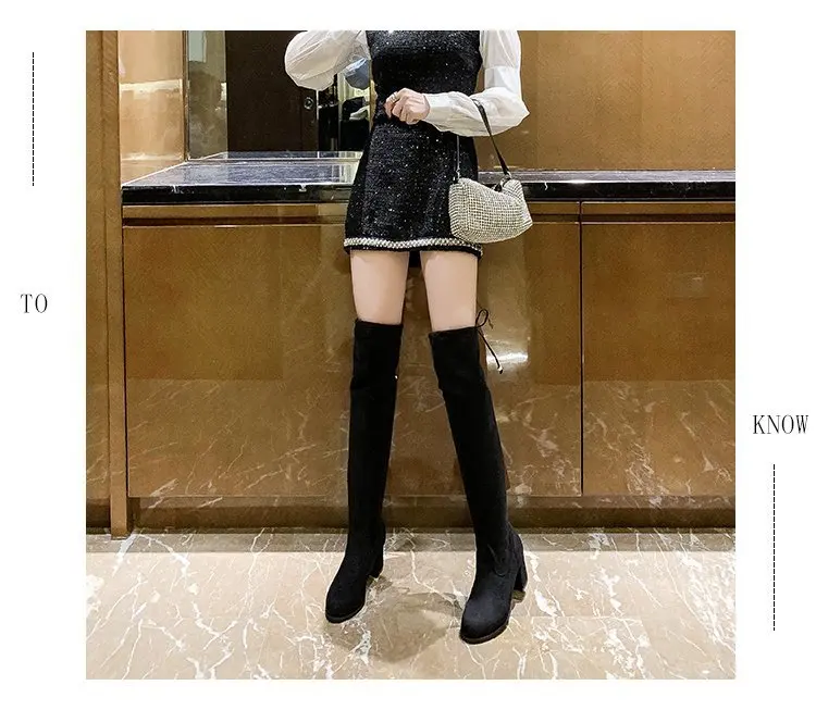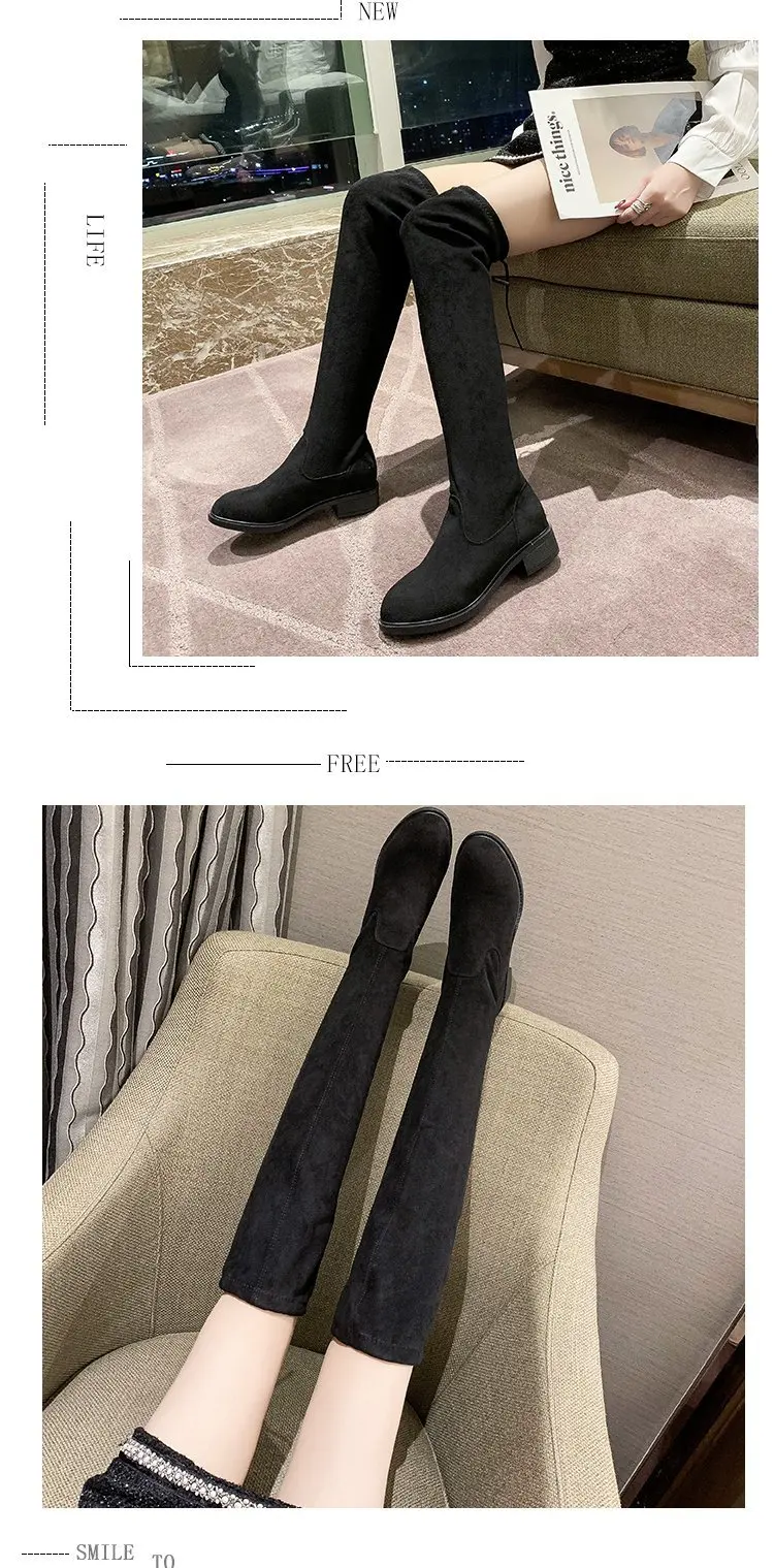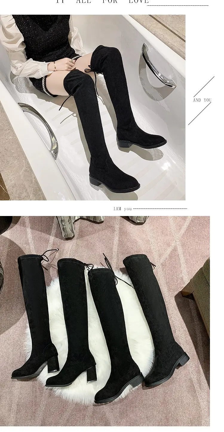 Aphixta Winter Women's High Boots Suede Shoes For Women Square Heel Female Fashion Over-the-Knee Long Botas Mujer Big Size 44