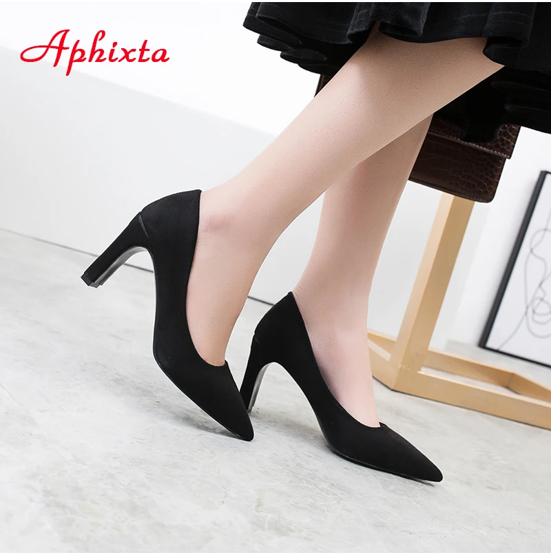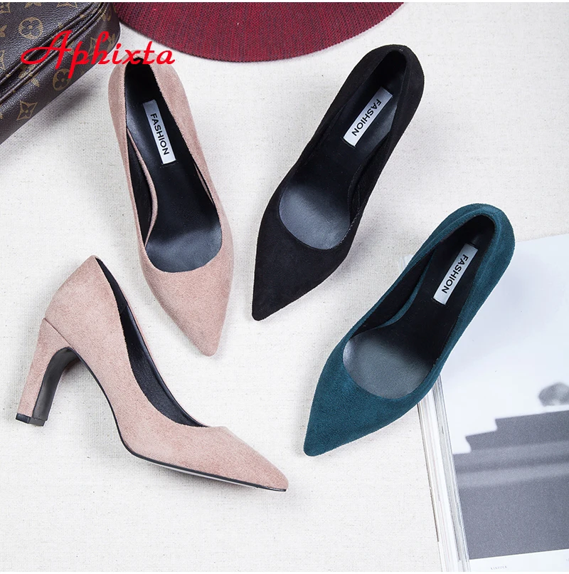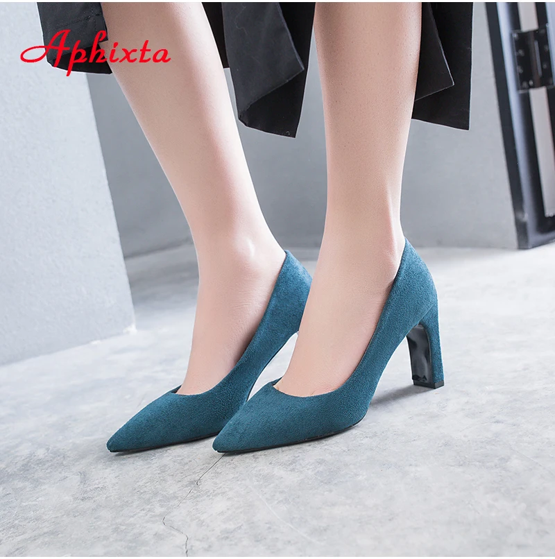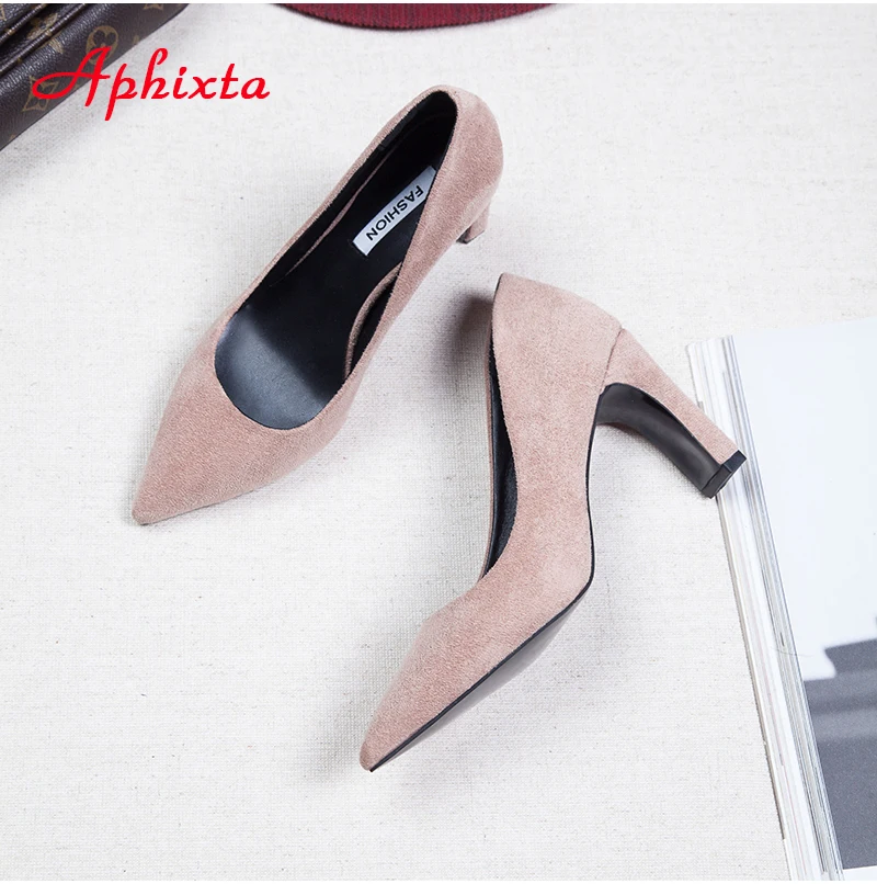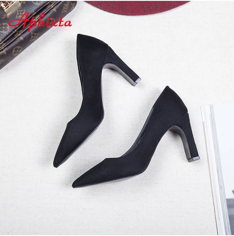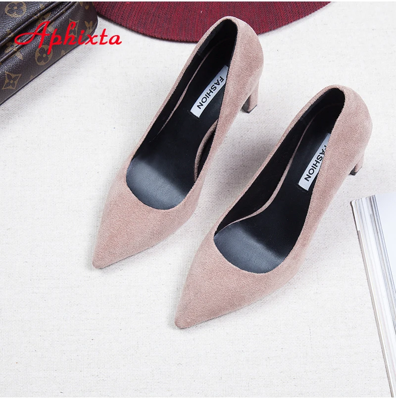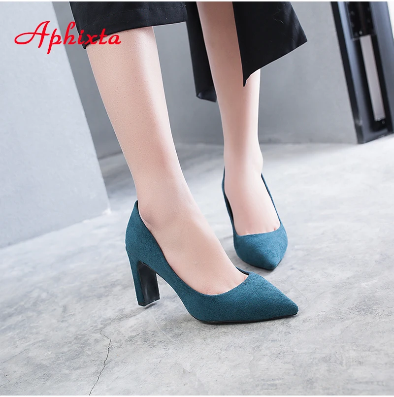 Aphixta Women Pumps Wedding Shoes Woman Official Square High Block Thick Heels Pointed Toe Out Door Women Shoes Size 34-43