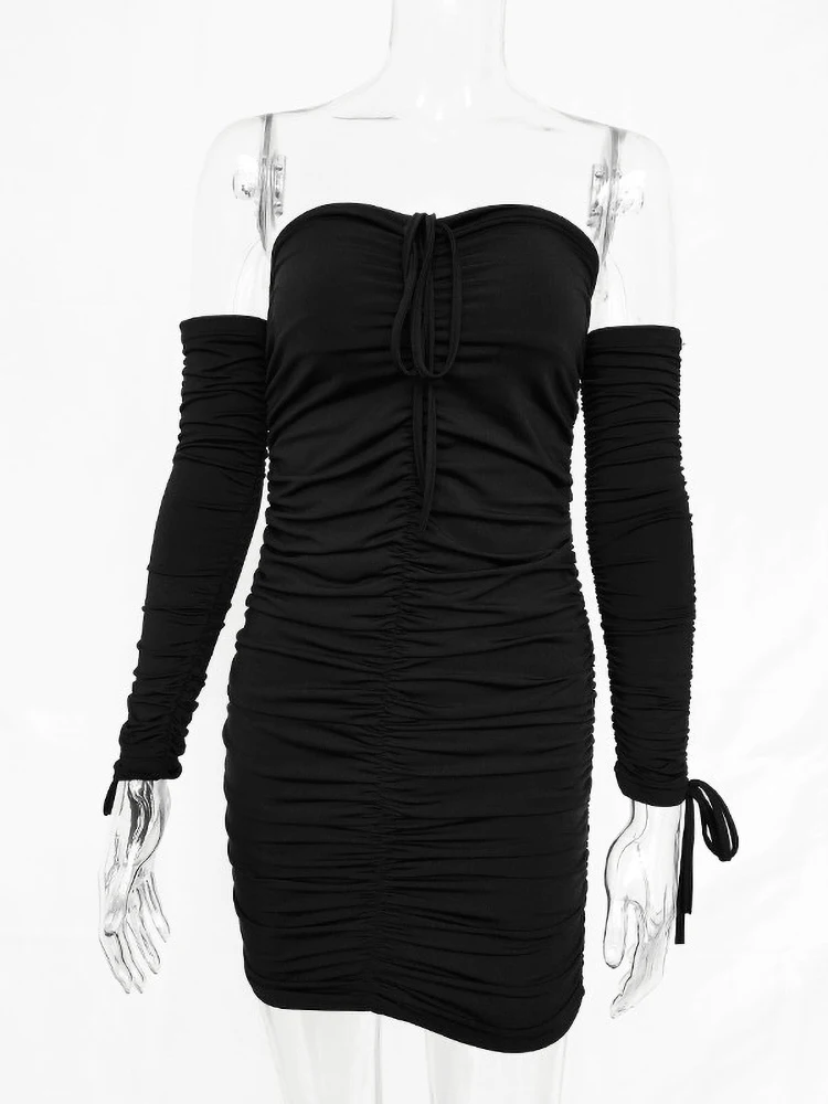 The dress is very beautiful, very dense (even hot in summer) does not shine. The only sleeves look weird, but sewn well. I think they spoil and wear during the day without them) the dress stretches, on my 83-64-93 s perfectly, in length also can be adjusted perfectly