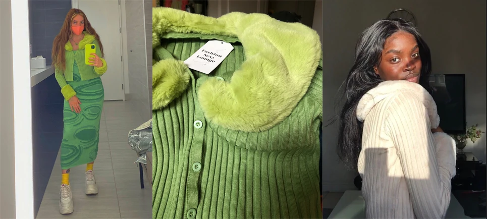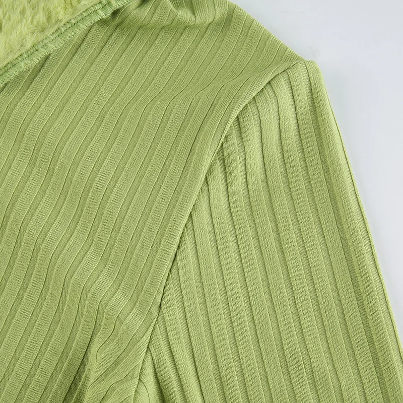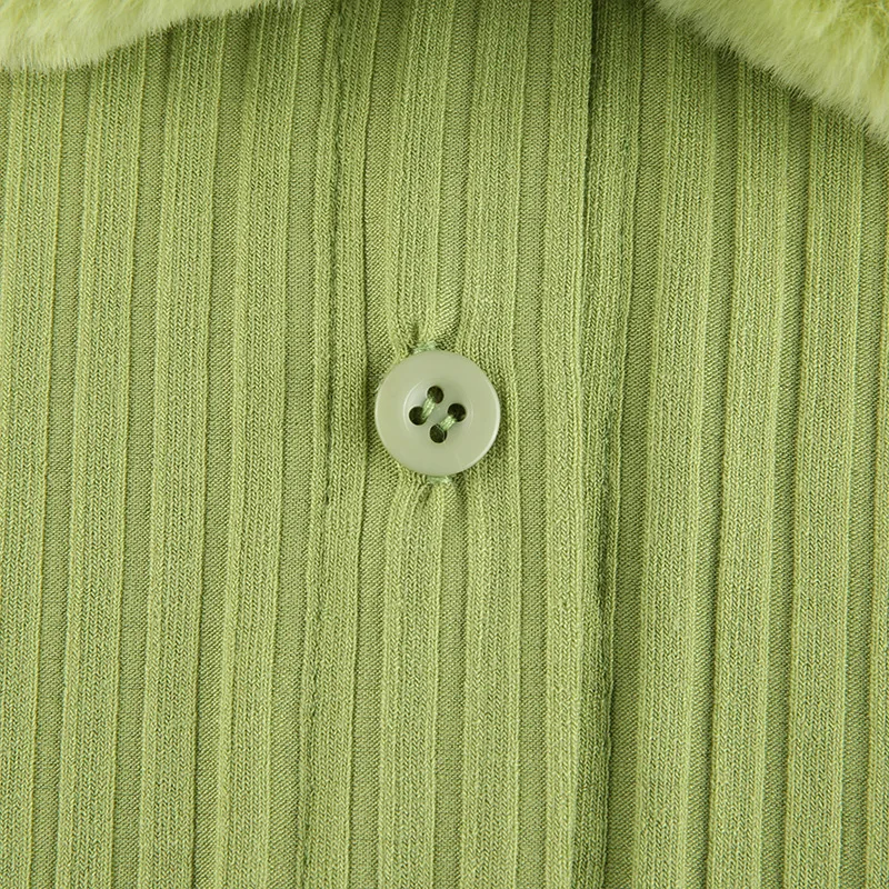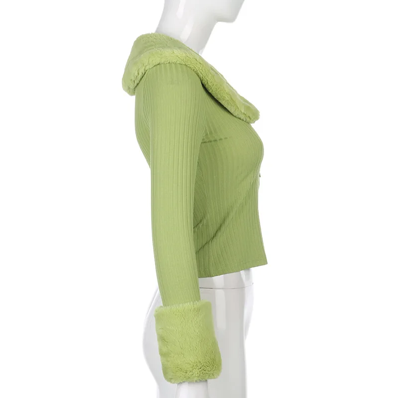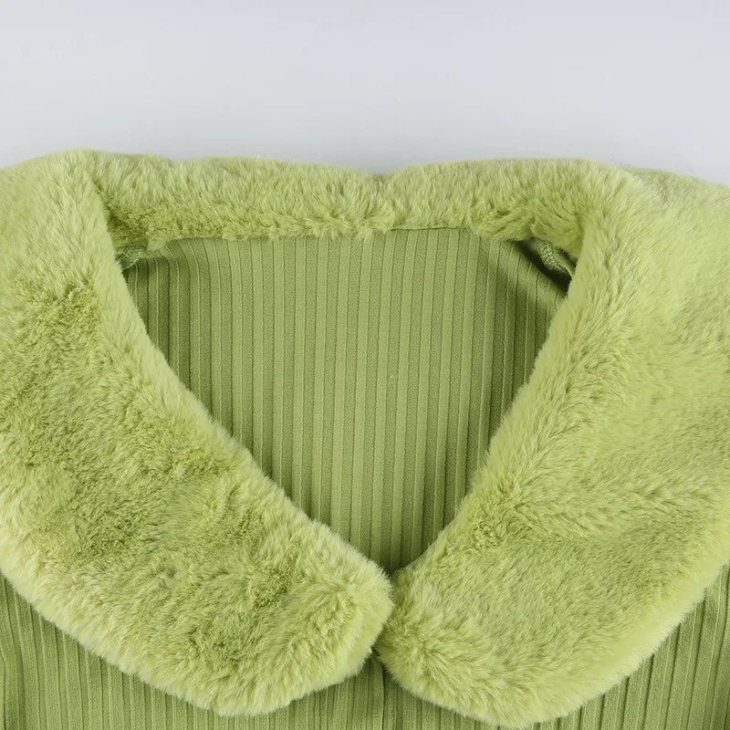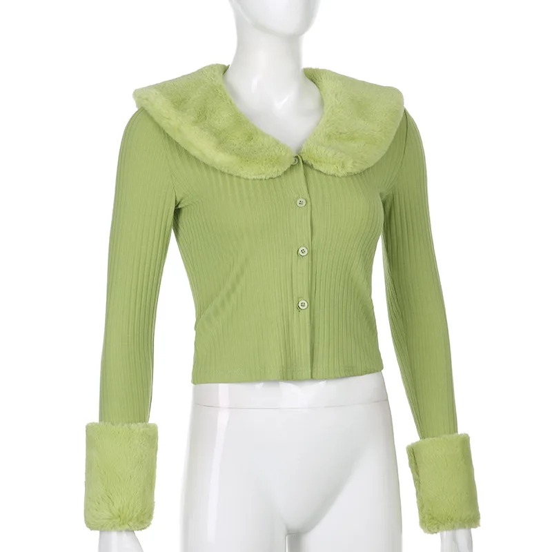 Artsu Ribbed Knitted Cardigans Sweaters With Fur Trim Collar Long Sleeve Slim Autumn Winter Jumpers Women Knitwear Chic 42015