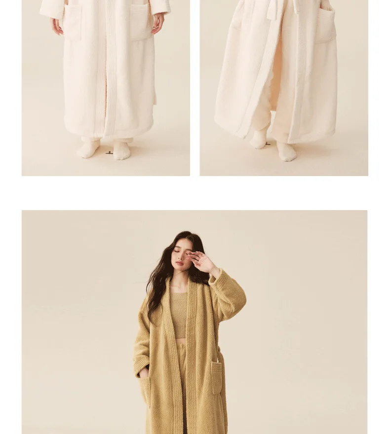 Autumn and Winter Ladies Pajamas Velvet New Longer Thick Robe Vest Trousers 3 Piece Set Soft Warm Sleepwear Casual Homewear Suit