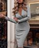 Autumn Long Sleeve Bodycon Elegant Office Lady Dress Fashion Houndstooth Print Sexy V-neck Slim Pencil Dresses For Women 2021