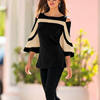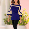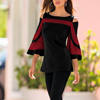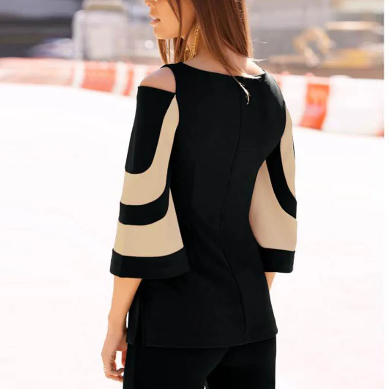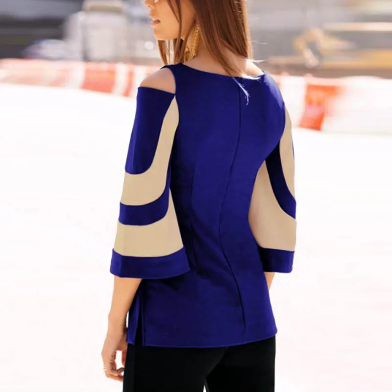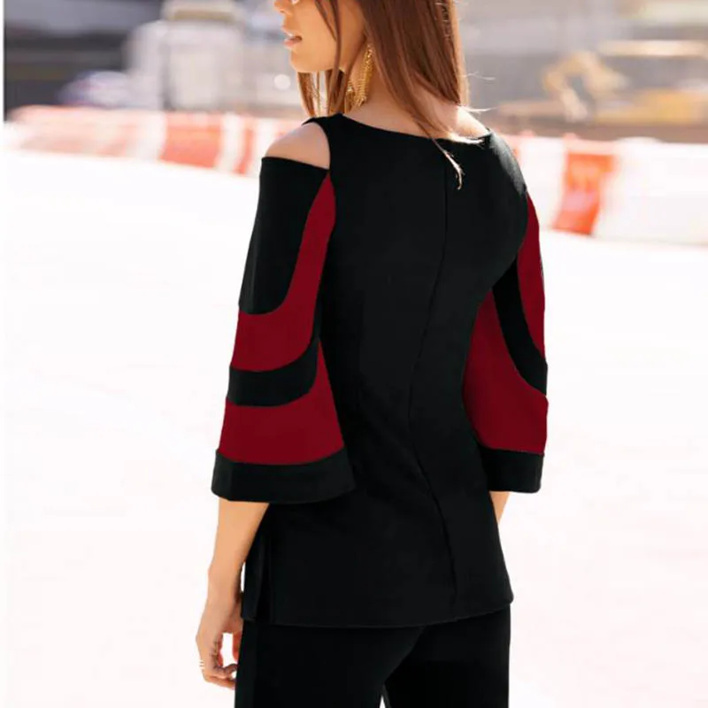 Autumn Long-sleeve Women Blouse Fashion O-neck Half Sleeve Off Shoulder Ladies Office Shirts Vintage Print Casual Female Tops