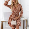 Autumn Long-sleeved Dress Women Fashion Casual Sexy Deep V Neck Ladies Mini Dress Vintage Printed Elegant Female Party Dresses