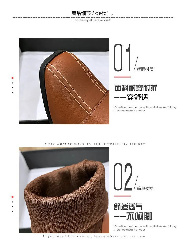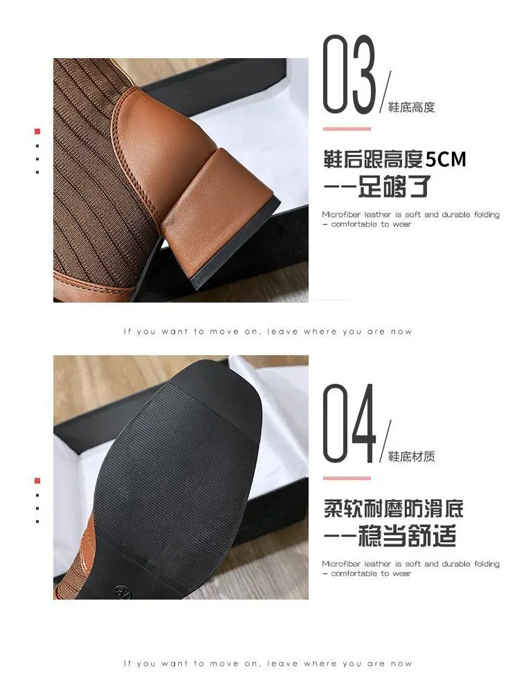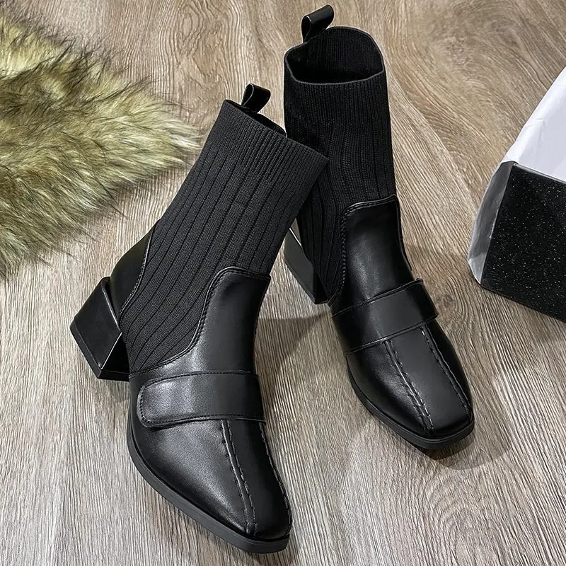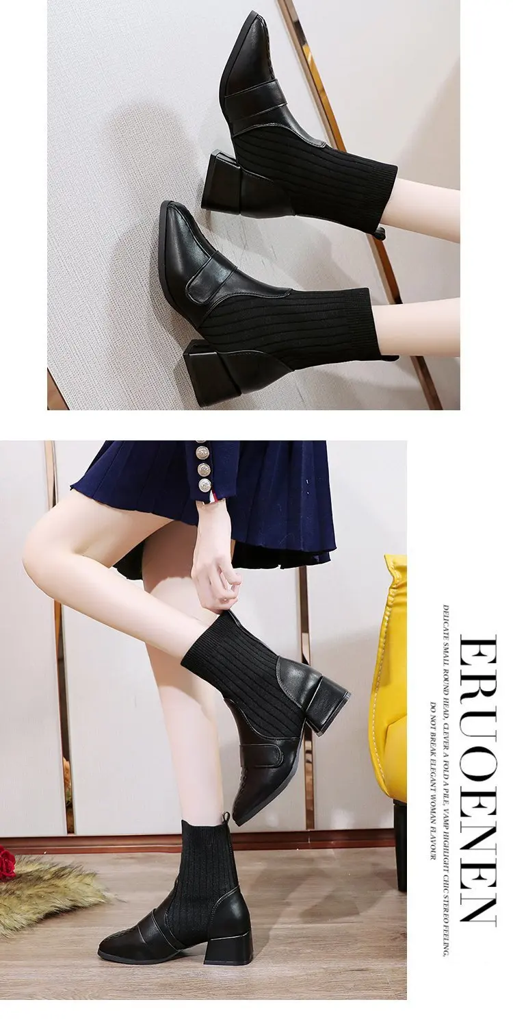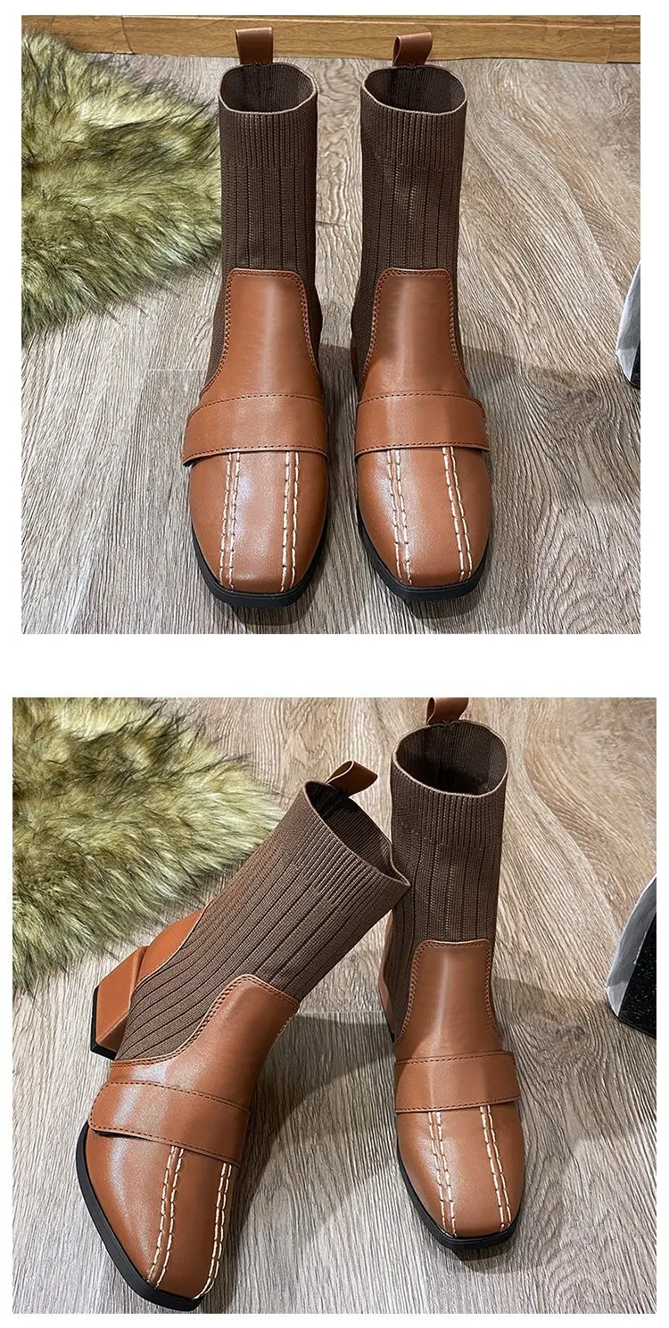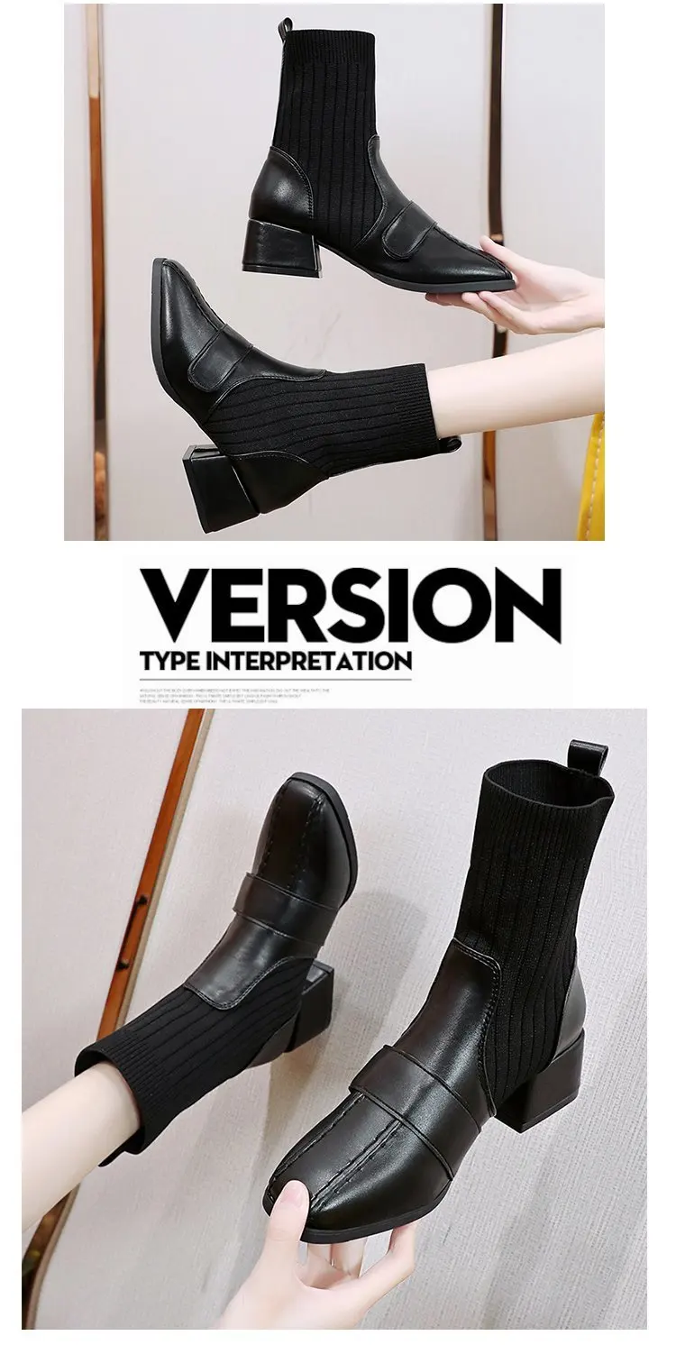 Autumn New Dress British Shoes Knitted Sock Booties Low Heel Vintage Ankle Boots for Women2021