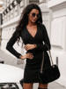 Autumn Trend Women’s Long Sleeve V-neck Party Sweater Short Mini Dress Jumper Mini Dress Winter V-neck Party Dresses
