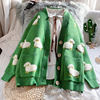 Autumn Winter Knitted Female Cardigan Loose Streetwear Knit Sweater Coat Cute Cartoon Print V Neck knitted cardigan Women Jacket