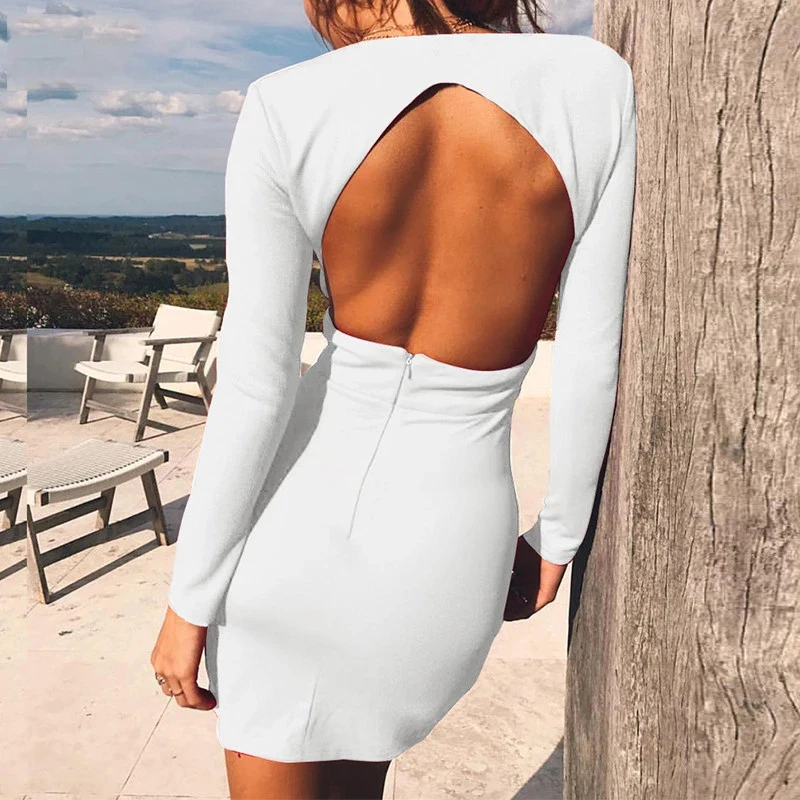 Autumn Winter Ruched Long Sleeve Bodycon Dress Sexy V Neck Open Back Mini Club Party Dresses Women Hip skirt