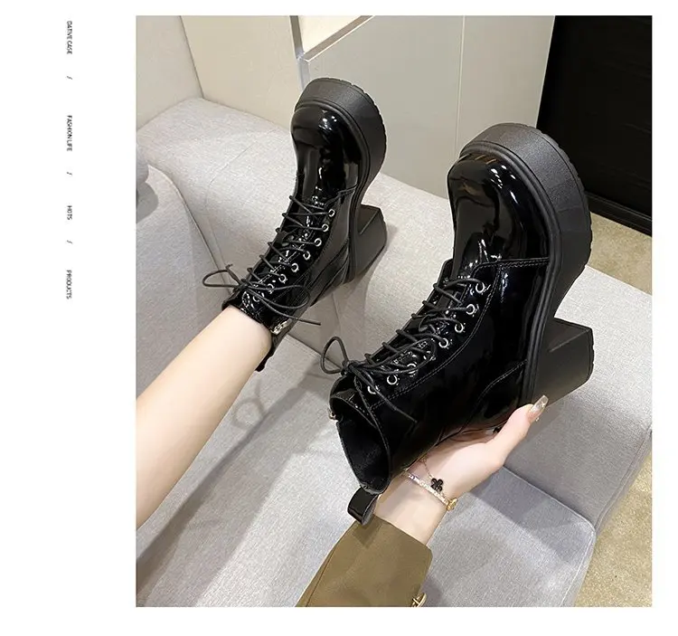 Autumn Winter Women Ankle Boots Waterproof Platform Lace Up Thick Heel Short Boots Fashion 9cm High Heel Leather Botas for Women