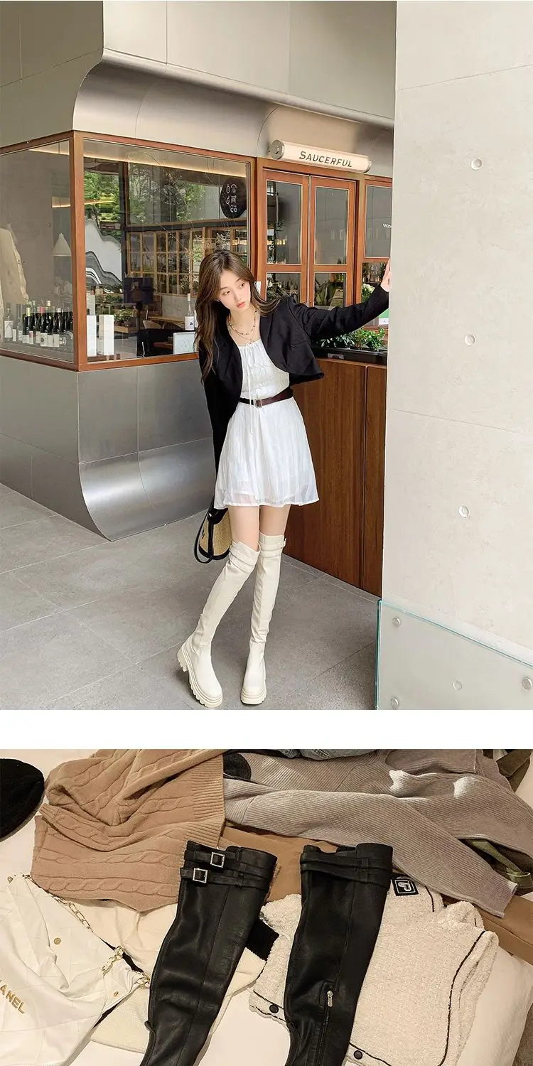 Autumn Winter Women’s Leather Over The Knee Long High Heel Platform Snow Thigh Boot for Women 2023 Ladies Shoesknight Boots Shoe