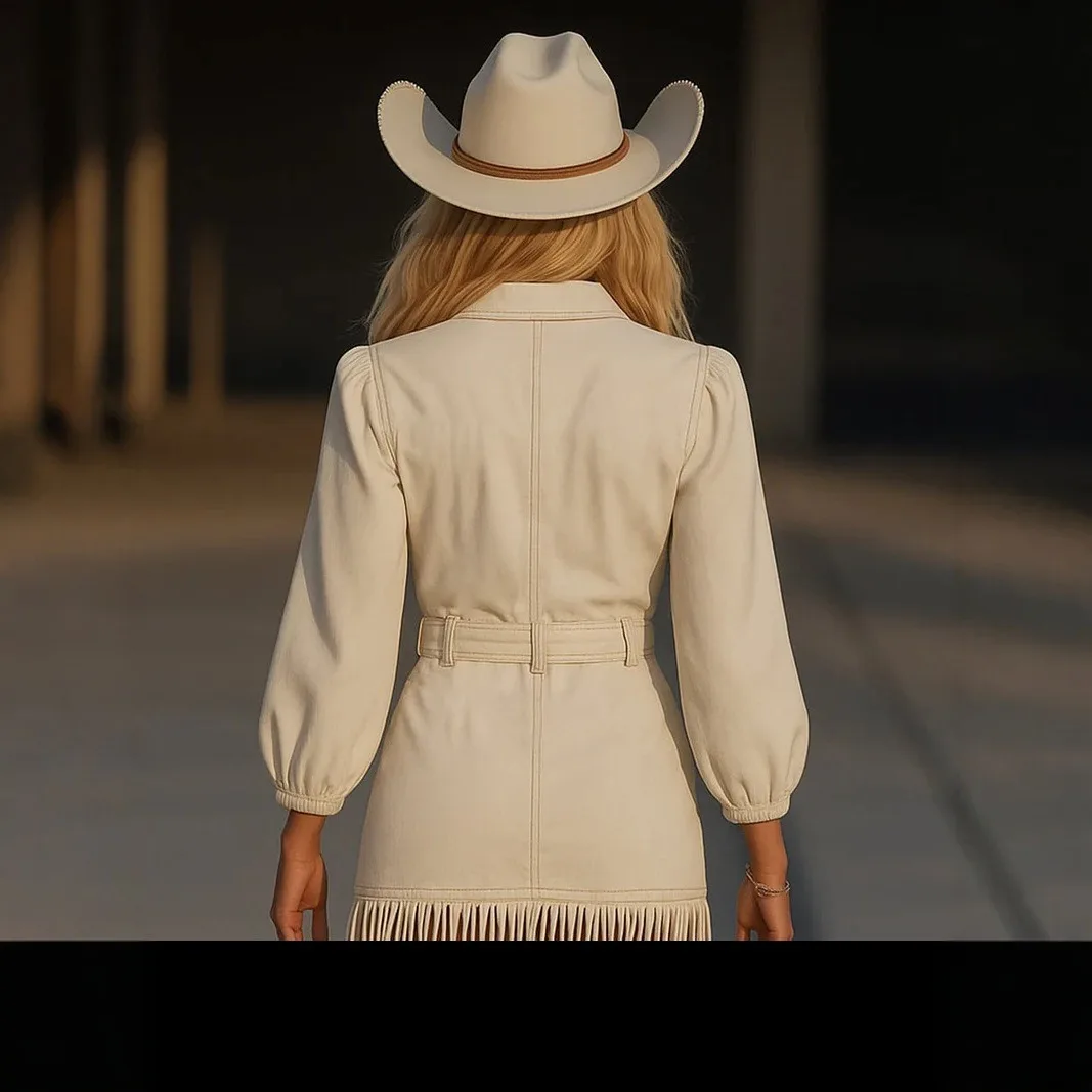 Autumn Women's Lapel Long Sleeved Mini Dress Tassel Patchwork High Waisted A-line Dress 2025 New Solid Pocket Commuting Dress
