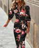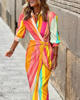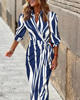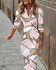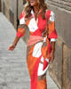 AutumnLadies Fashion Trend New Printed Long Sleeve Dress Ladies Lapel Tie Contrast Color Geometric Pattern Irregular Long Dress
