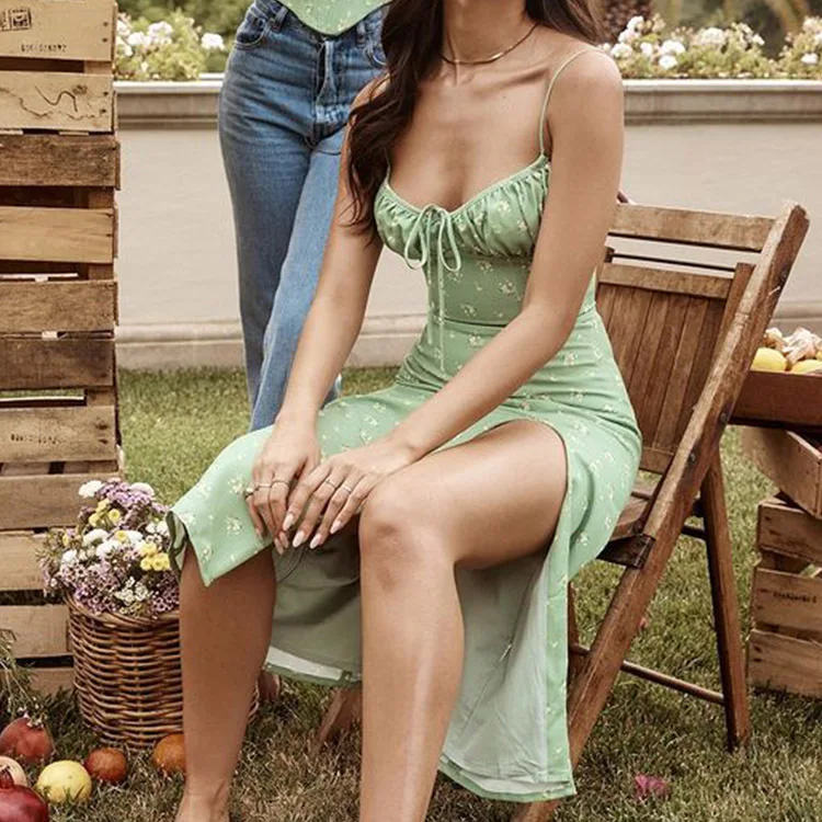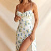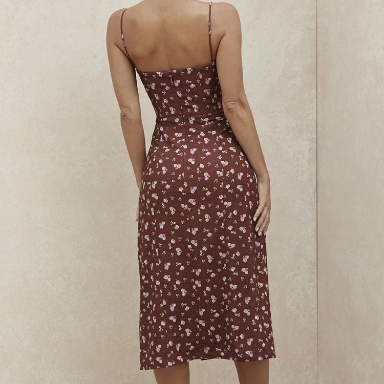 Beach Sundress Dresses Women Slip Dress Summer Vintage Backless Woman Sundress Sleep Sexy Strap Sling Slit Floral Midi Dress