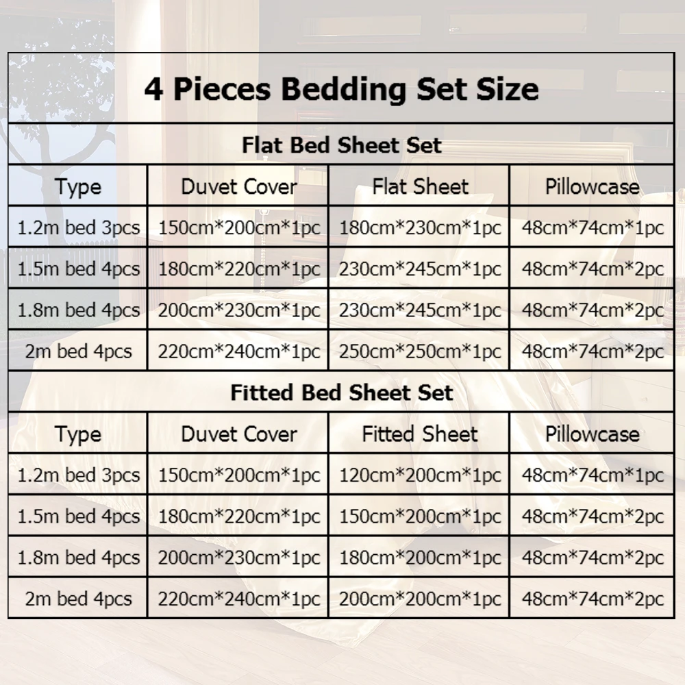 Bedding Set 4 Pieces Luxury Satin Silk Queen King Size Bed Set Comforter Quilt Duvet Cover Flat and Fitted Bed Sheet Bedcloth