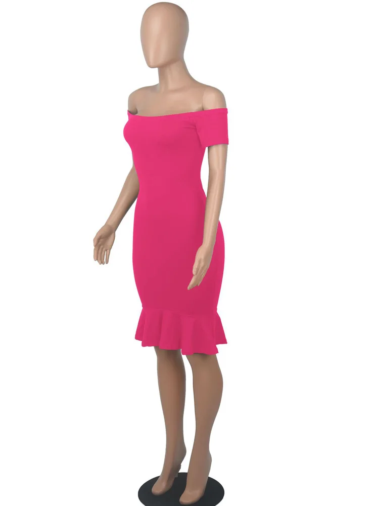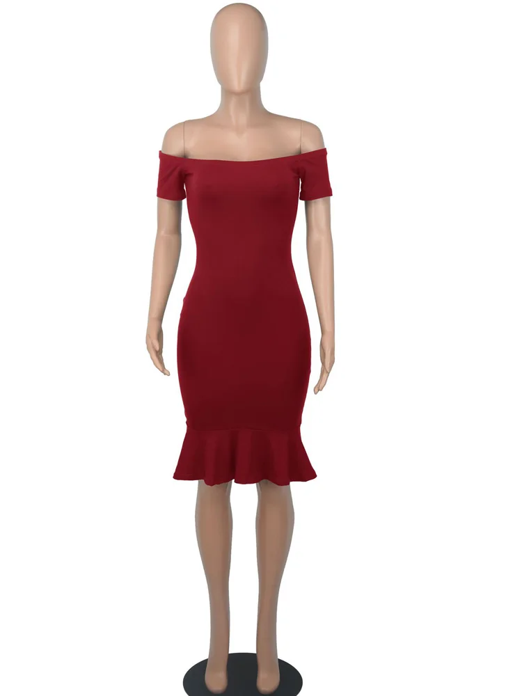 Beyprern New Chic Short Sleeve Bodycon Ruffles Midi Dress Women’s Summer Dresses Clothing Female Sexy Party Clubwear Wholesale