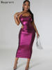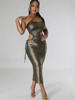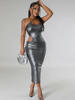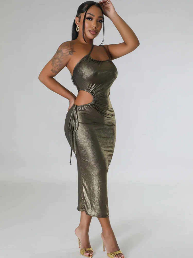 Beyprern Shining Queen Dress Chic One Shoulder Sleeveless Side Cutout Ruched Party Dress Burning Metallic Night Dress Clubwear