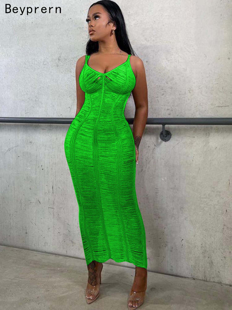 Beyprern Tell Me Something Crochet Maxi Dress Womens Clothing Sleeveless Green Ladder Cut-Out Knit Beach Dress Vacation Outfits