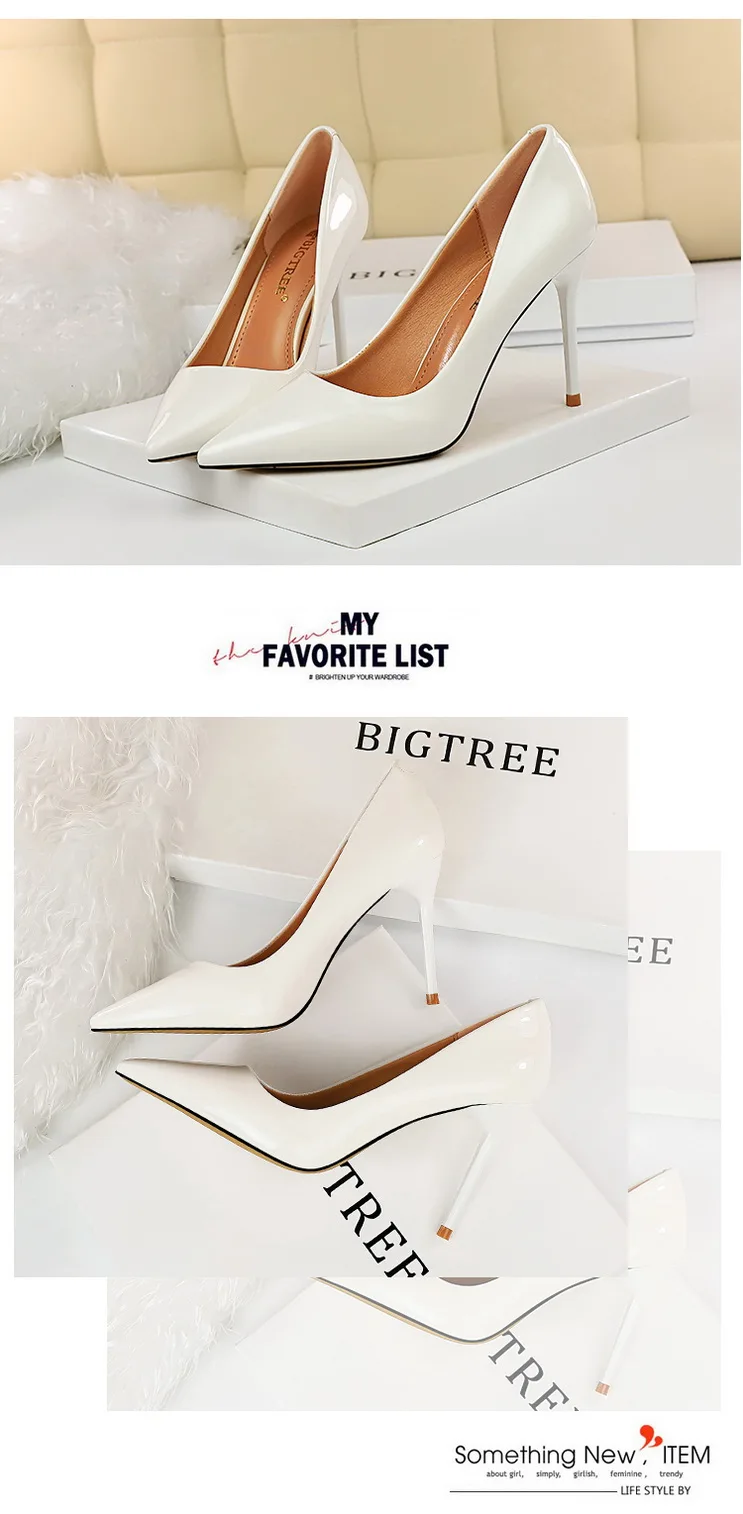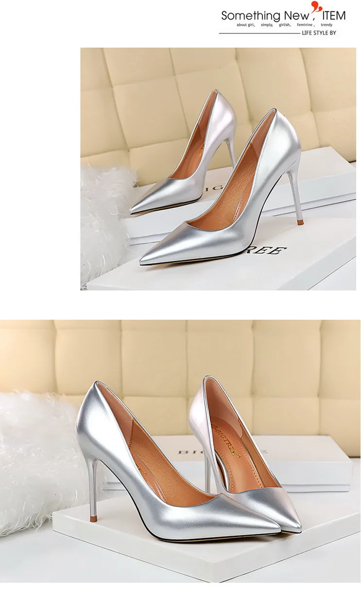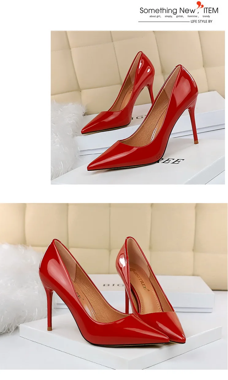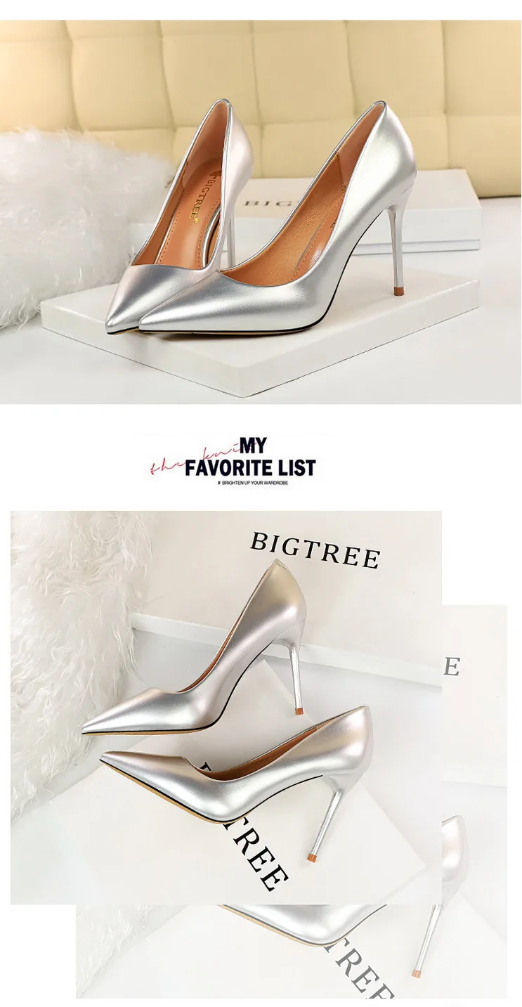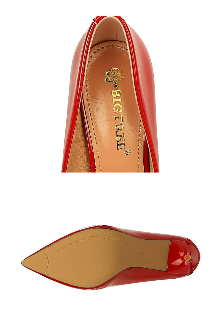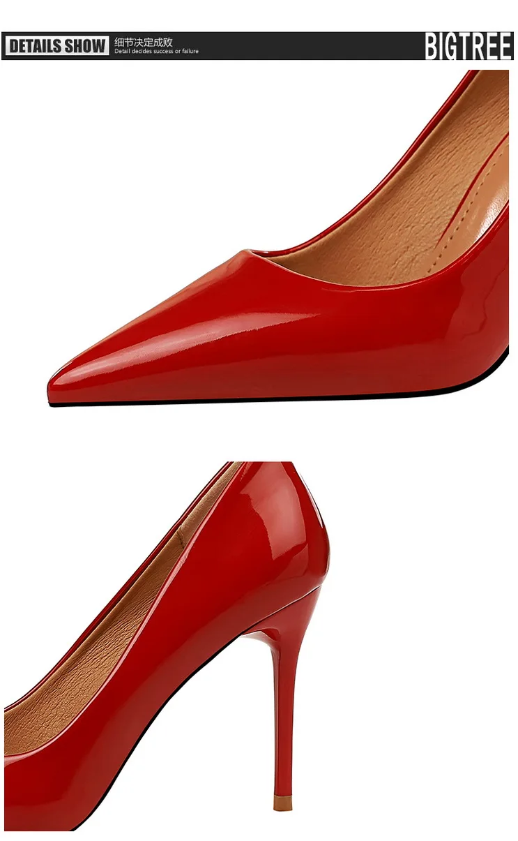 BIGTREE high heels Women shoes sexy Ladies shoe office lady party pumps Female thin heels Silver pointed toe shoe red wedding