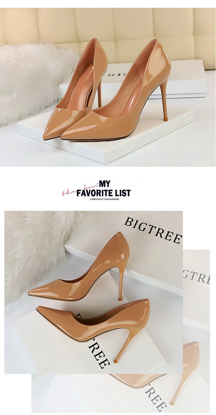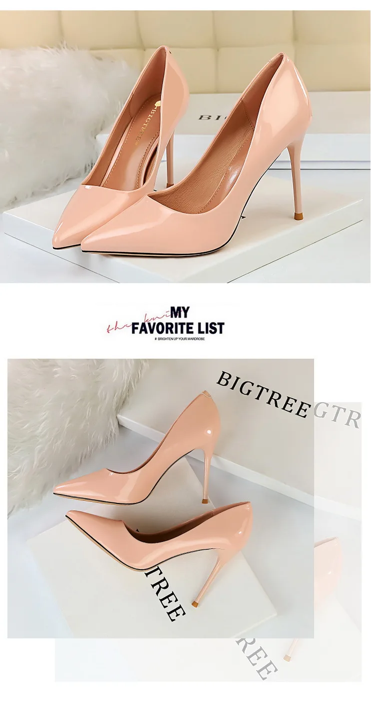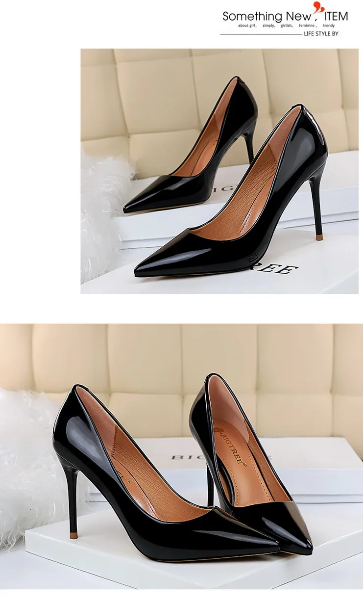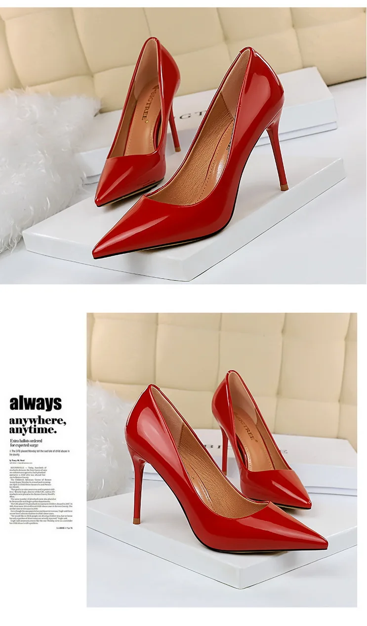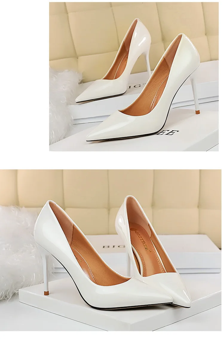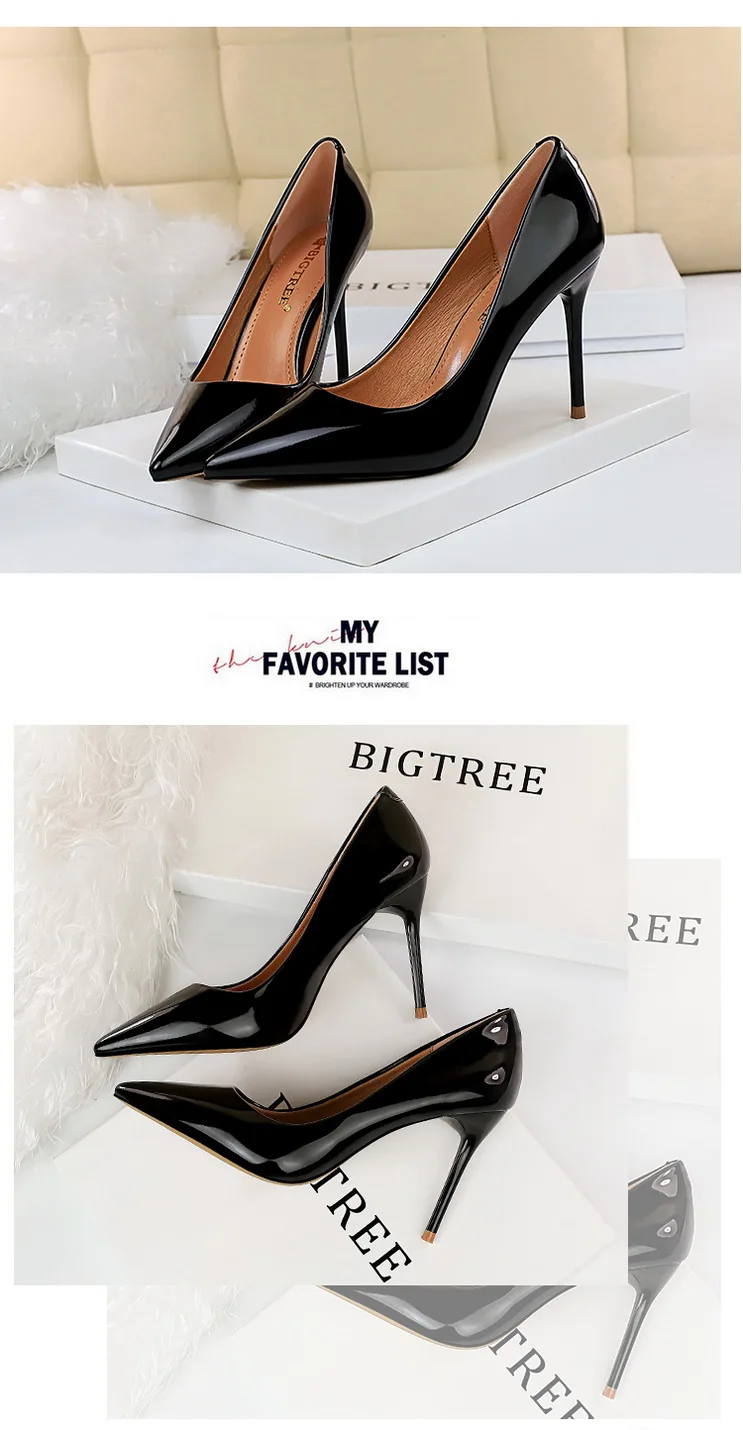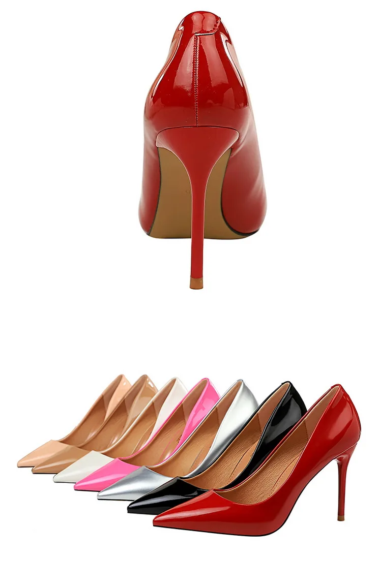 BIGTREE high heels Women shoes sexy Ladies shoe office lady party pumps Female thin heels Silver pointed toe shoe red wedding