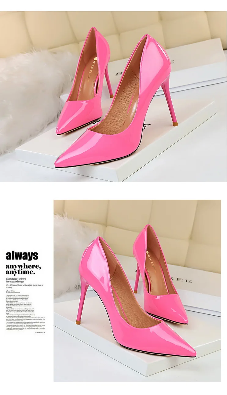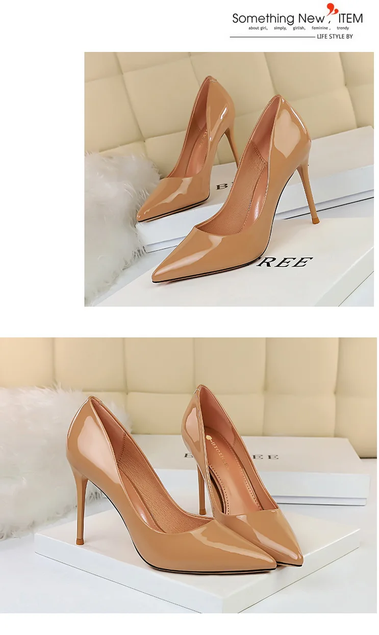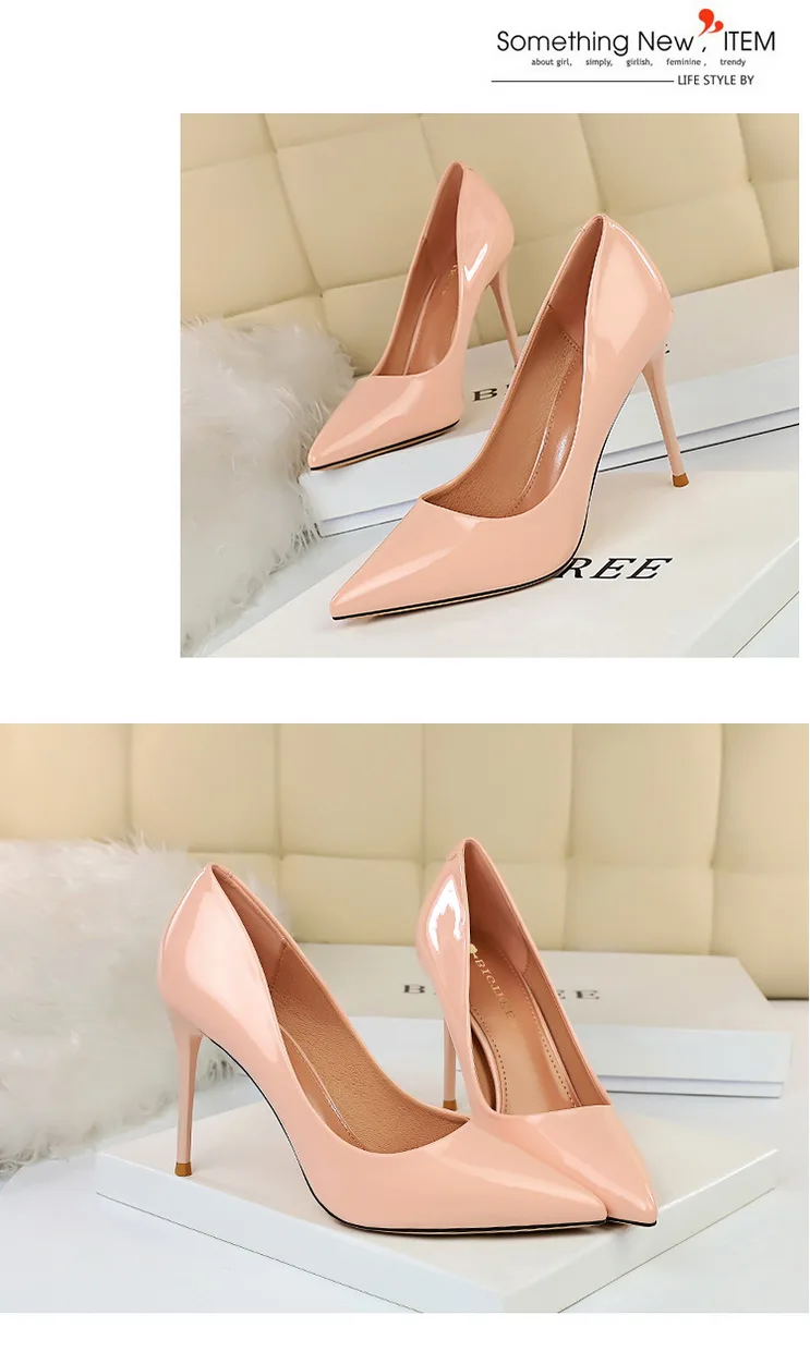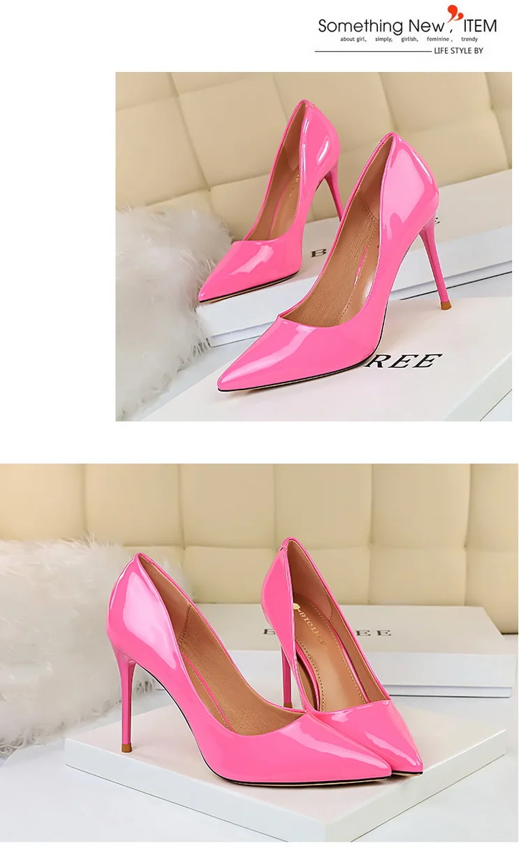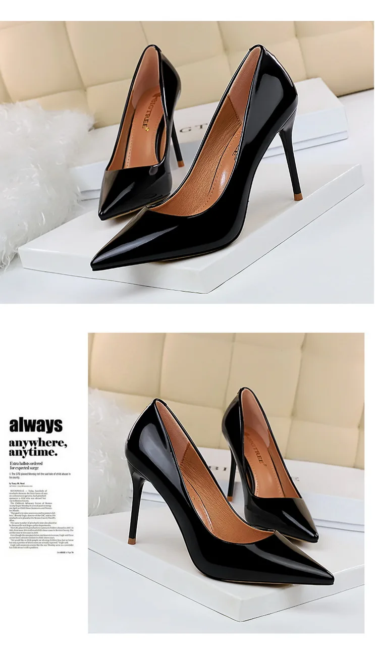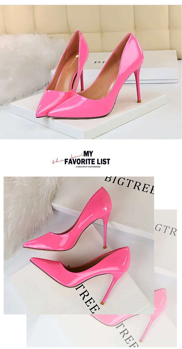 BIGTREE high heels Women shoes sexy Ladies shoe office lady party pumps Female thin heels Silver pointed toe shoe red wedding