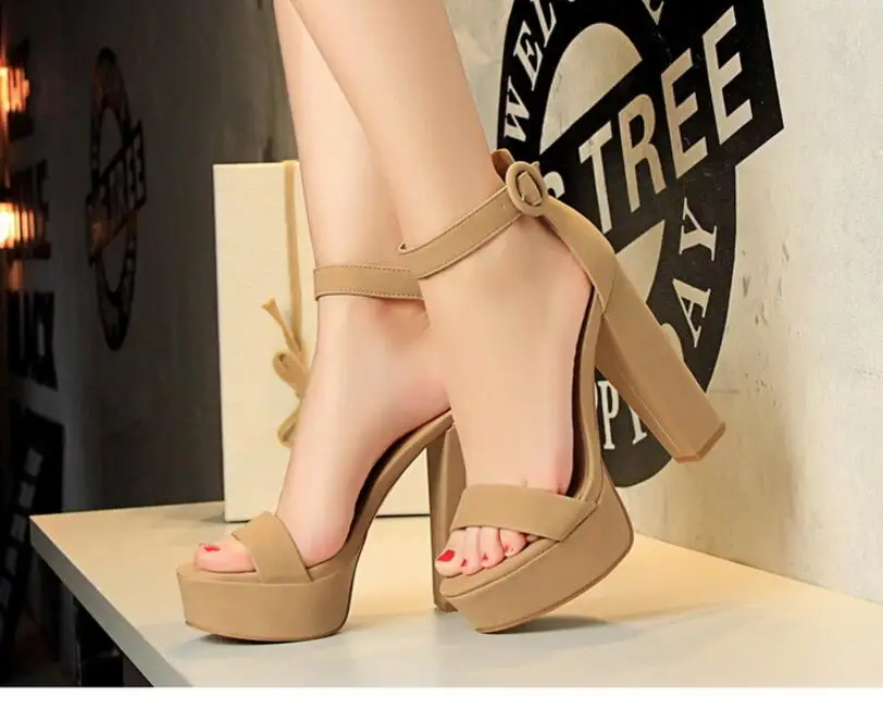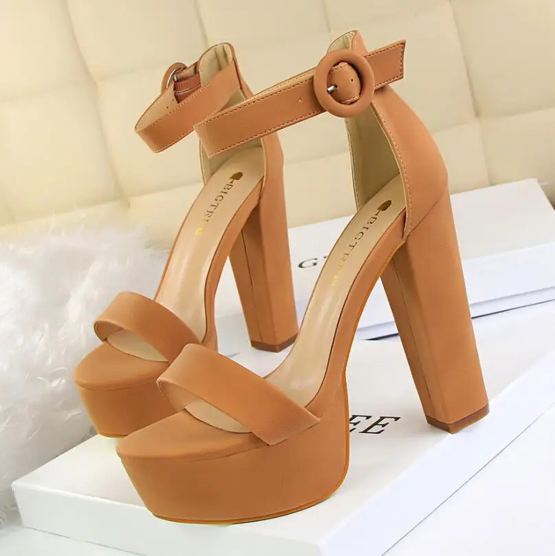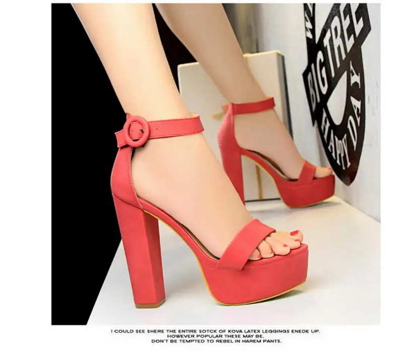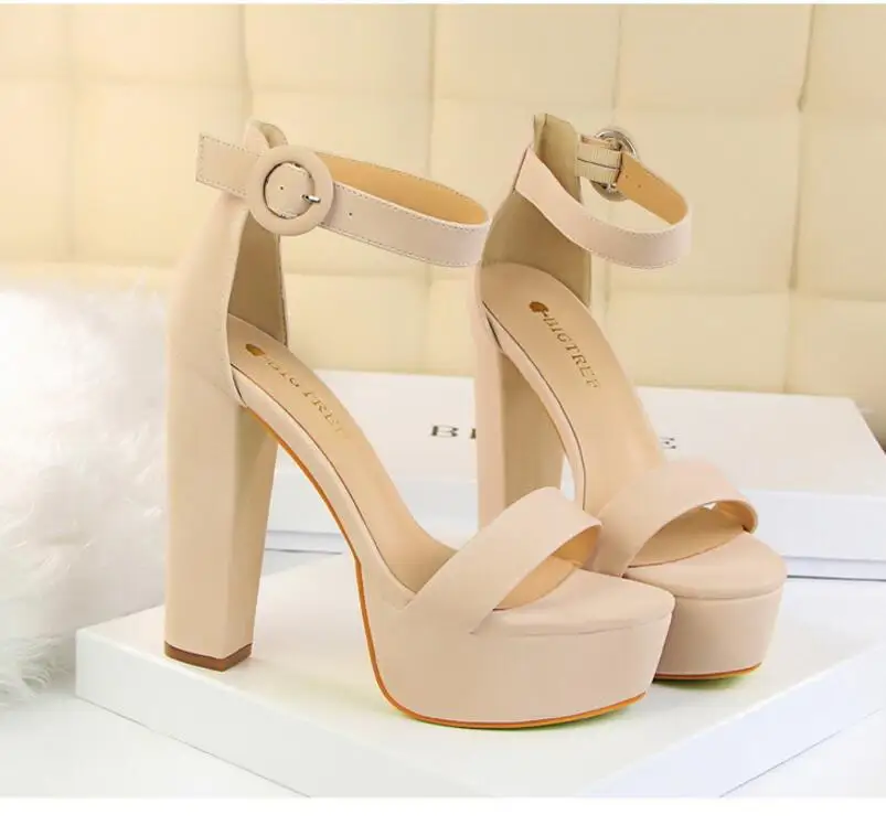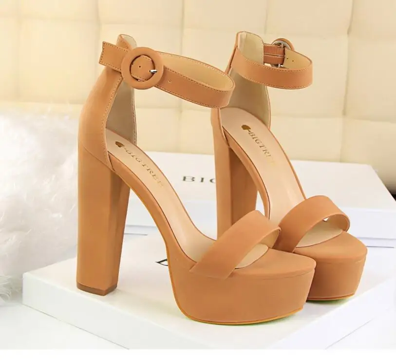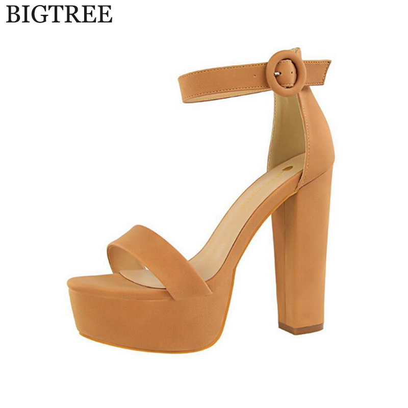 BIGTREE New summer Peep toe Ankle strap orange Sweet Thick high heels sandals women Platform Lady women shoes k110
