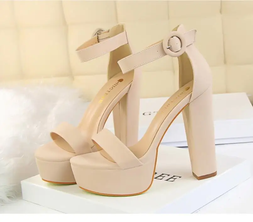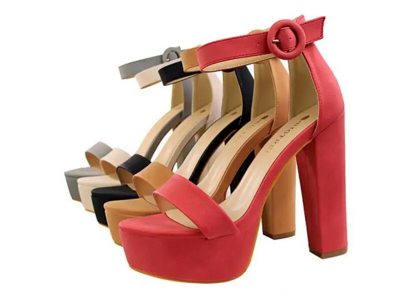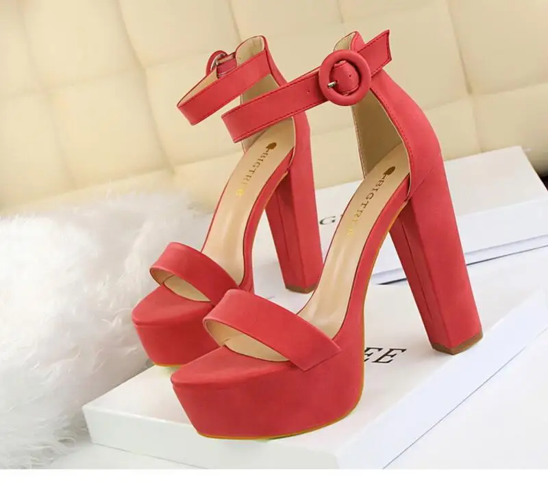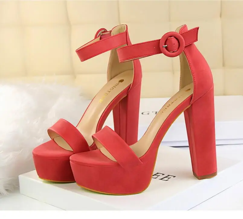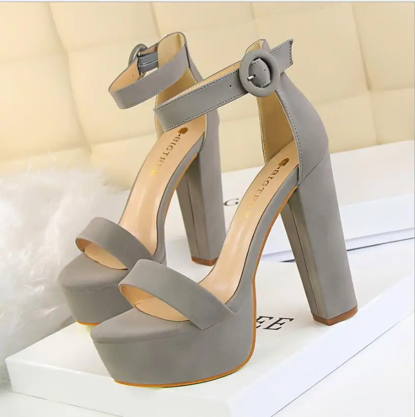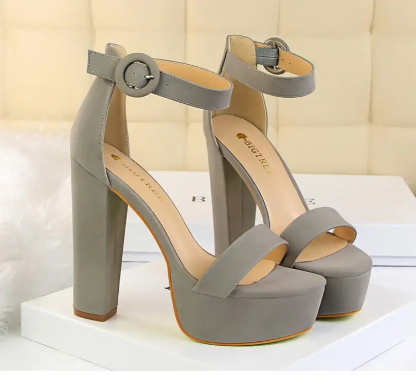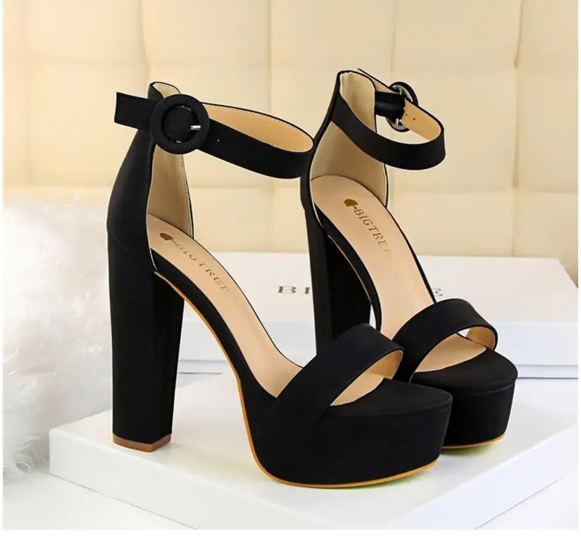 BIGTREE New summer Peep toe Ankle strap orange Sweet Thick high heels sandals women Platform Lady women shoes k110