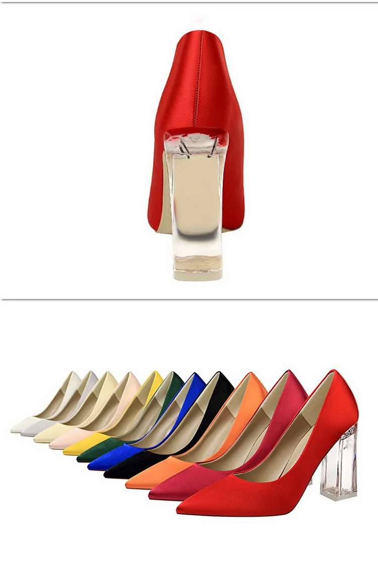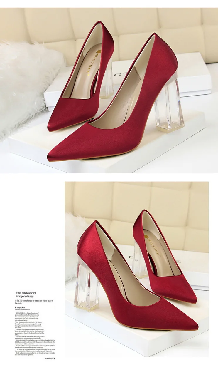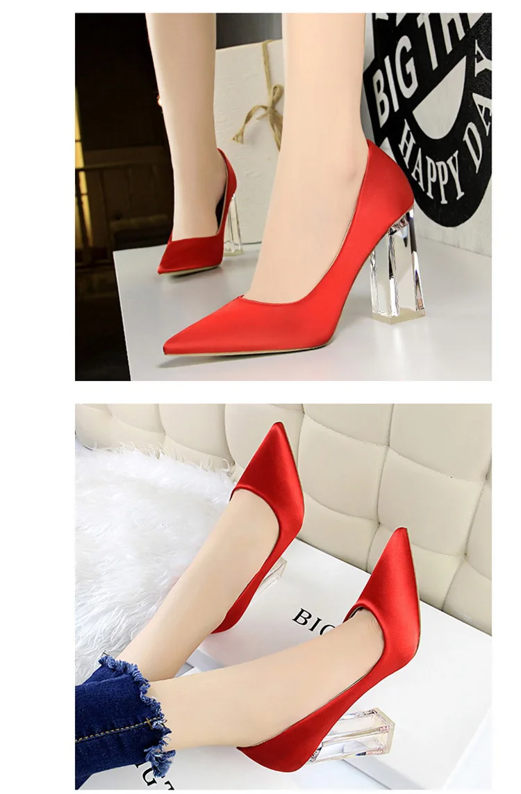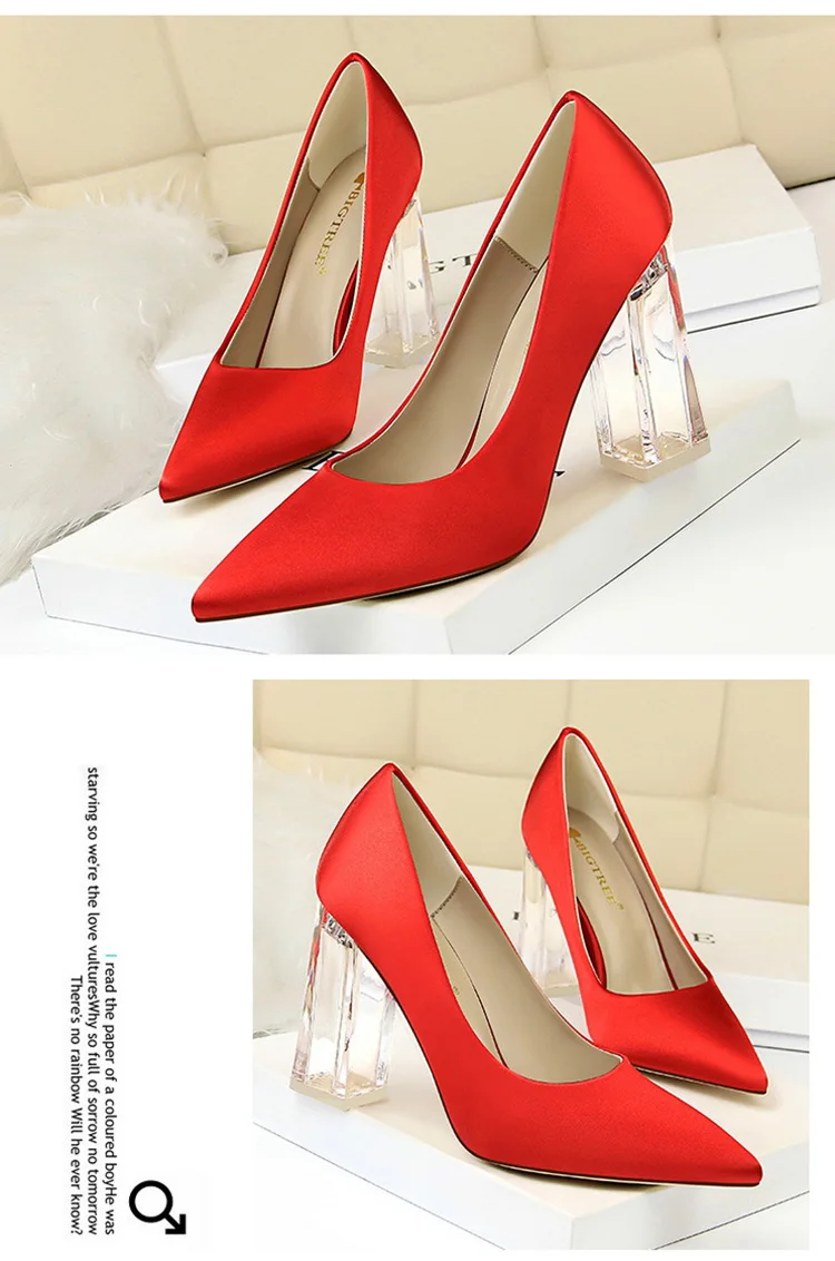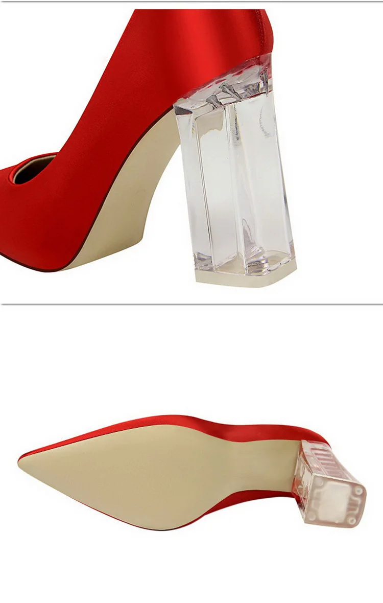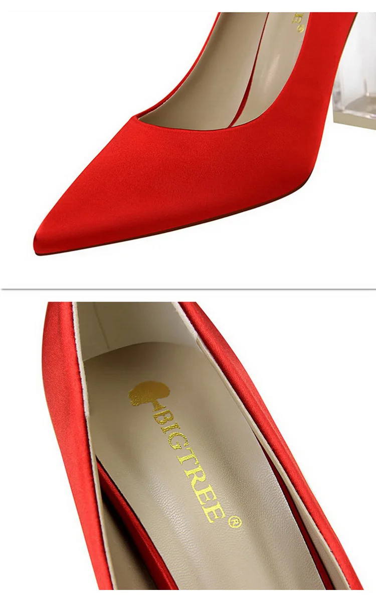 BIGTREE Shoes Clear Crystal Woman Pumps Silk High Heels Shoes Sexy Wedding Shoes Women Heels Party Shoes Female Plus Size 41 42
