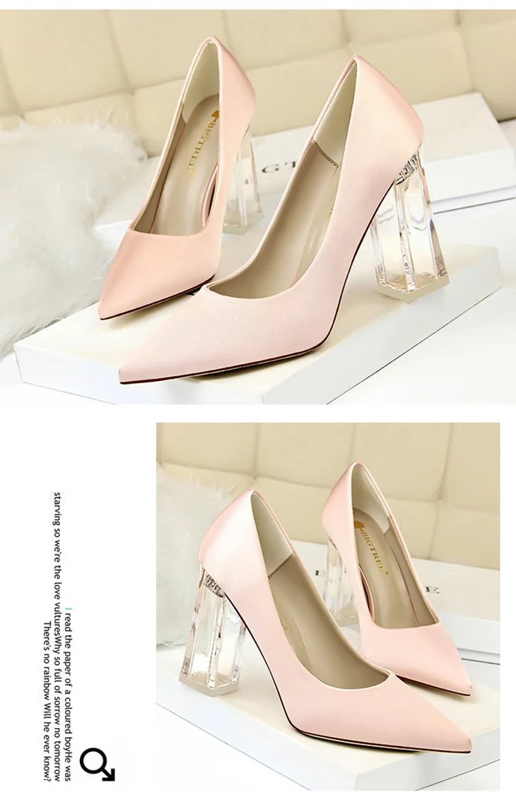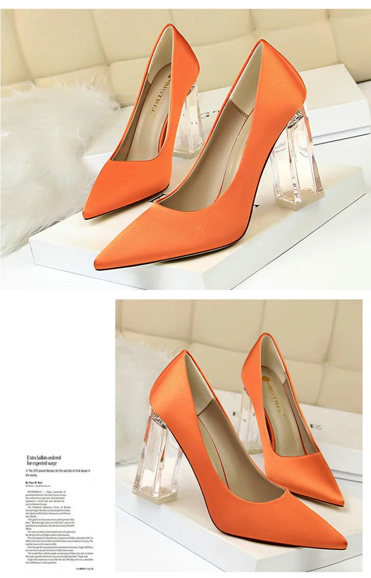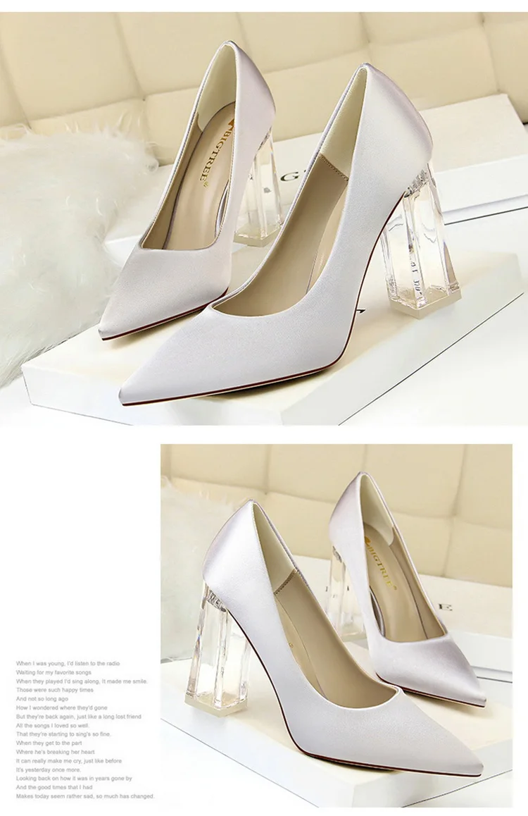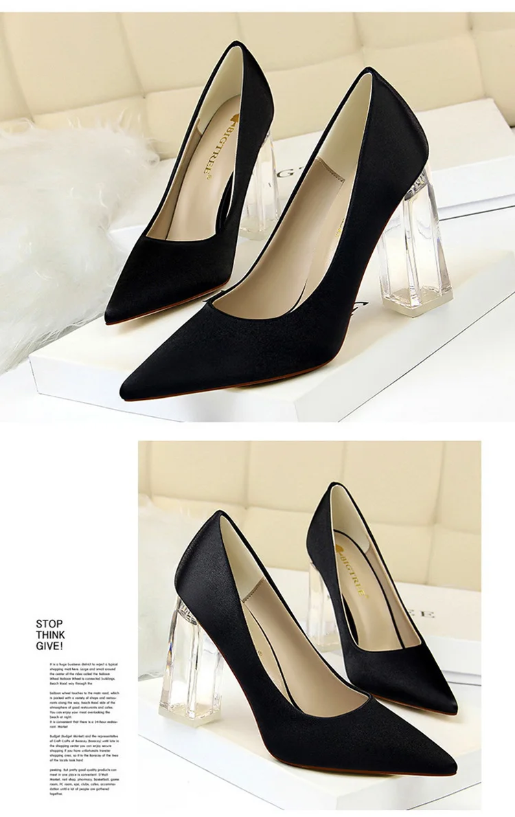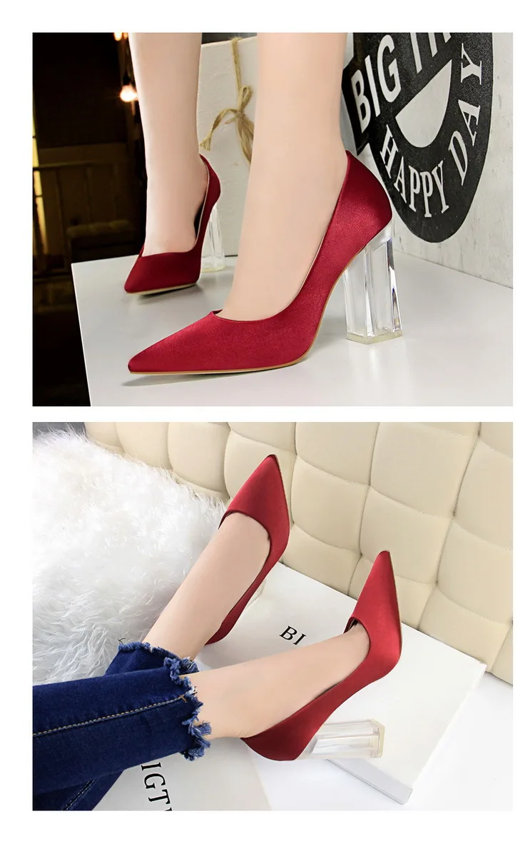 BIGTREE Shoes Clear Crystal Woman Pumps Silk High Heels Shoes Sexy Wedding Shoes Women Heels Party Shoes Female Plus Size 41 42