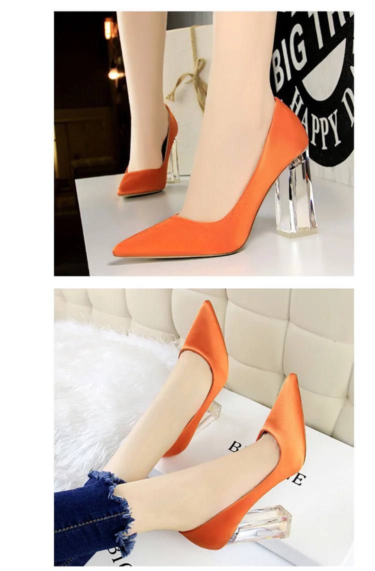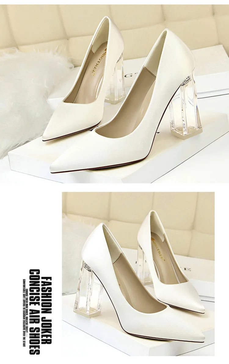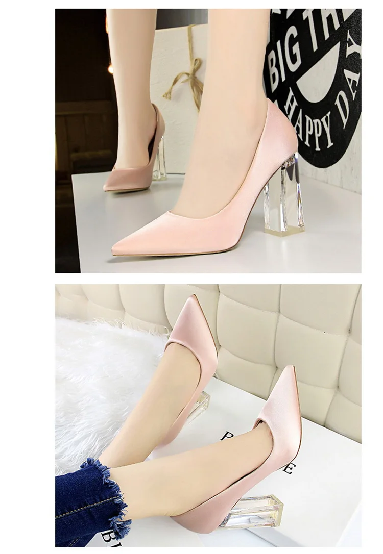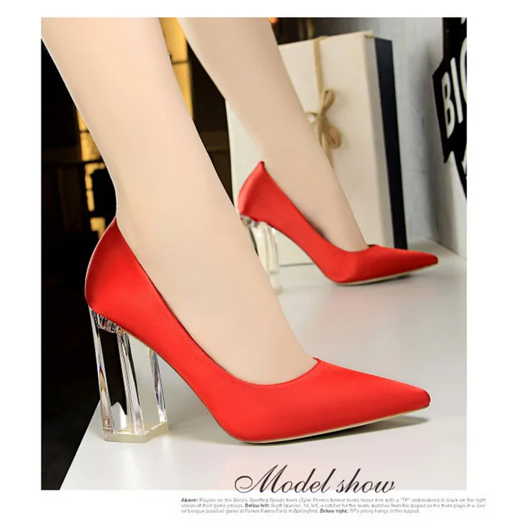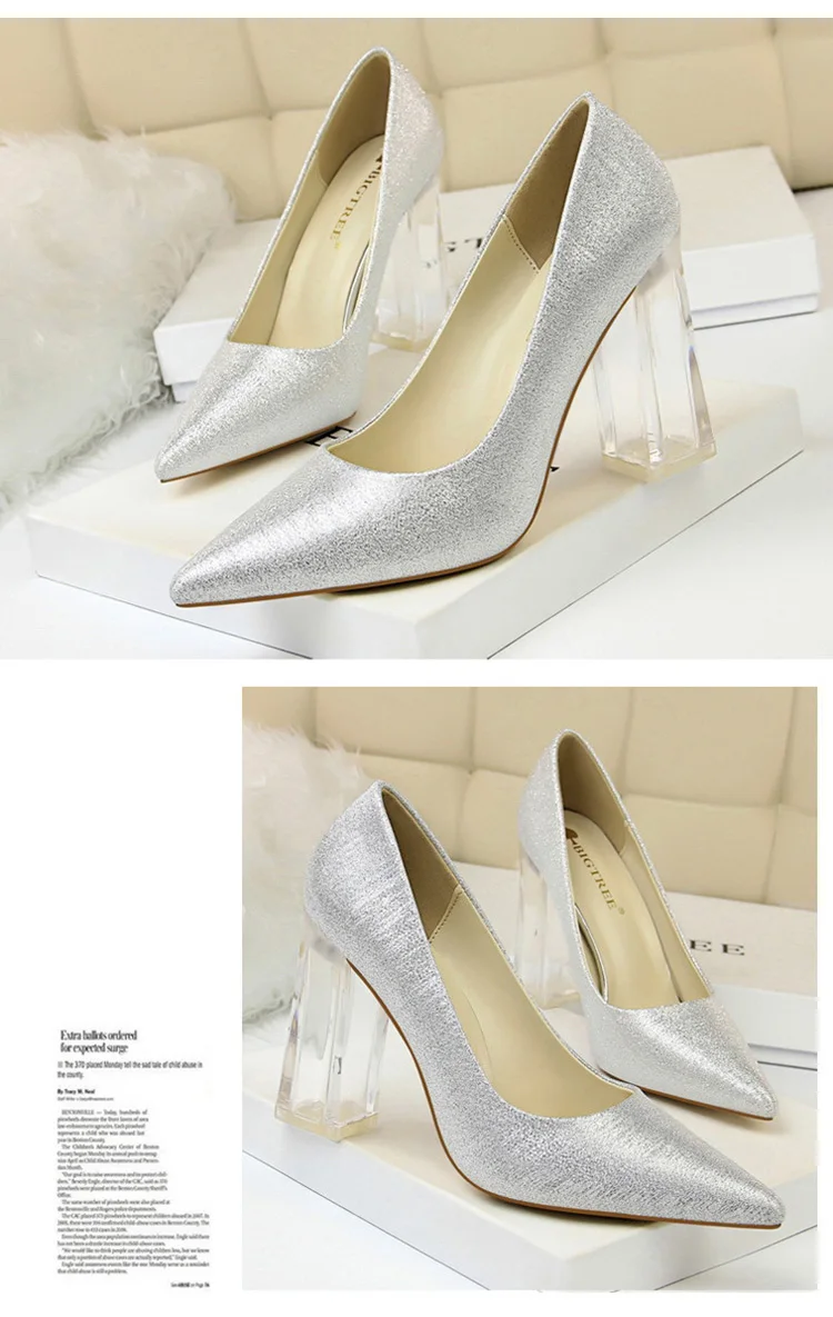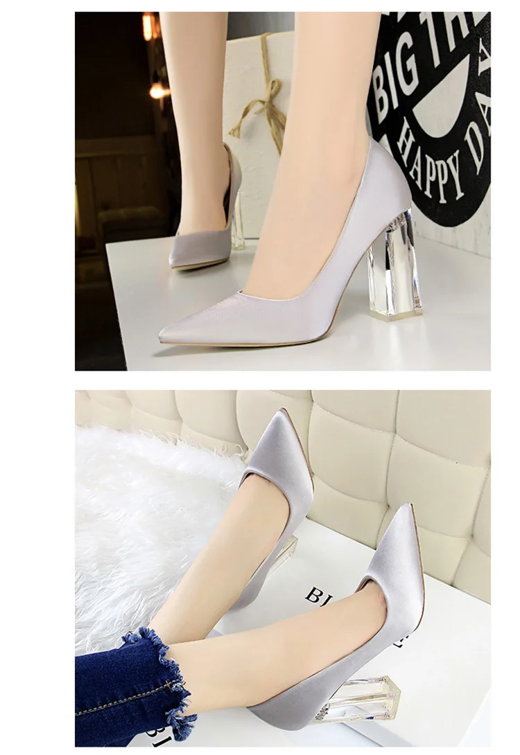 BIGTREE Shoes Clear Crystal Woman Pumps Silk High Heels Shoes Sexy Wedding Shoes Women Heels Party Shoes Female Plus Size 41 42
