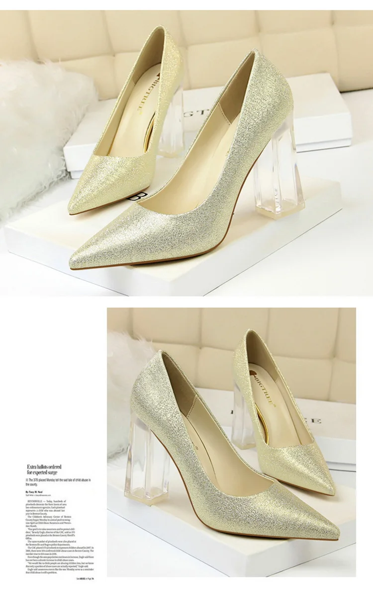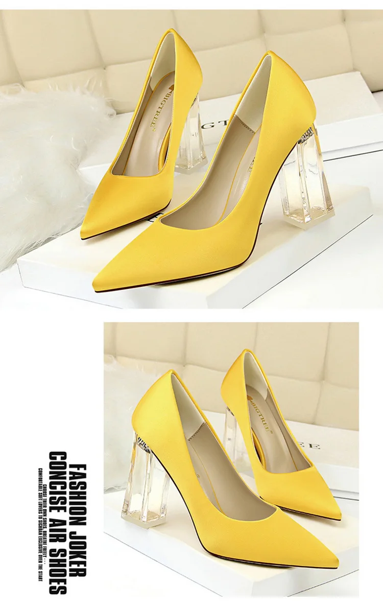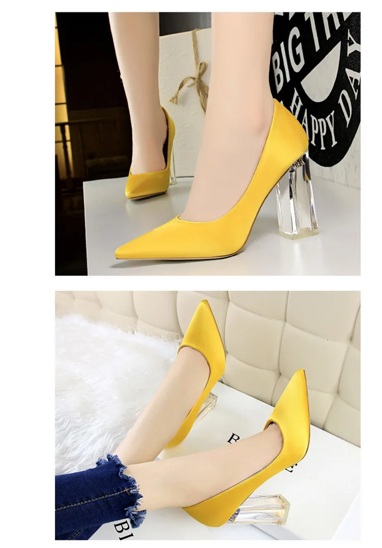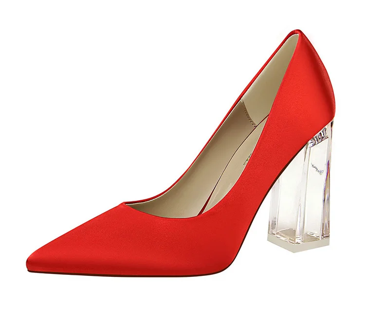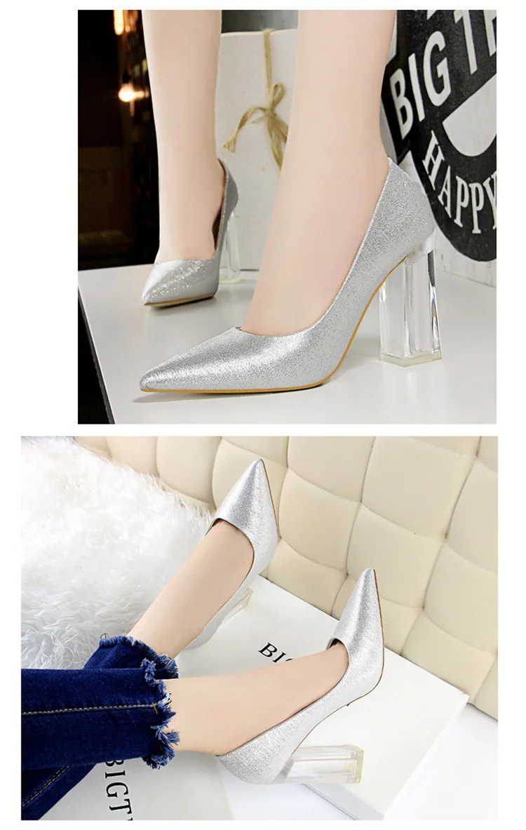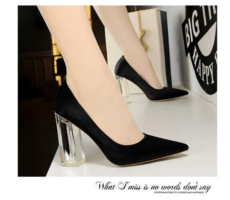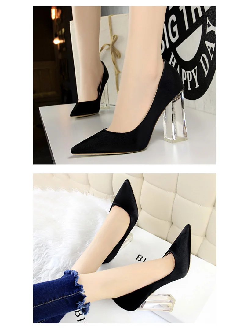 BIGTREE Shoes Clear Crystal Woman Pumps Silk High Heels Shoes Sexy Wedding Shoes Women Heels Party Shoes Female Plus Size 41 42