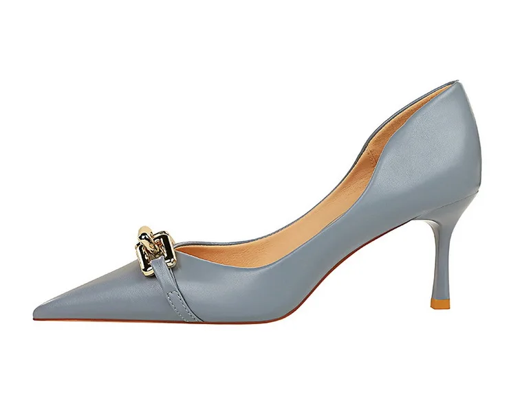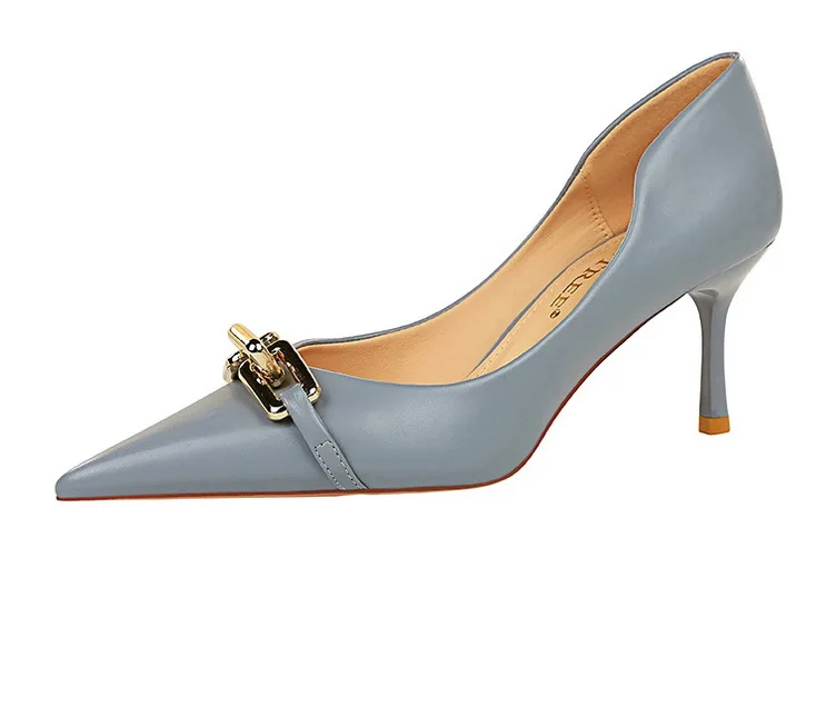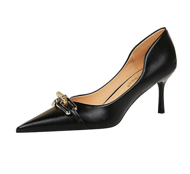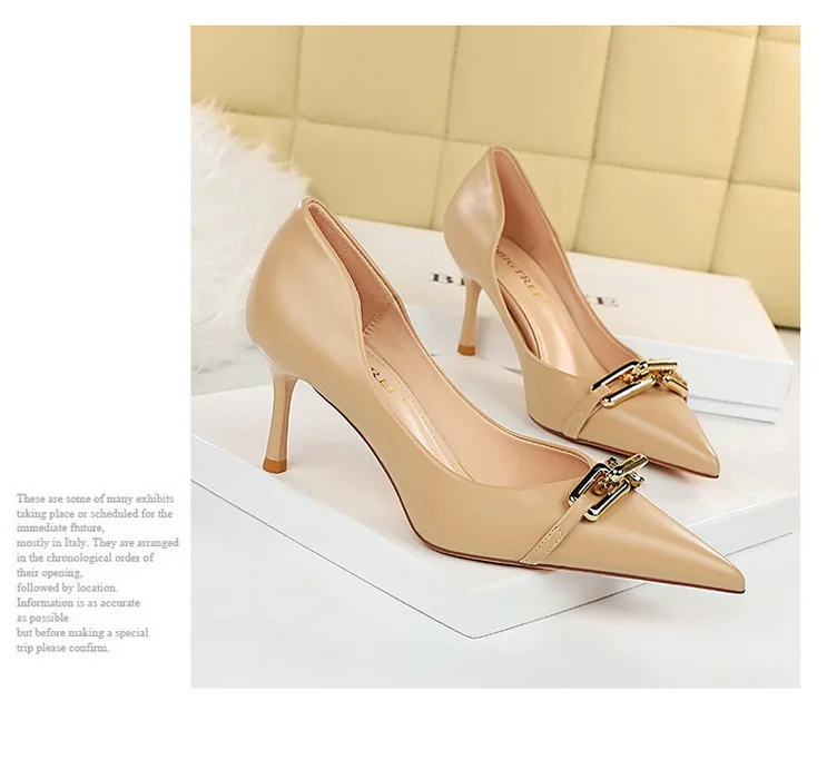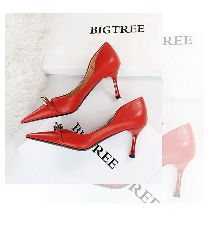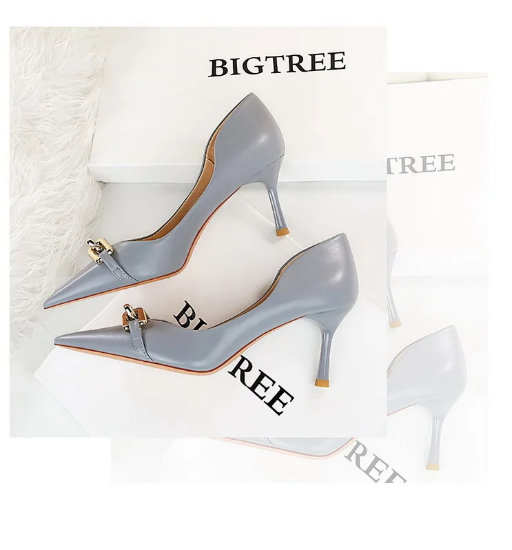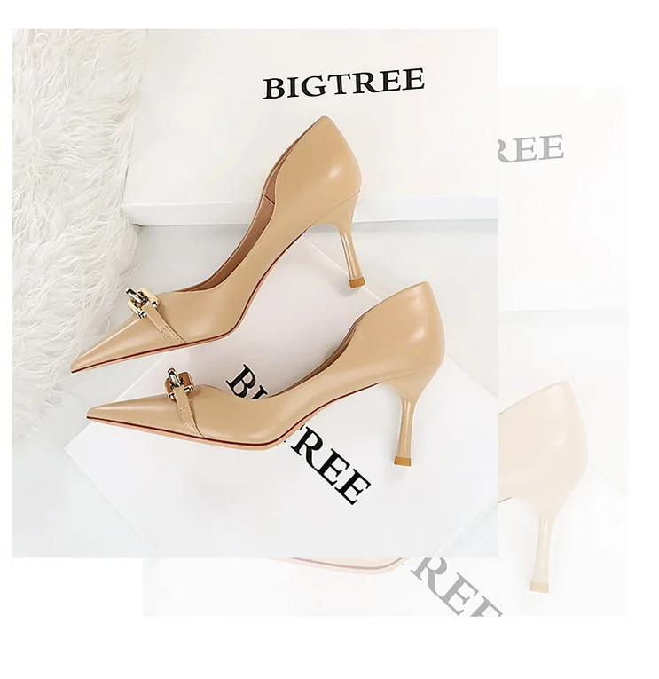 BIGTREE Shoes Elegant Women Pumps Metal Button Kitten Heels Women Shoes Stiletto Banquet Shoes Pointed High Heels Large Size 43