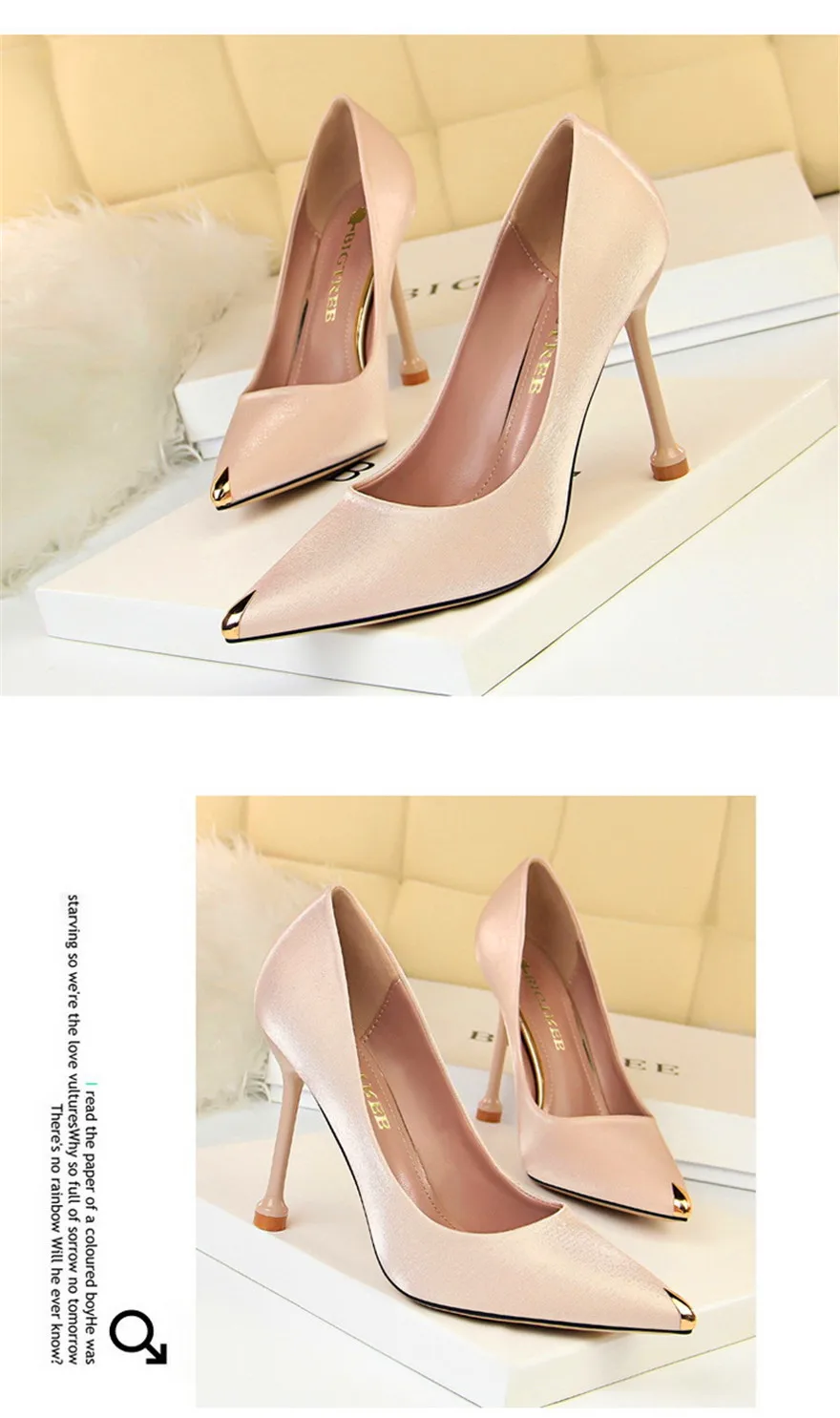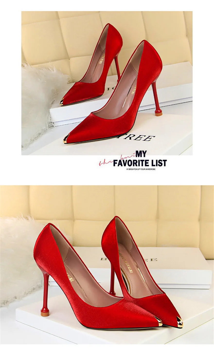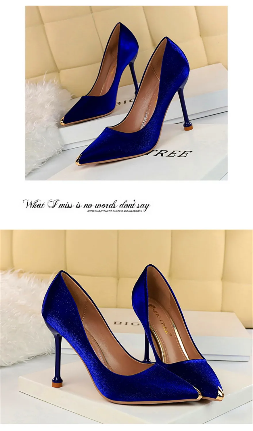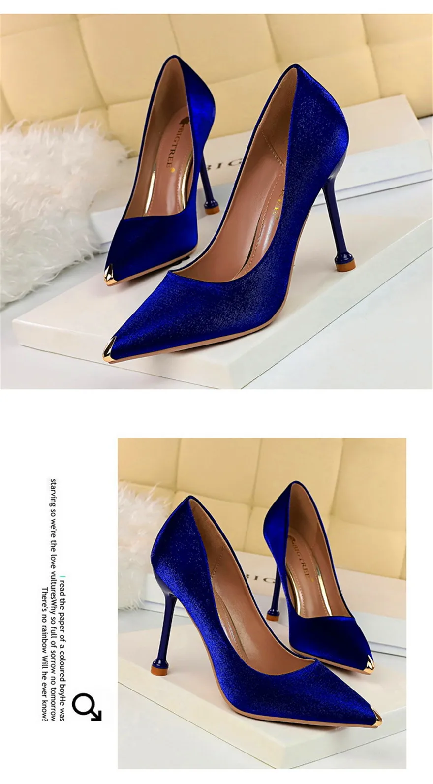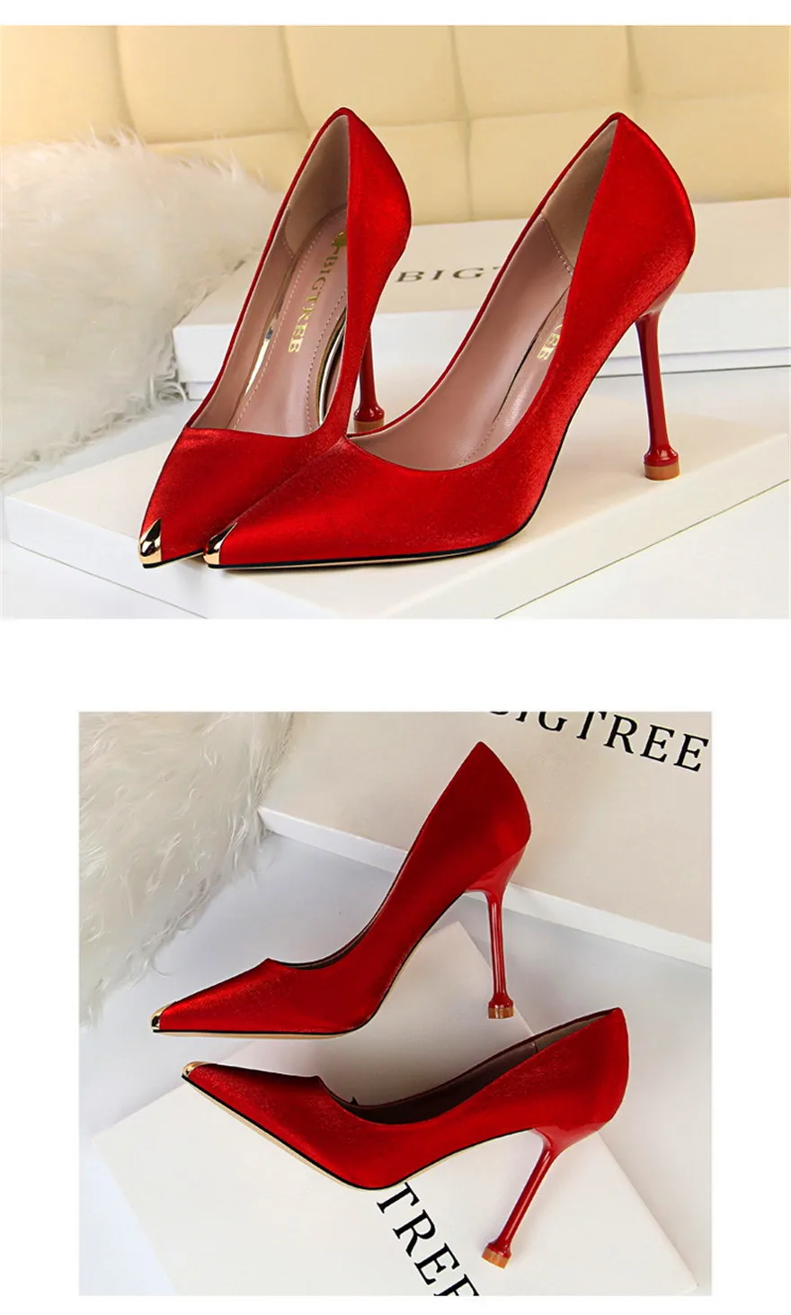 BIGTREE Shoes Metal Pointed Toe Elegent Women Pumps Stilettos High Heels Party Soft Silk Fashion Woman Office Shoes Blue Apricot