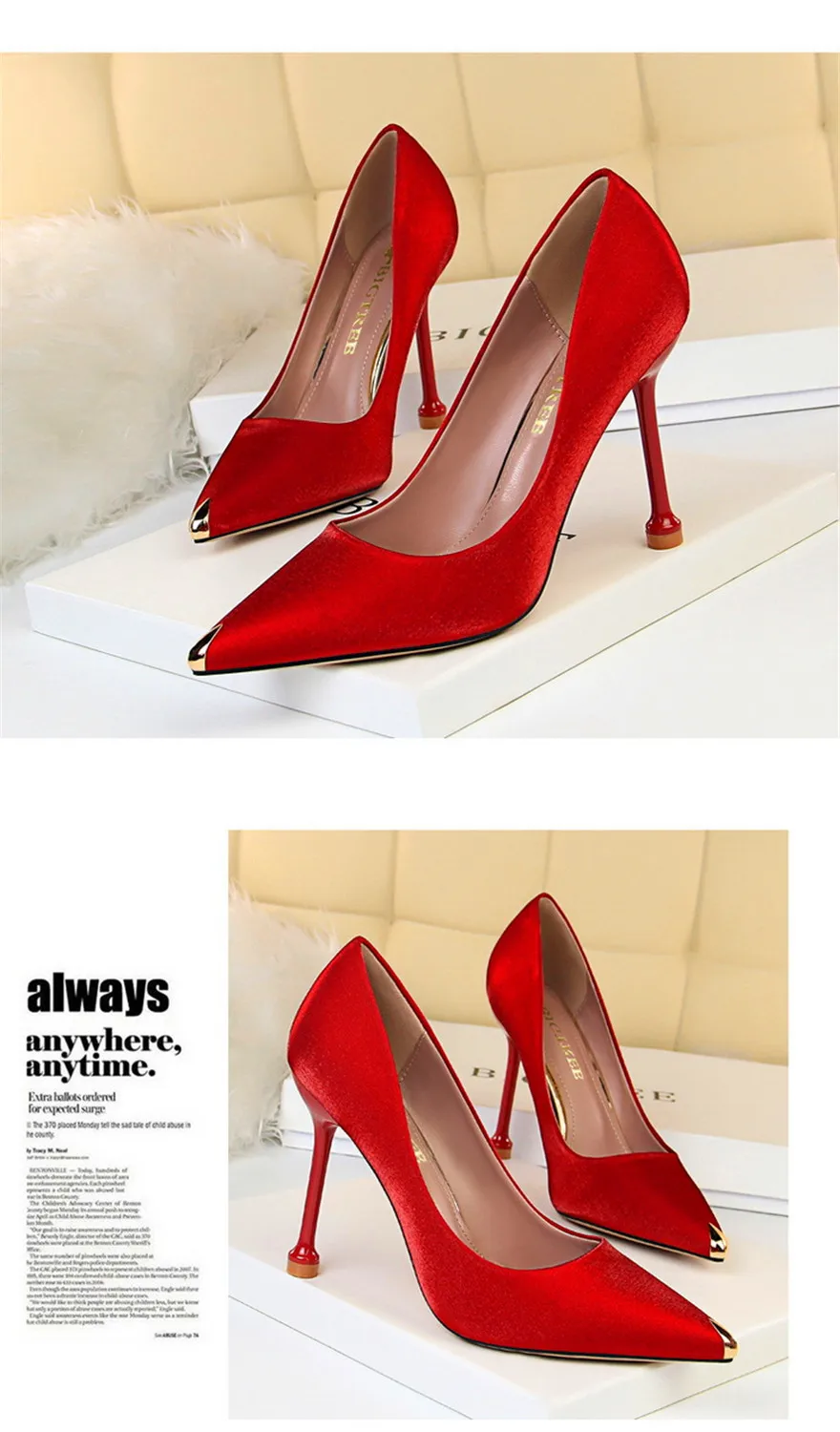 BIGTREE Shoes Metal Pointed Toe Elegent Women Pumps Stilettos High Heels Party Soft Silk Fashion Woman Office Shoes Blue Apricot Size 34 35 36 37 38 39 40 US Size 4.5 5 6 7 8 9 10 Feet Length (cm) 22.0 22.5 23.0 23.5 24.0 24.5 25.0 Feet Wide…