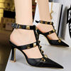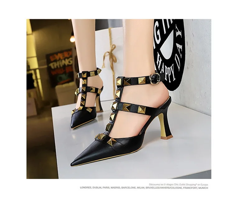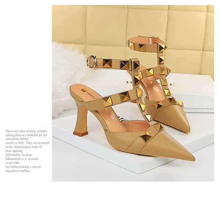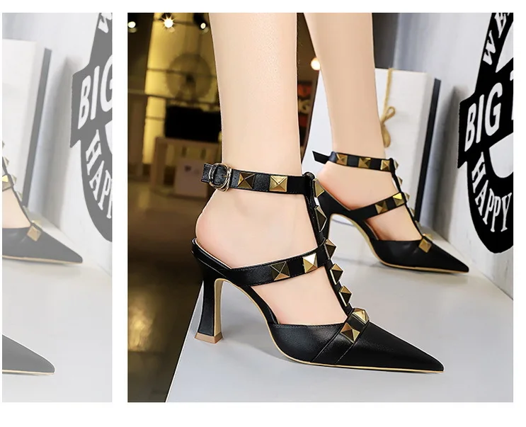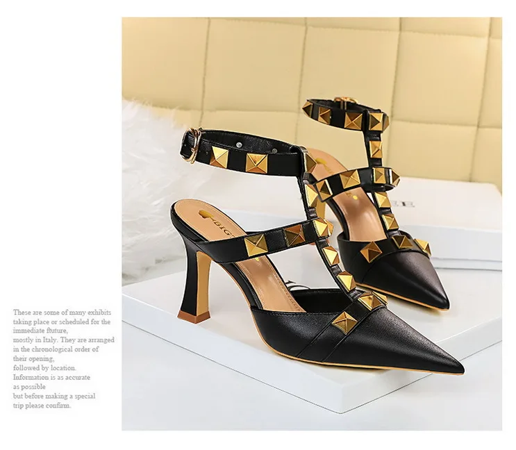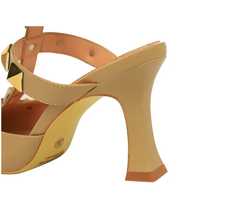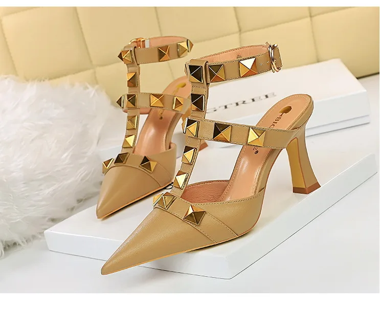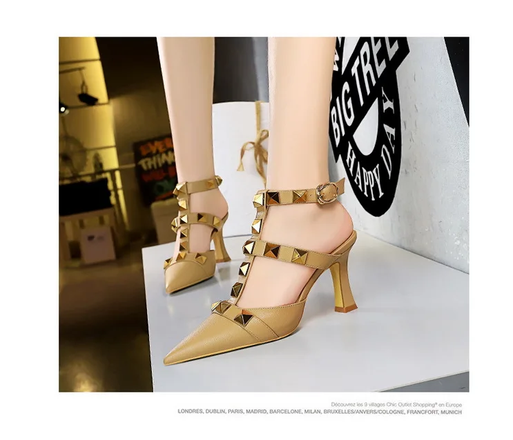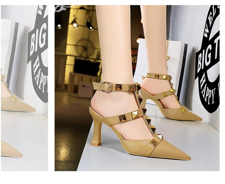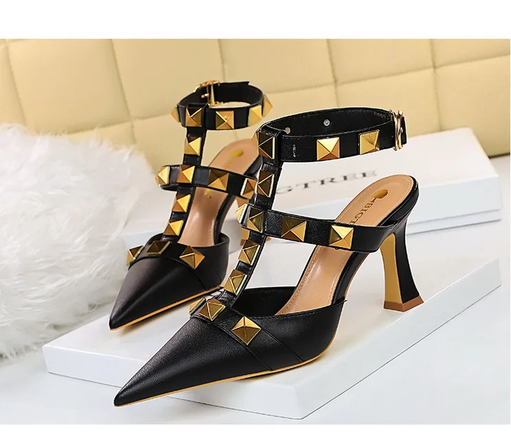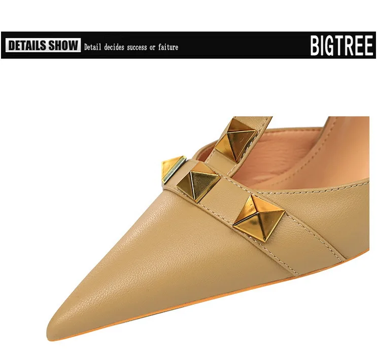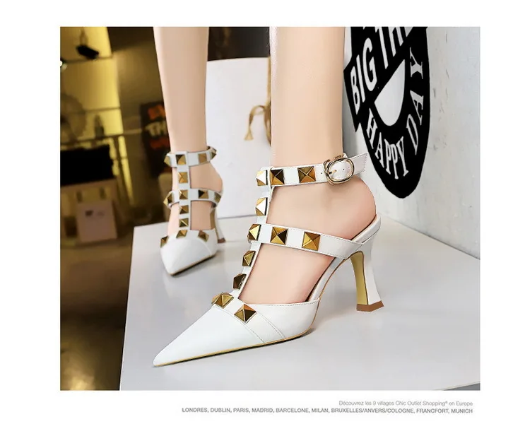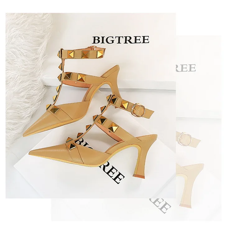 BIGTREE Shoes Metal Rivets Woman Sandals Roman Style High-heeled Sandals Summer Kitten Heels Women Pumps Sexy Party Shoes 2022
