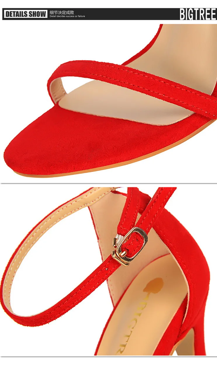 BIGTREE Shoes New Suede Women Sandals Stiletto Heels 11cm 8 Cm Women High Heels Fashion Summer Sandals Women Pumps Kitten Heels