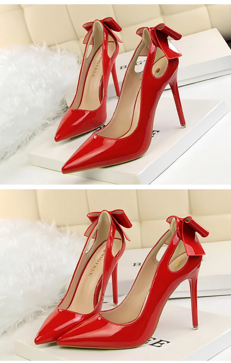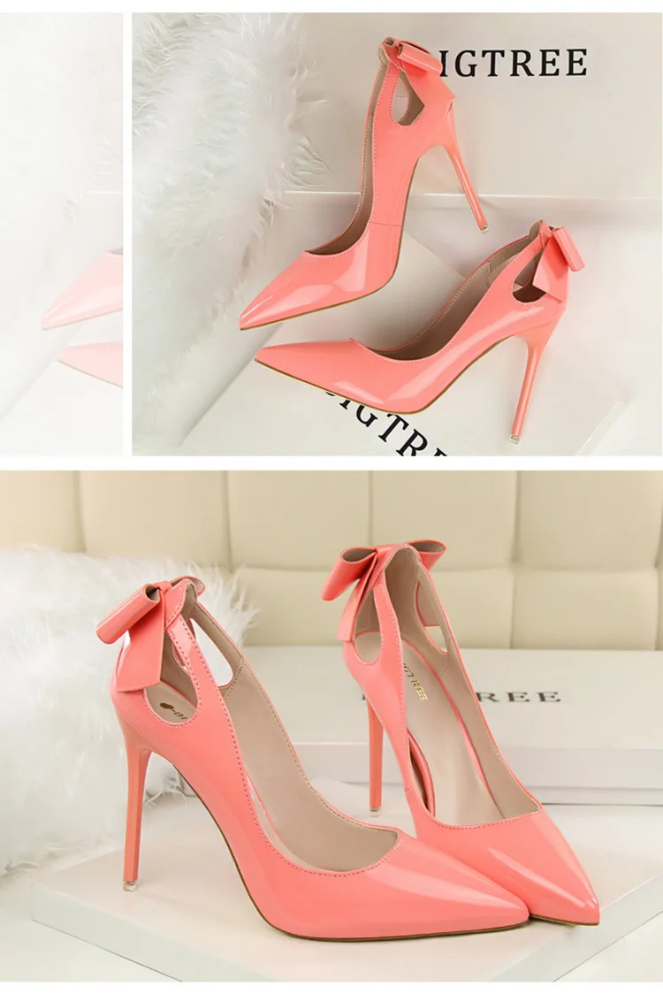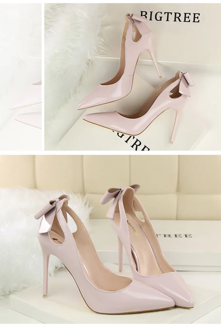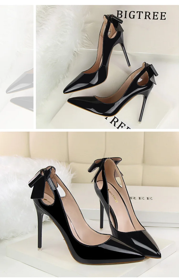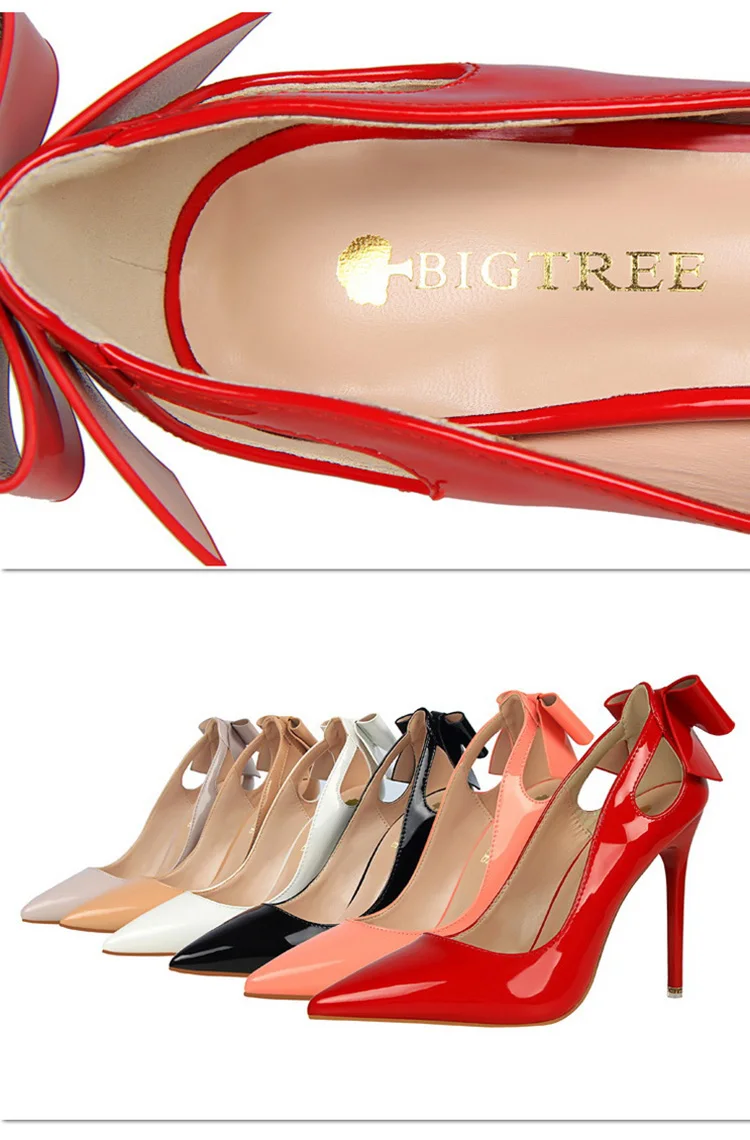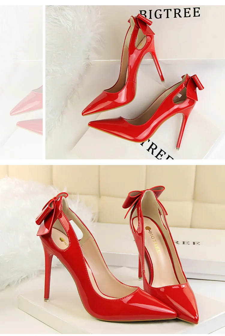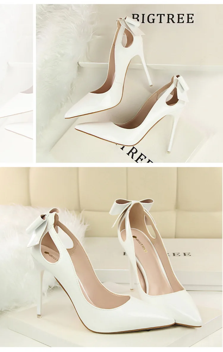 BIGTREE Shoes Patent Leather Women Heels Pointed Toe Woman Pumps Sexy High Heels 2022 Hot Bow-Knot Pumps Women Stiletto Ladies