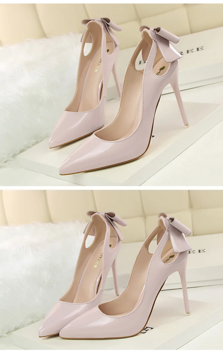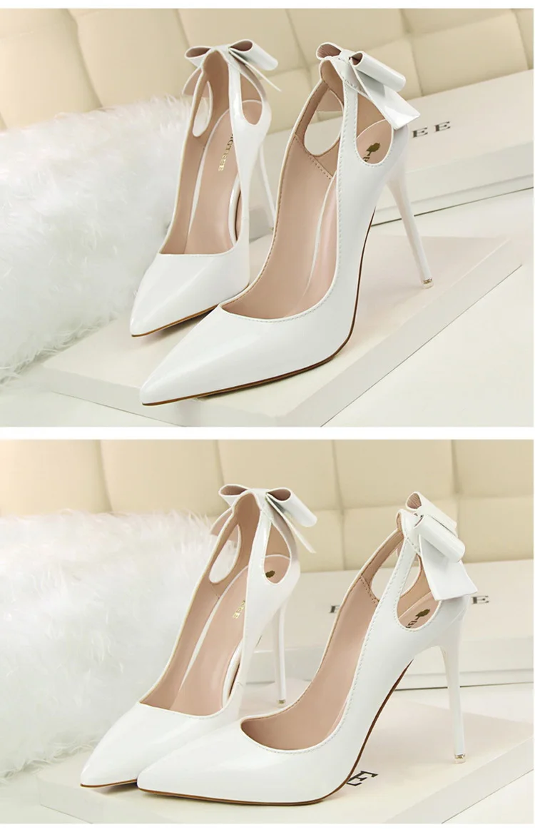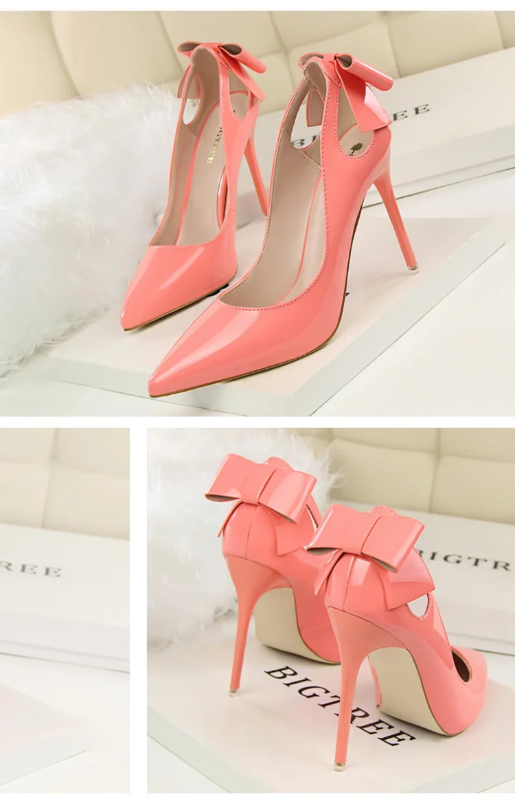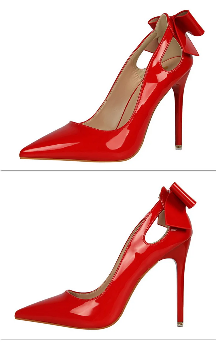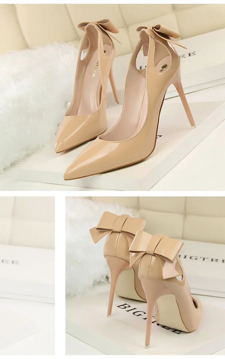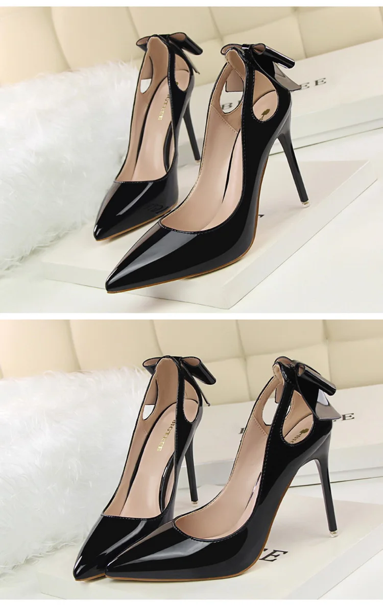 BIGTREE Shoes Patent Leather Women Heels Pointed Toe Woman Pumps Sexy High Heels 2022 Hot Bow-Knot Pumps Women Stiletto Ladies