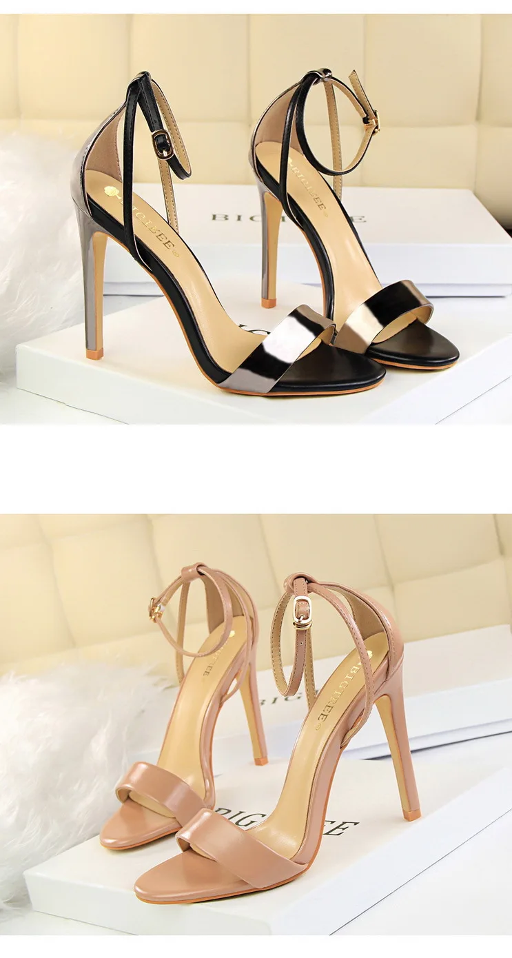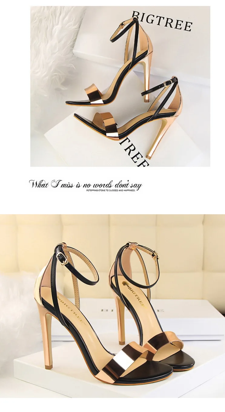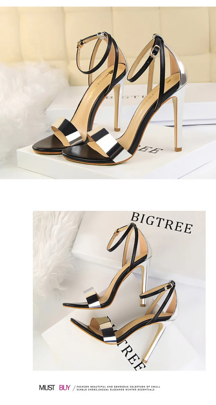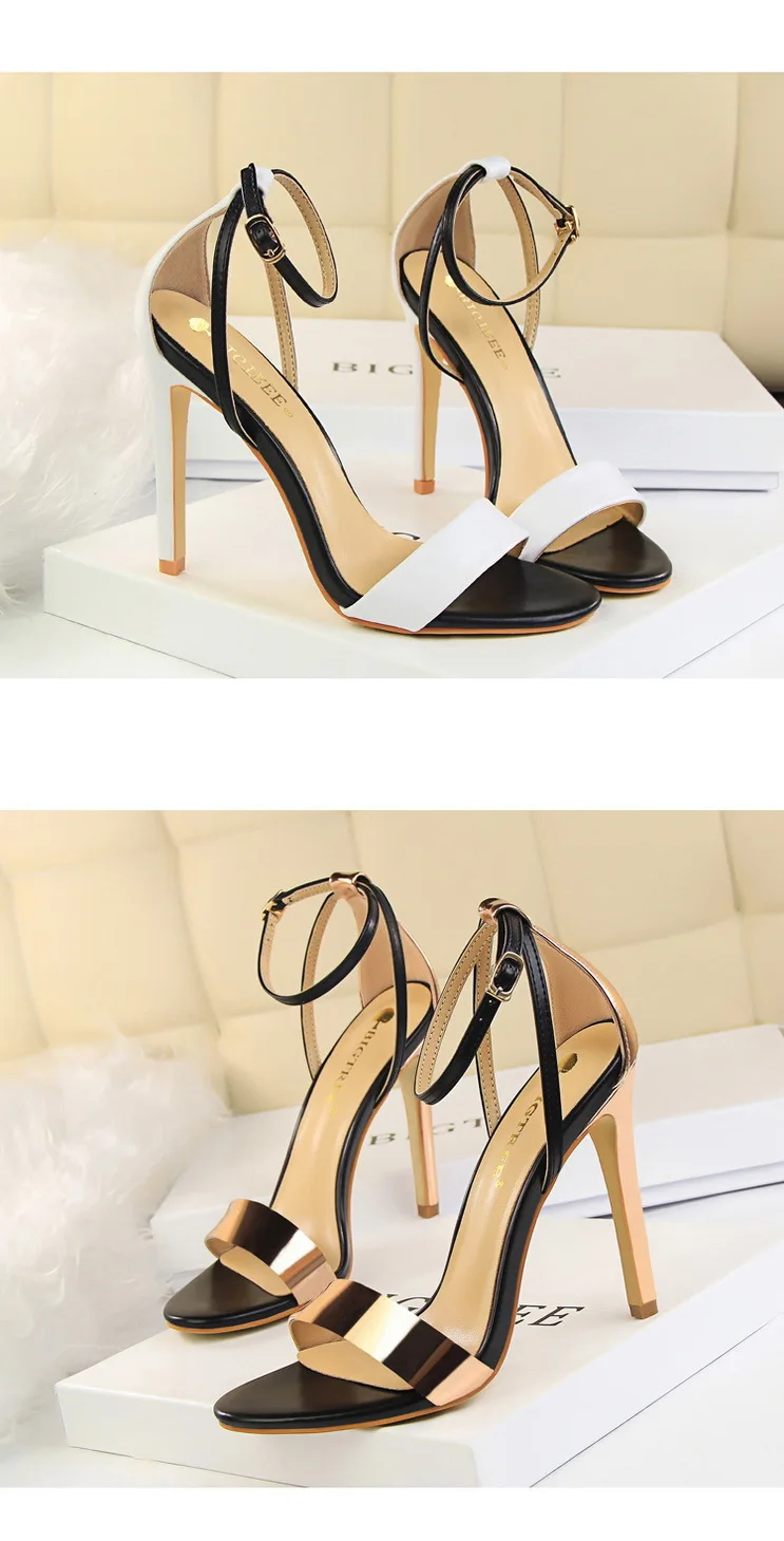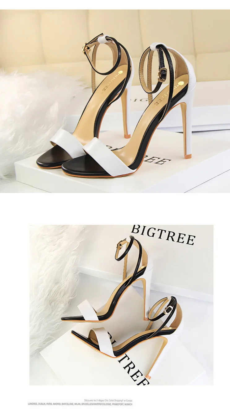BIGTREE Shoes Pu Leather High Heels 2022 New Women Heels Sexy Stiletto Heels 11 Cm Party Shoes Color Matching Women Sandals