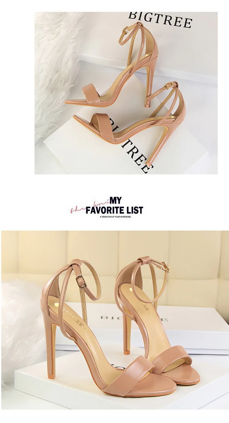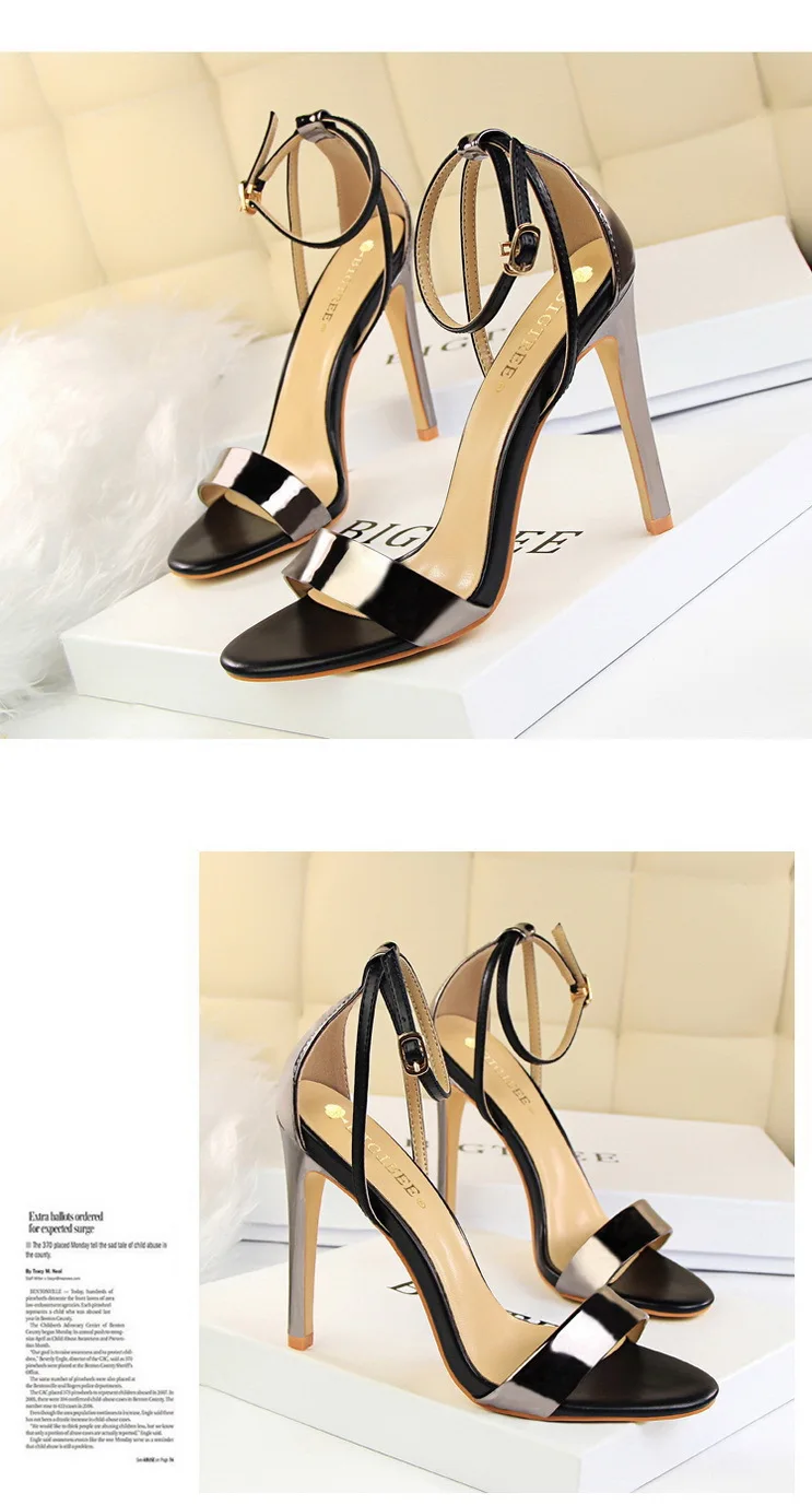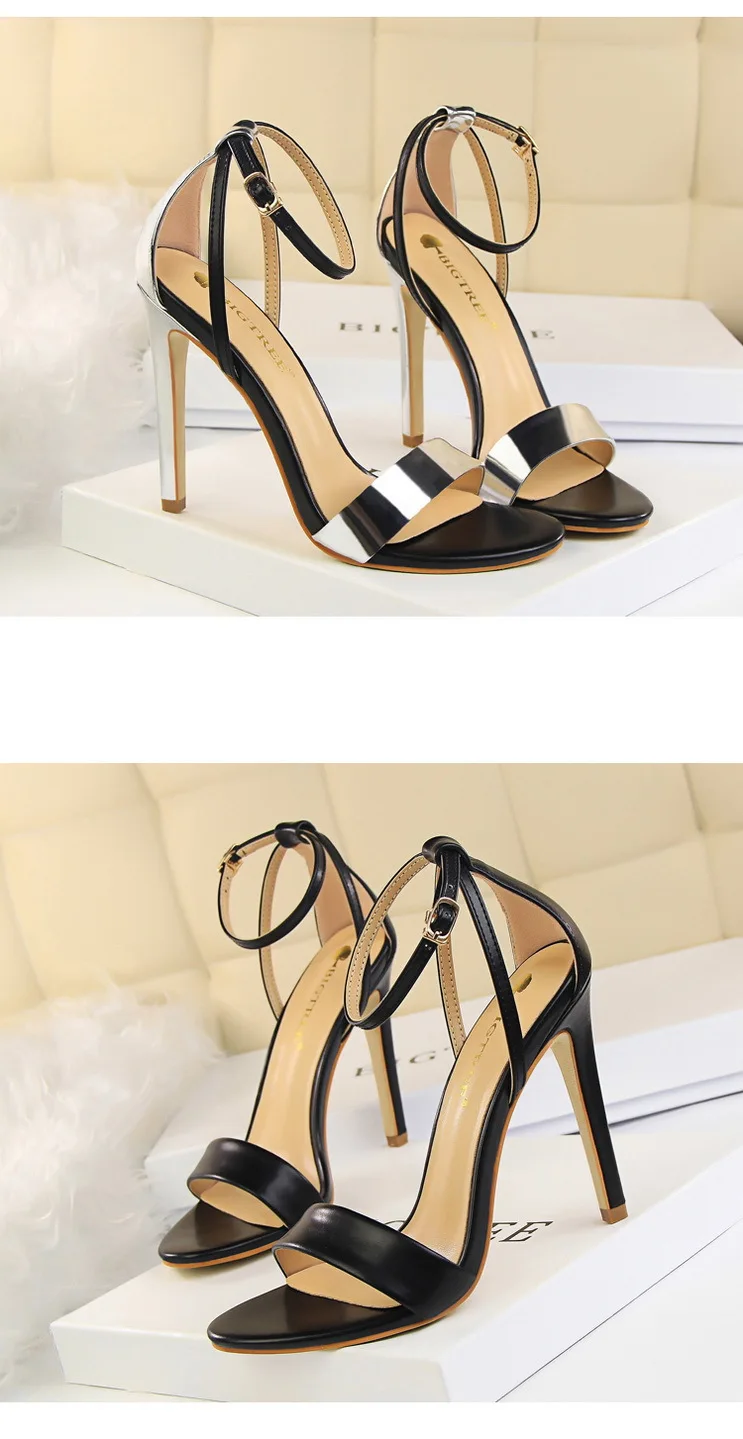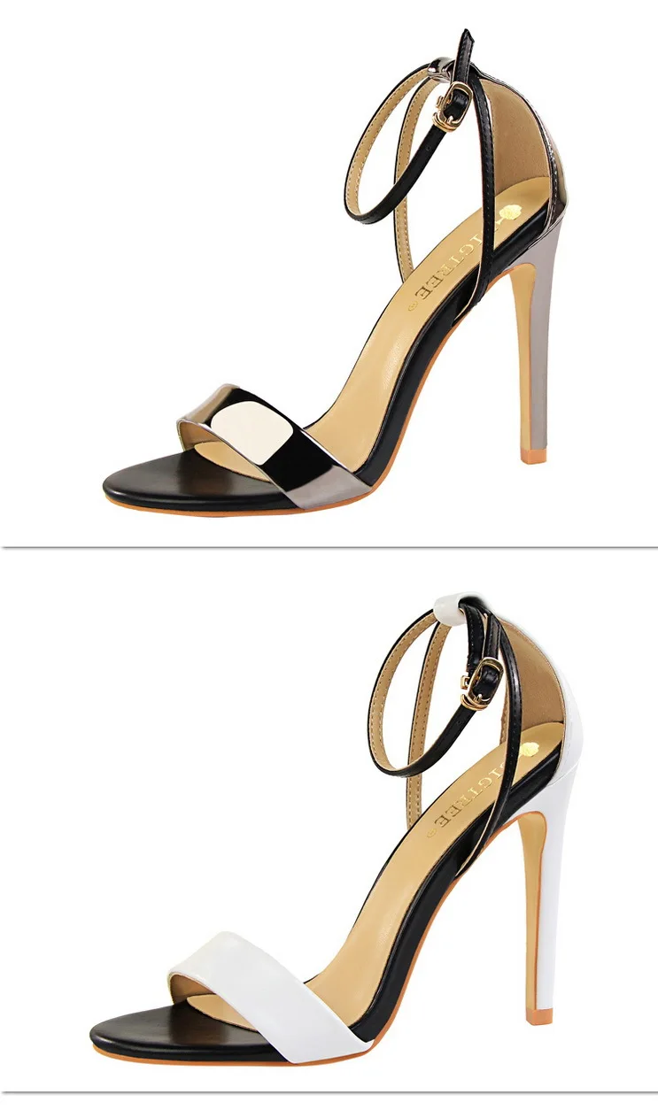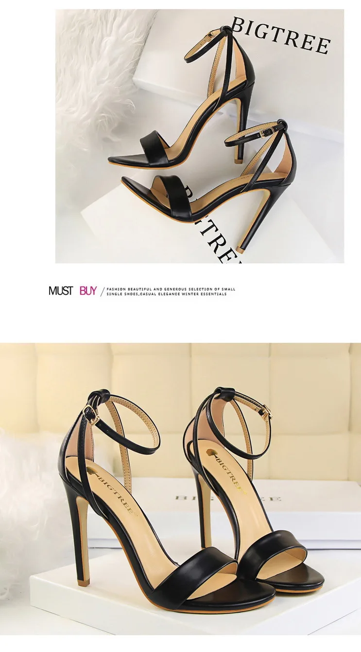 BIGTREE Shoes Pu Leather High Heels 2022 New Women Heels Sexy Stiletto Heels 11 Cm Party Shoes Color Matching Women Sandals