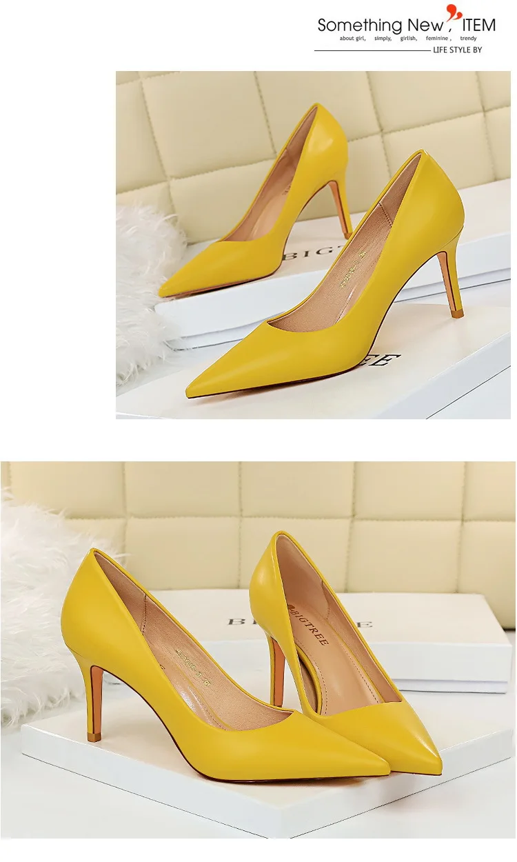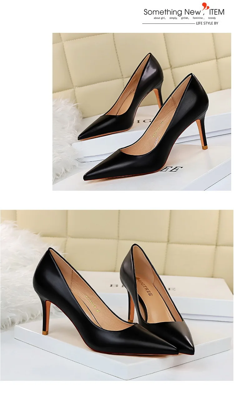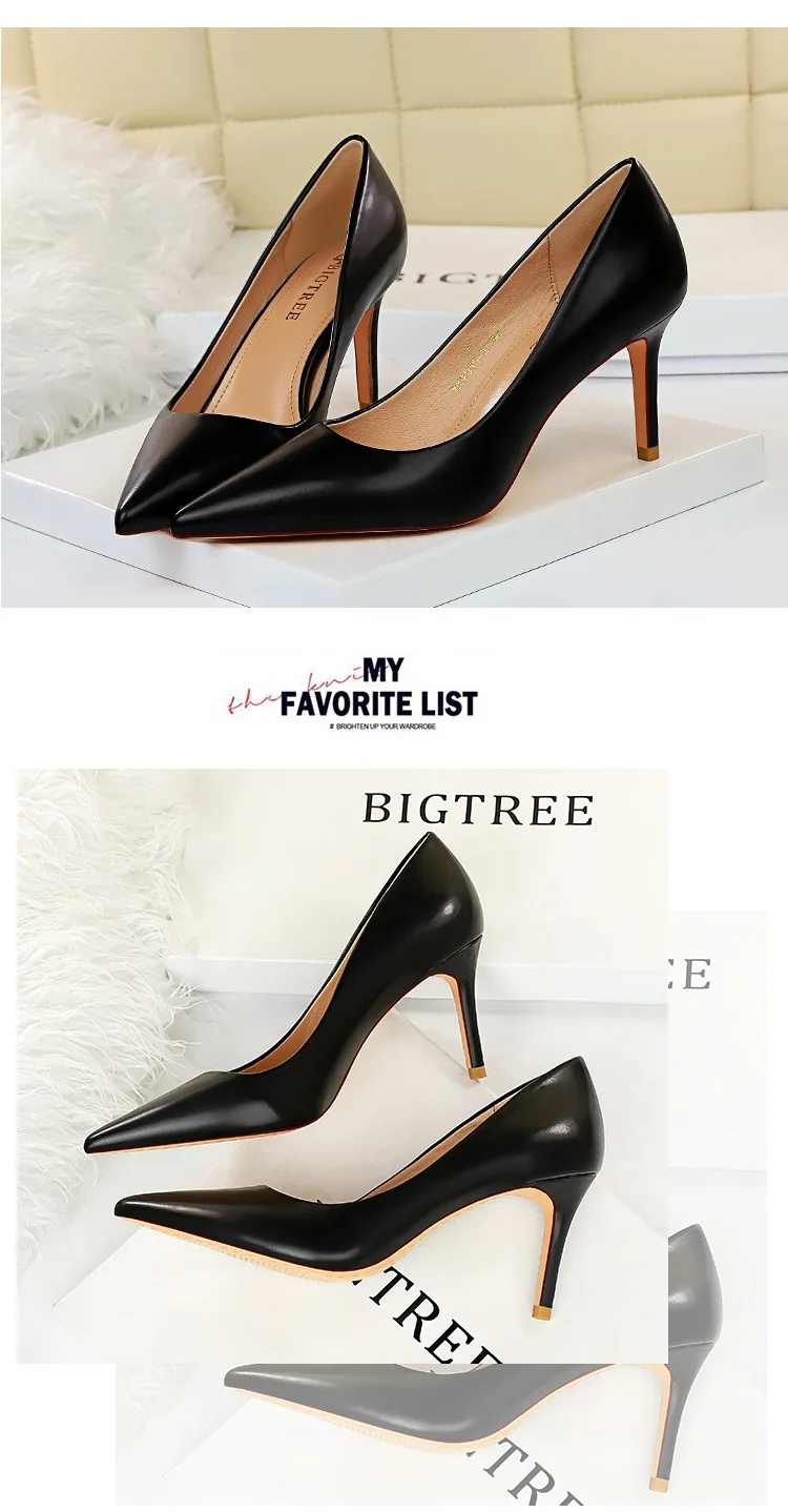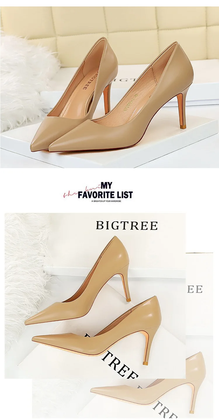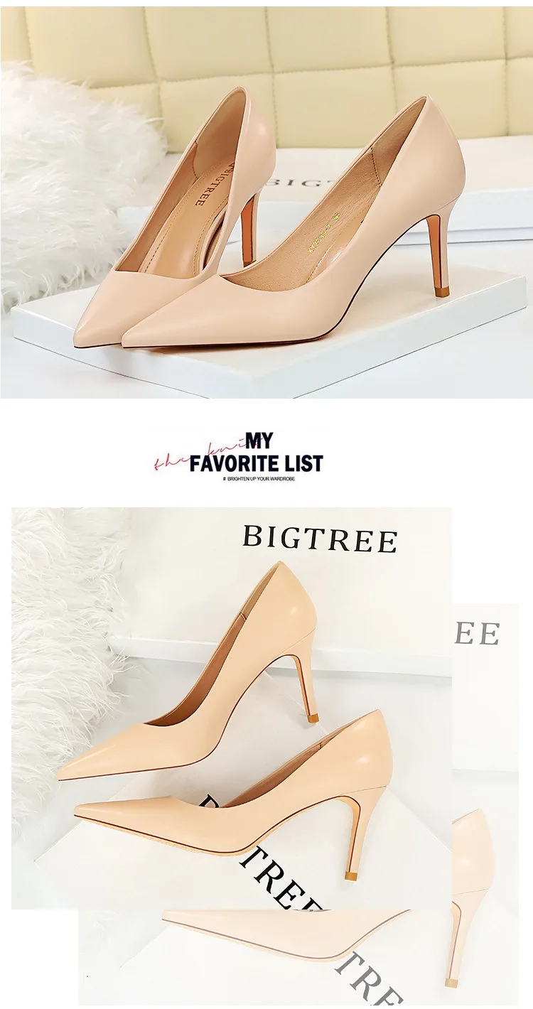 BIGTREE Shoes Pu Leather Woman Pumps Fashion Kitten Heels 7.5 Cm Occupation OL Office Shoes Women Heels 2021 Sexy Heeled Shoes