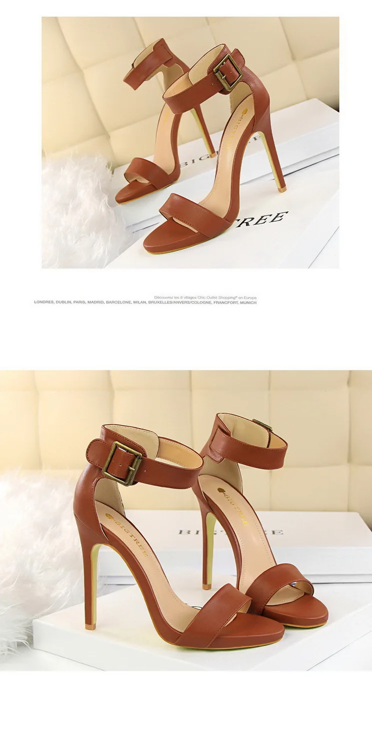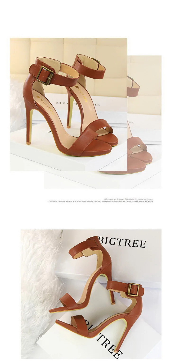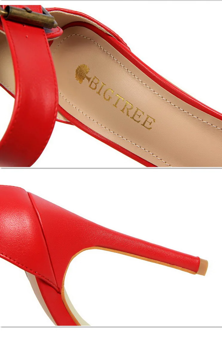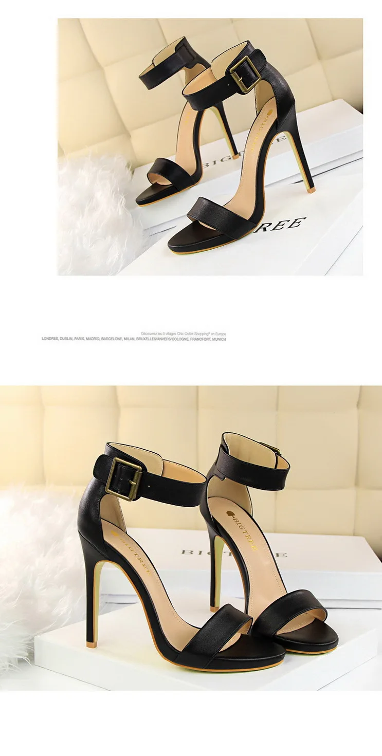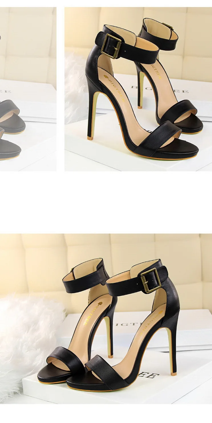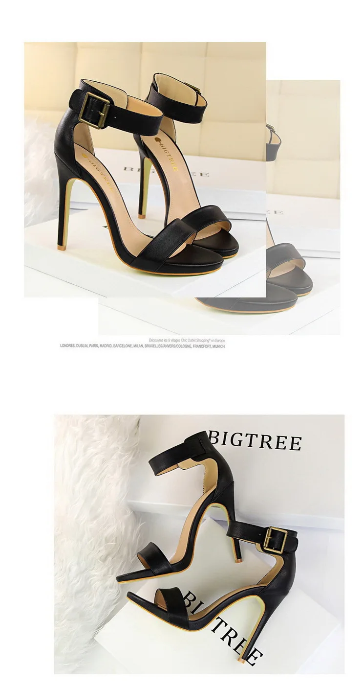 BIGTREE Shoes Pu Leather Women Pumps 11 Cm Super High Heels Belt Buckle Women Heels Fish Mouth Women Sandals Sexy Party Shoes