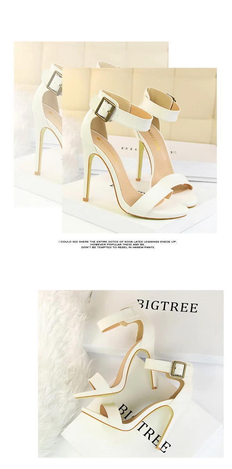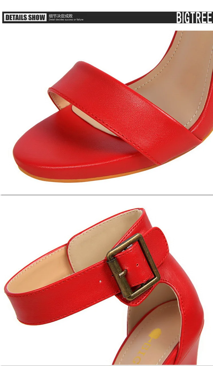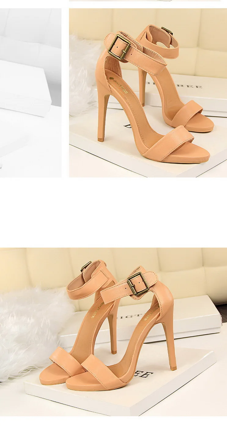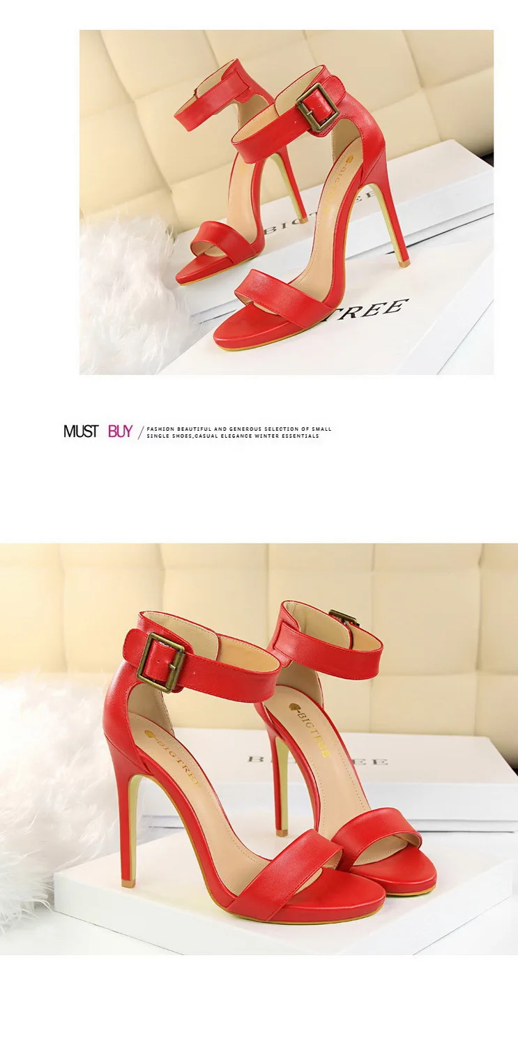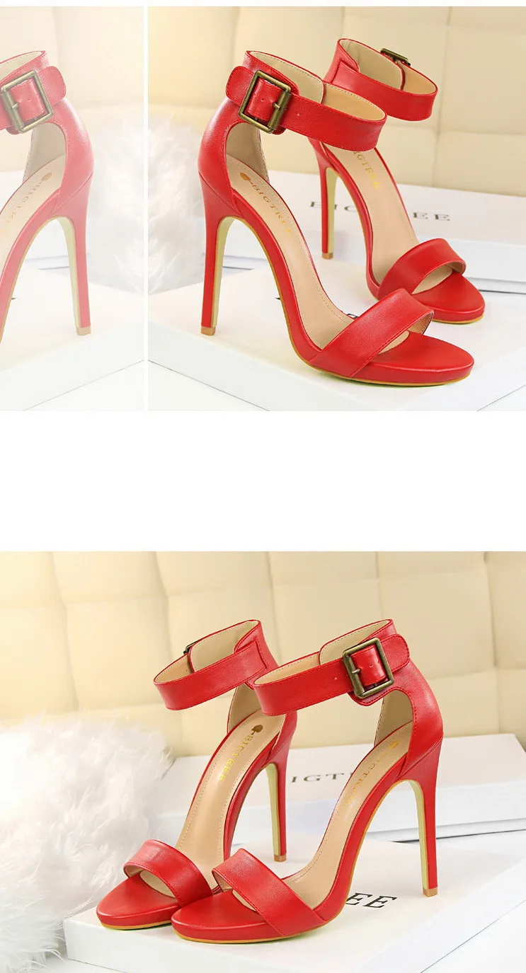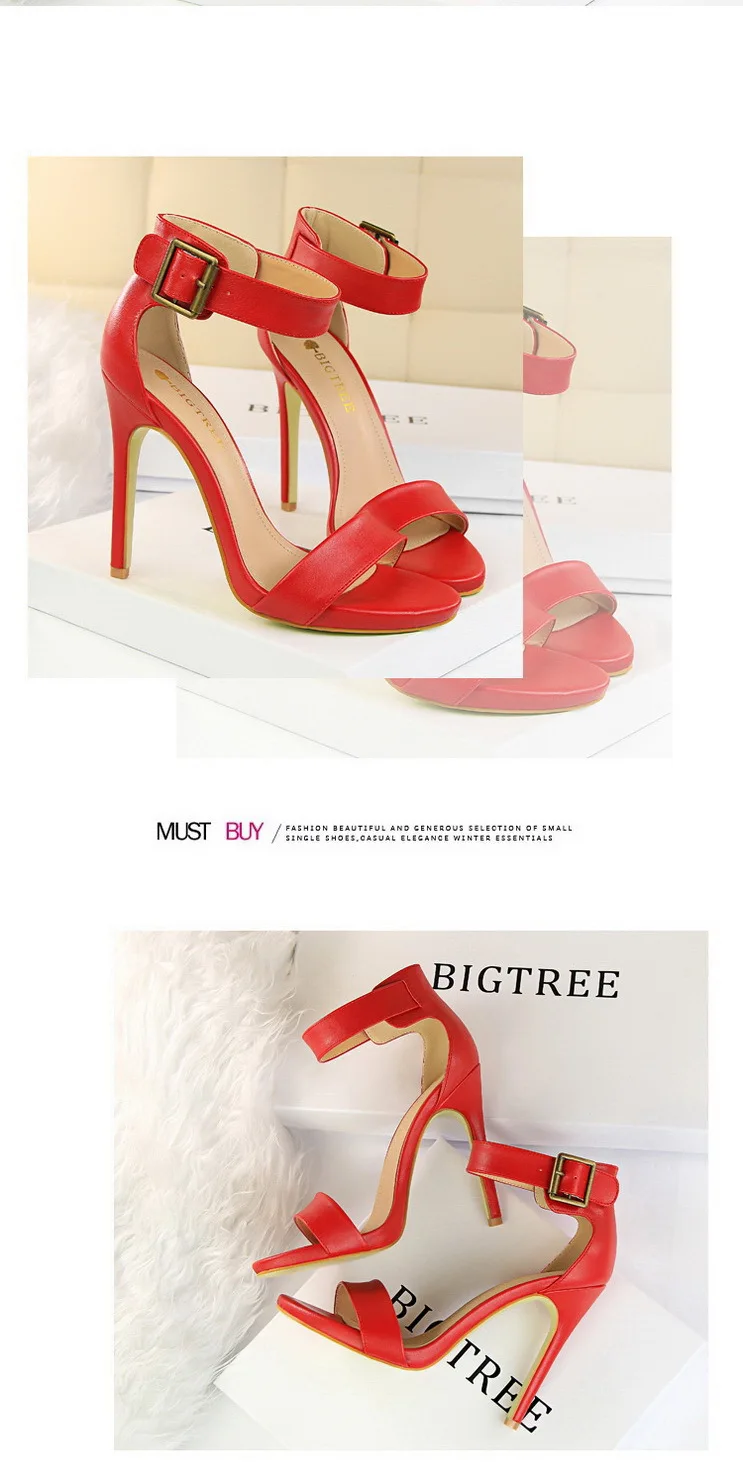 BIGTREE Shoes Pu Leather Women Pumps 11 Cm Super High Heels Belt Buckle Women Heels Fish Mouth Women Sandals Sexy Party Shoes