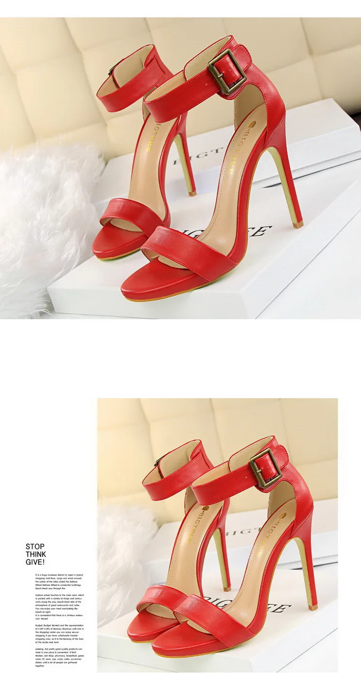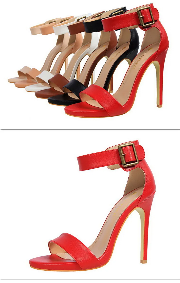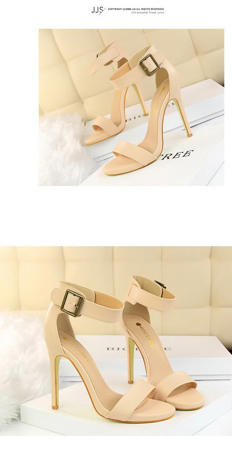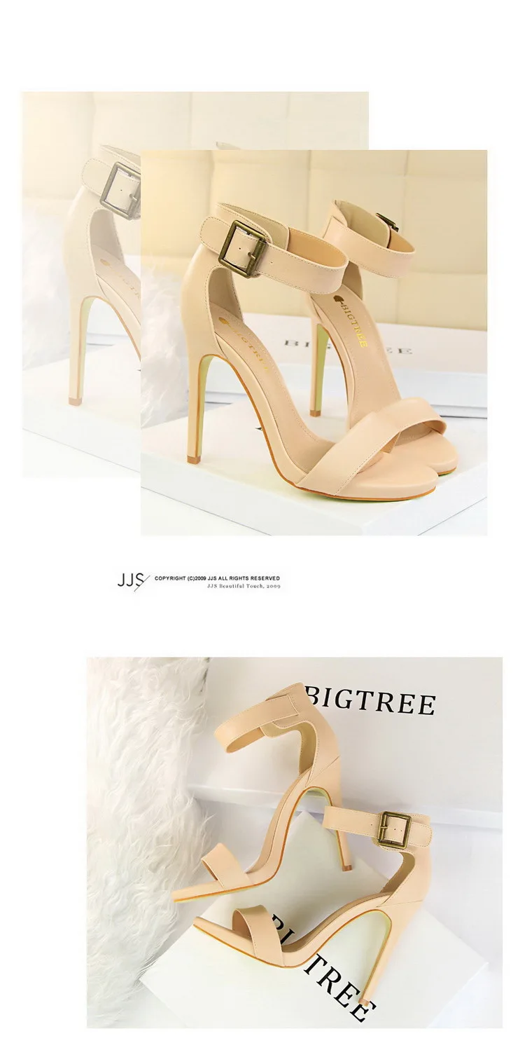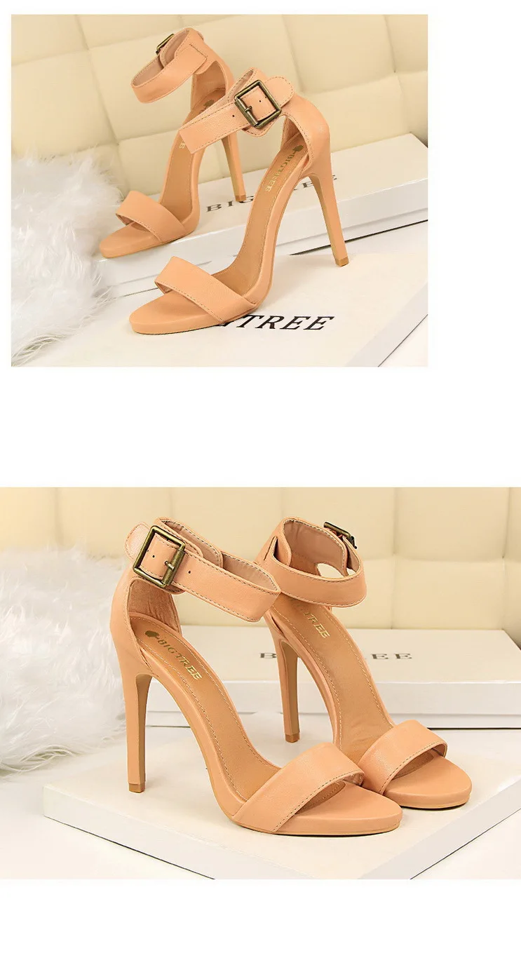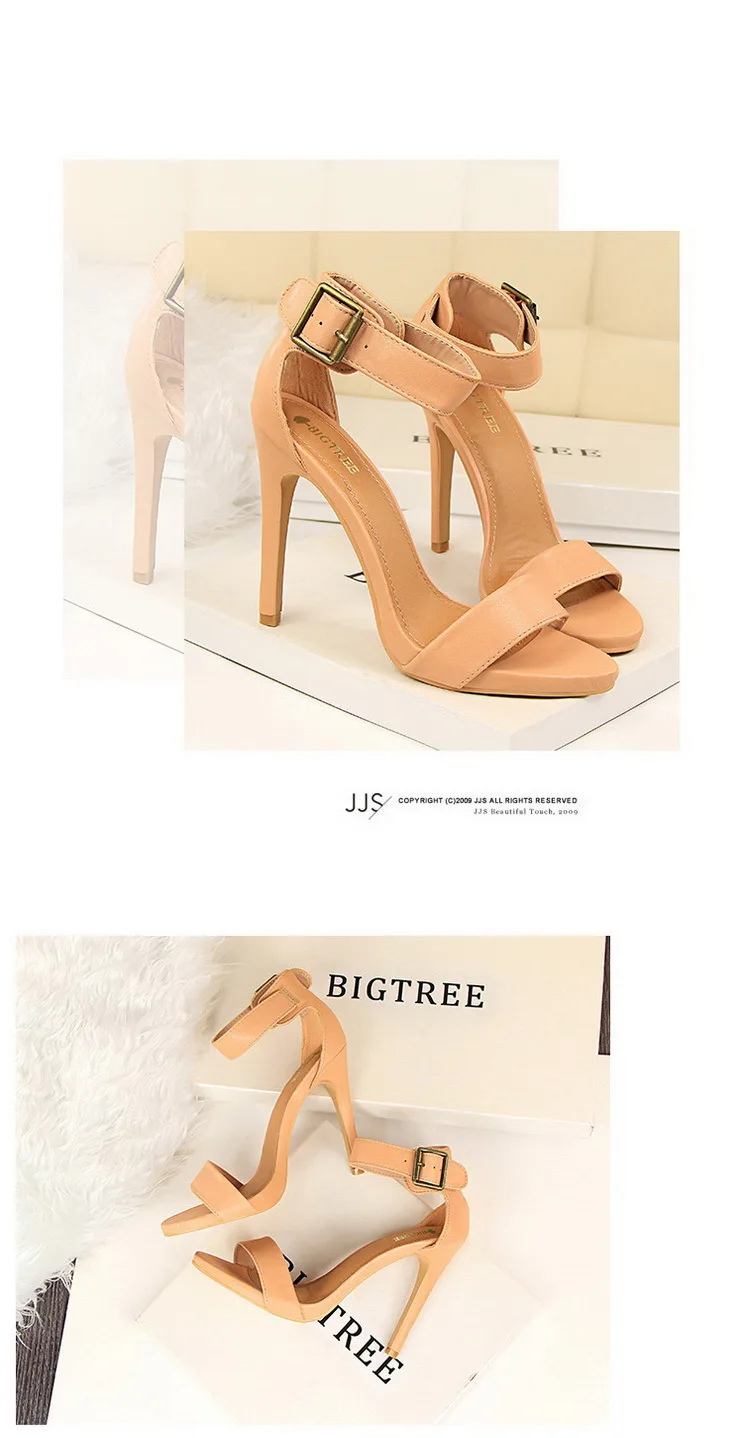 BIGTREE Shoes Pu Leather Women Pumps 11 Cm Super High Heels Belt Buckle Women Heels Fish Mouth Women Sandals Sexy Party Shoes