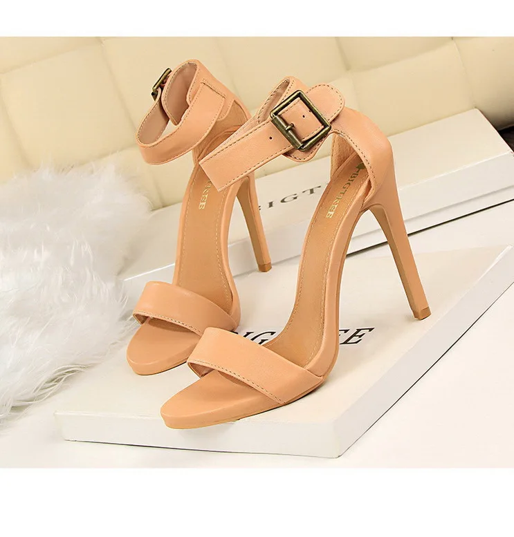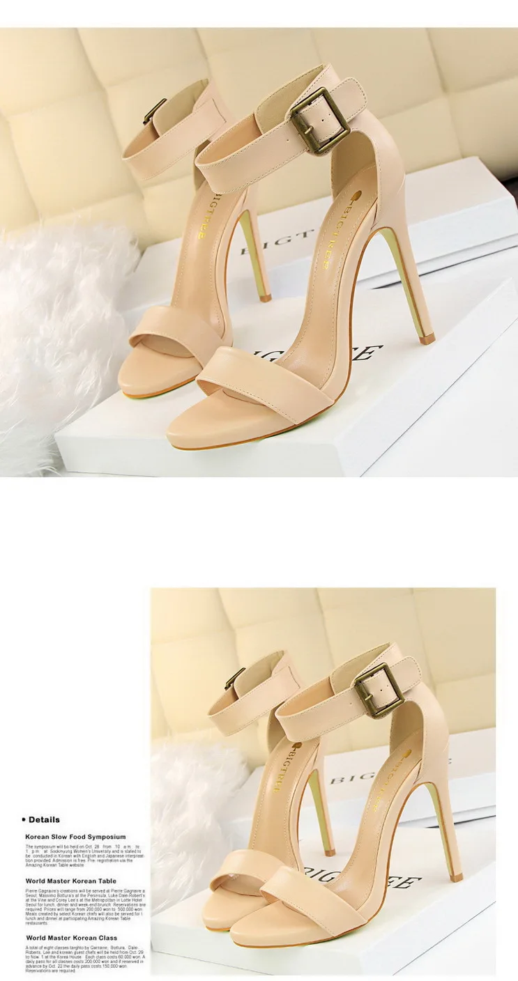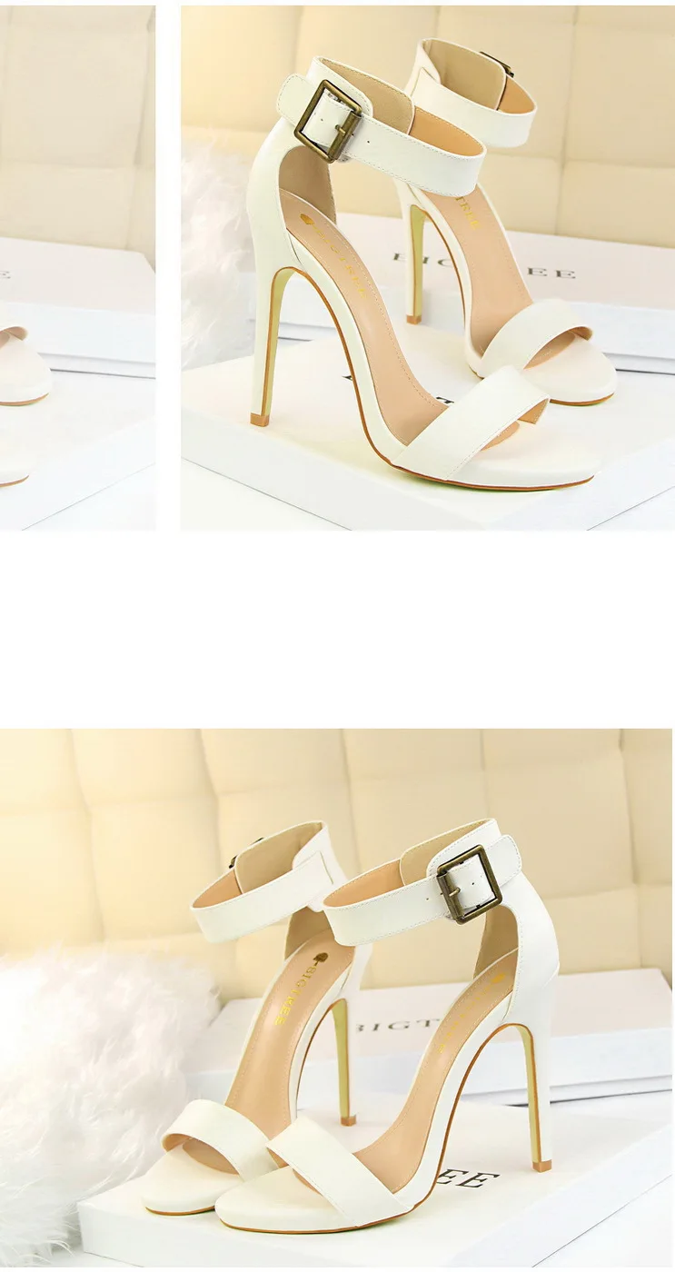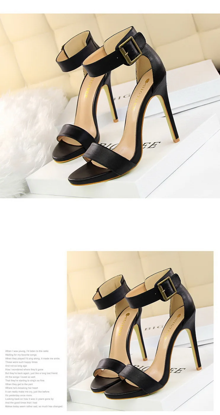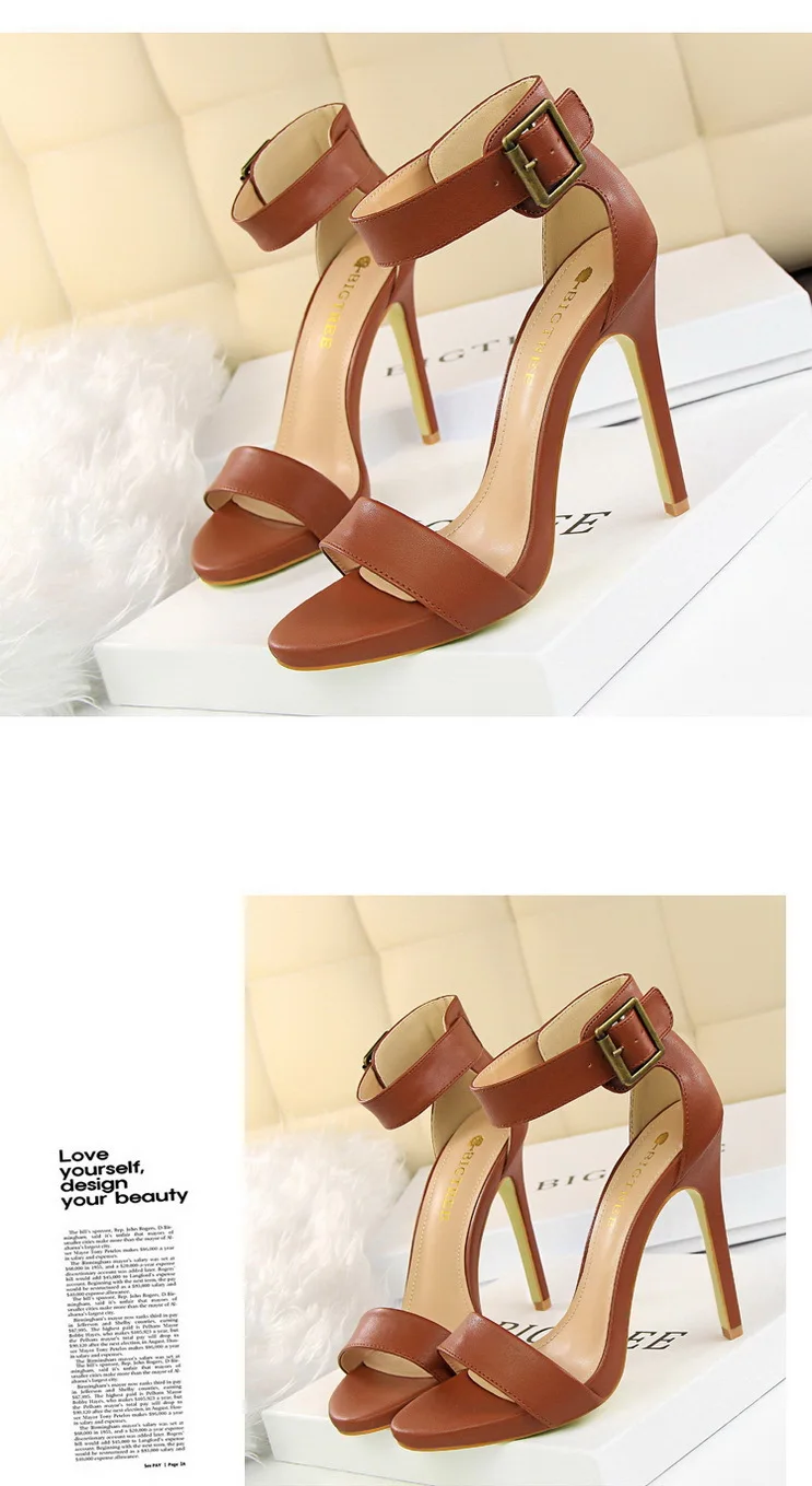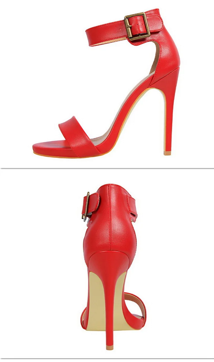 BIGTREE Shoes Pu Leather Women Pumps 11 Cm Super High Heels Belt Buckle Women Heels Fish Mouth Women Sandals Sexy Party Shoes