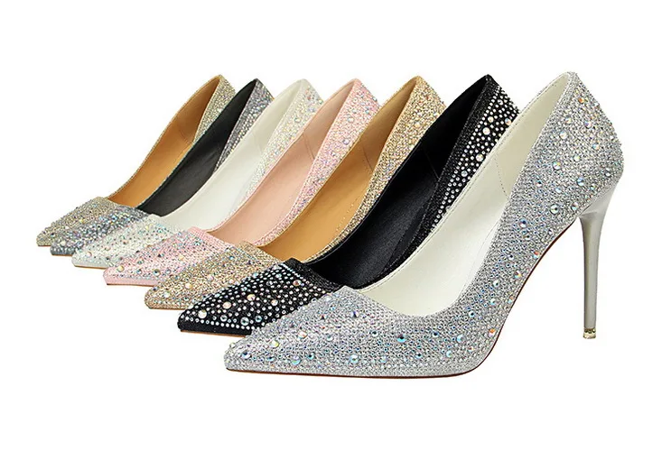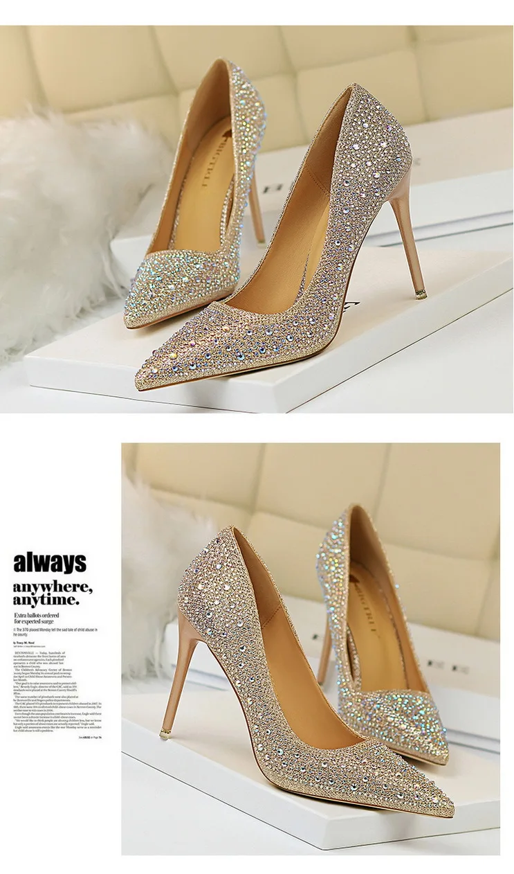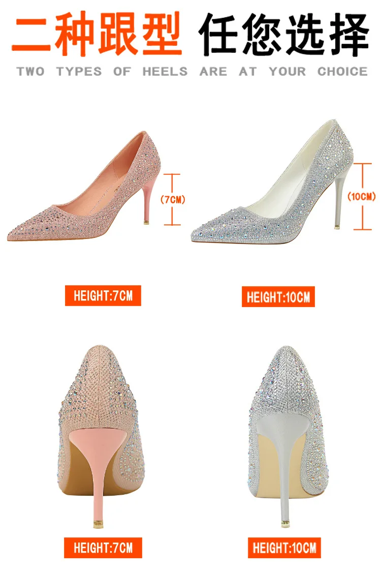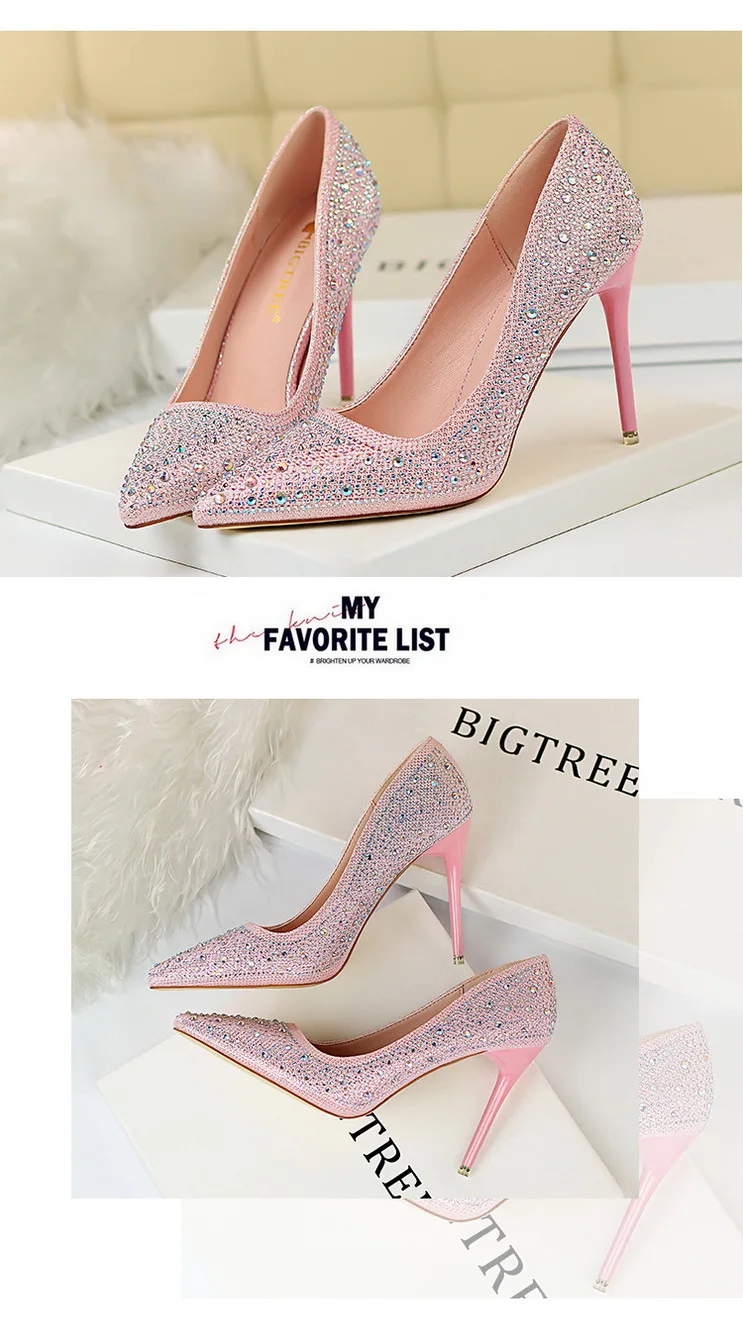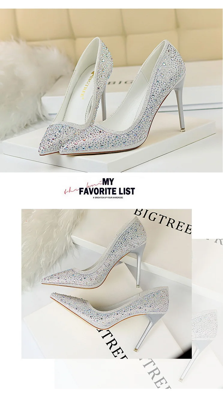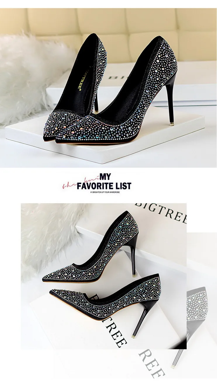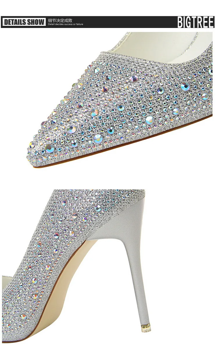BIGTREE Shoes Rhinestone Woman Pumps Fashion Wedding Shoes Women Basic Pump Stiletto Heels 10cm 7cm Heeled Shoes High Heels