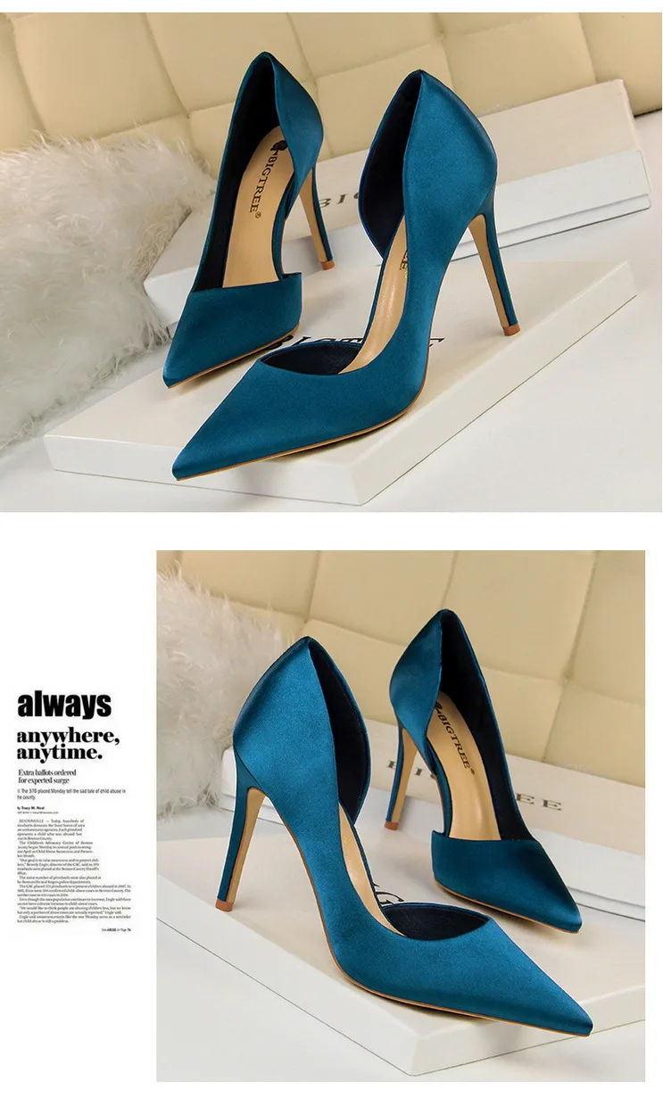 BIGTREE Shoes Sexy Woman Pumps Black Blue Sliver Women Heels Silk High Heels Women Shoes Stiletto Heels 9.5 Cm Ladies Shoes