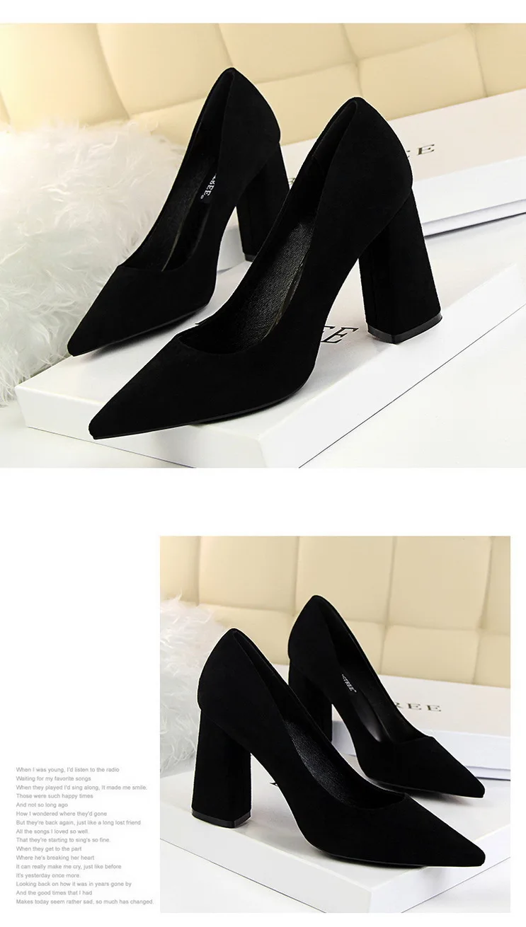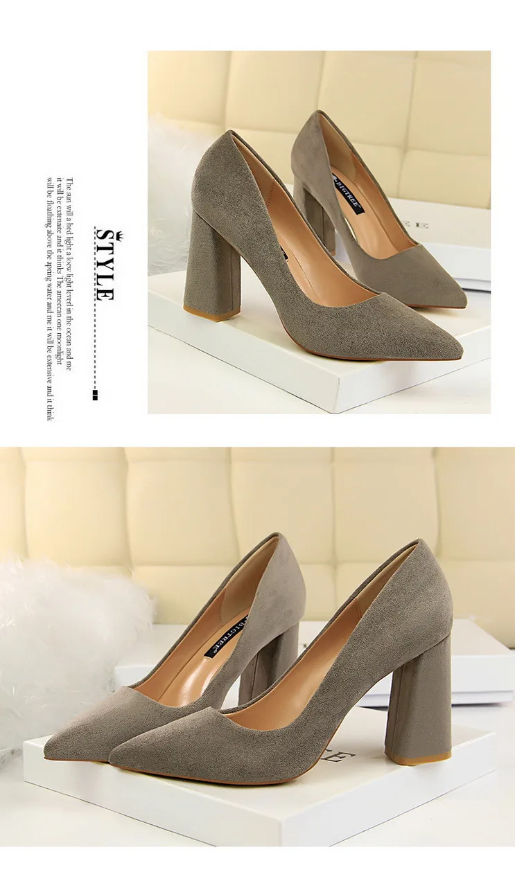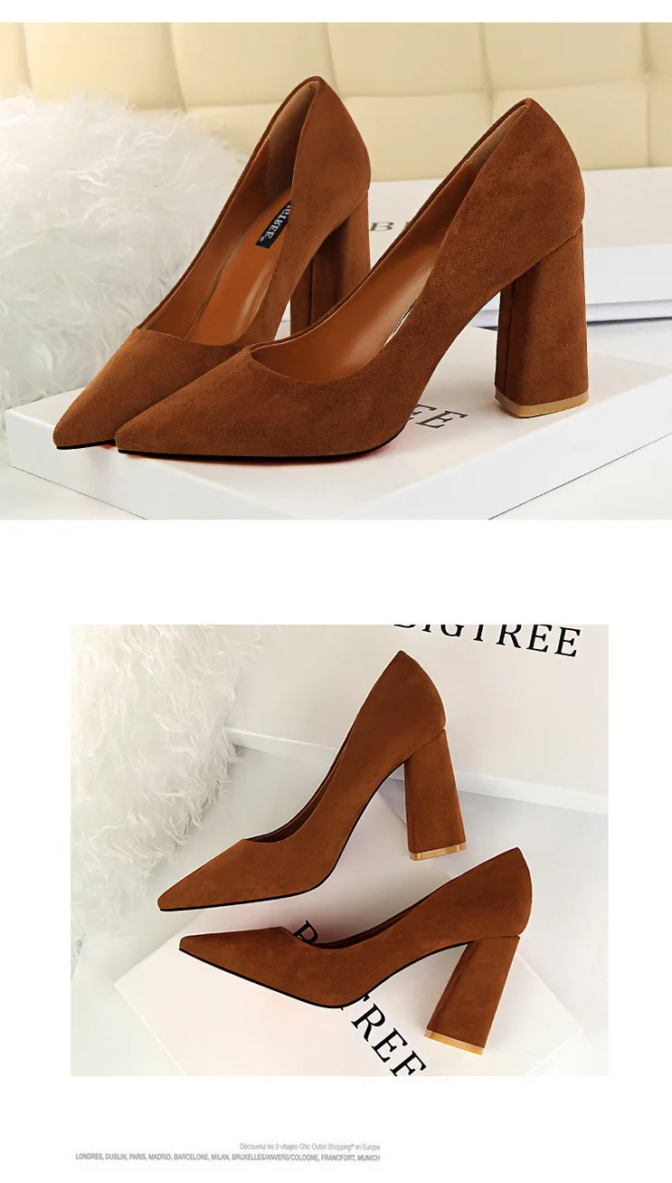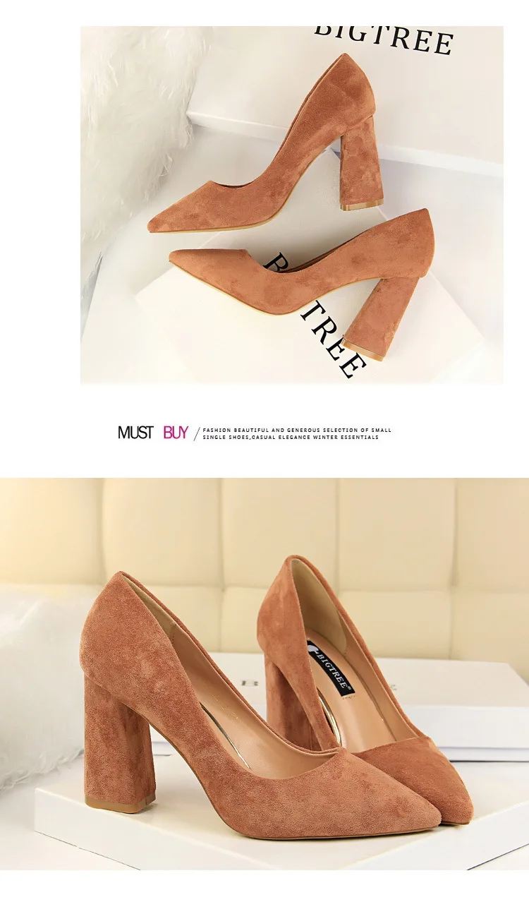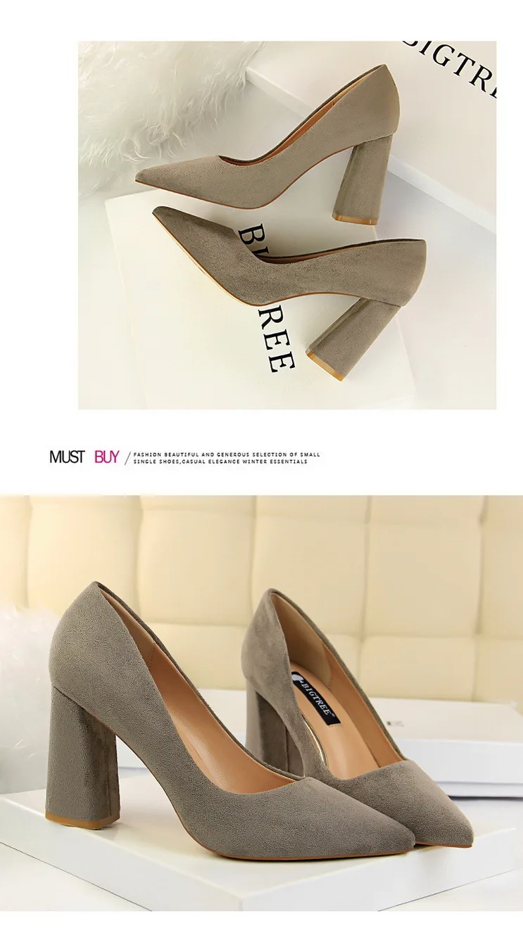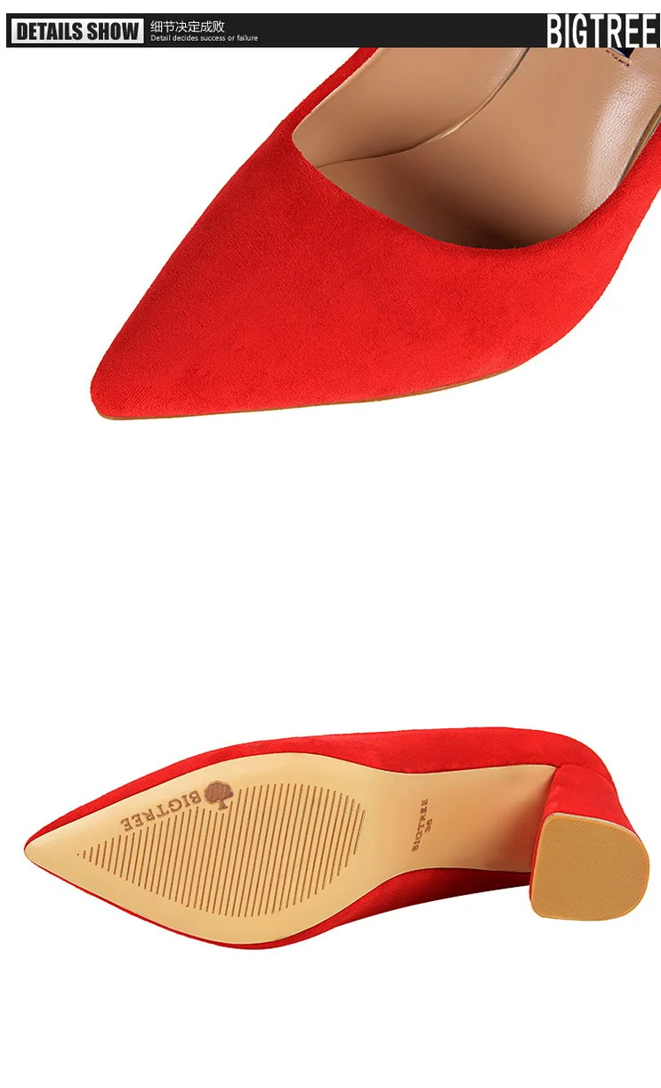 BIGTREE Shoes Thick Heel Woman Pumps Suede Women Heels Office Shoes Pointed Toe High Heels Wedding Shoes Female Heel Shoes
