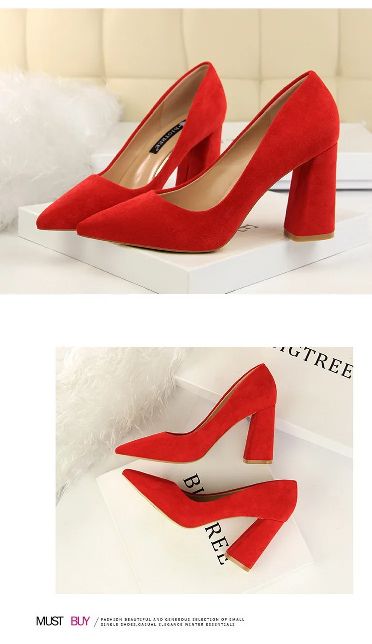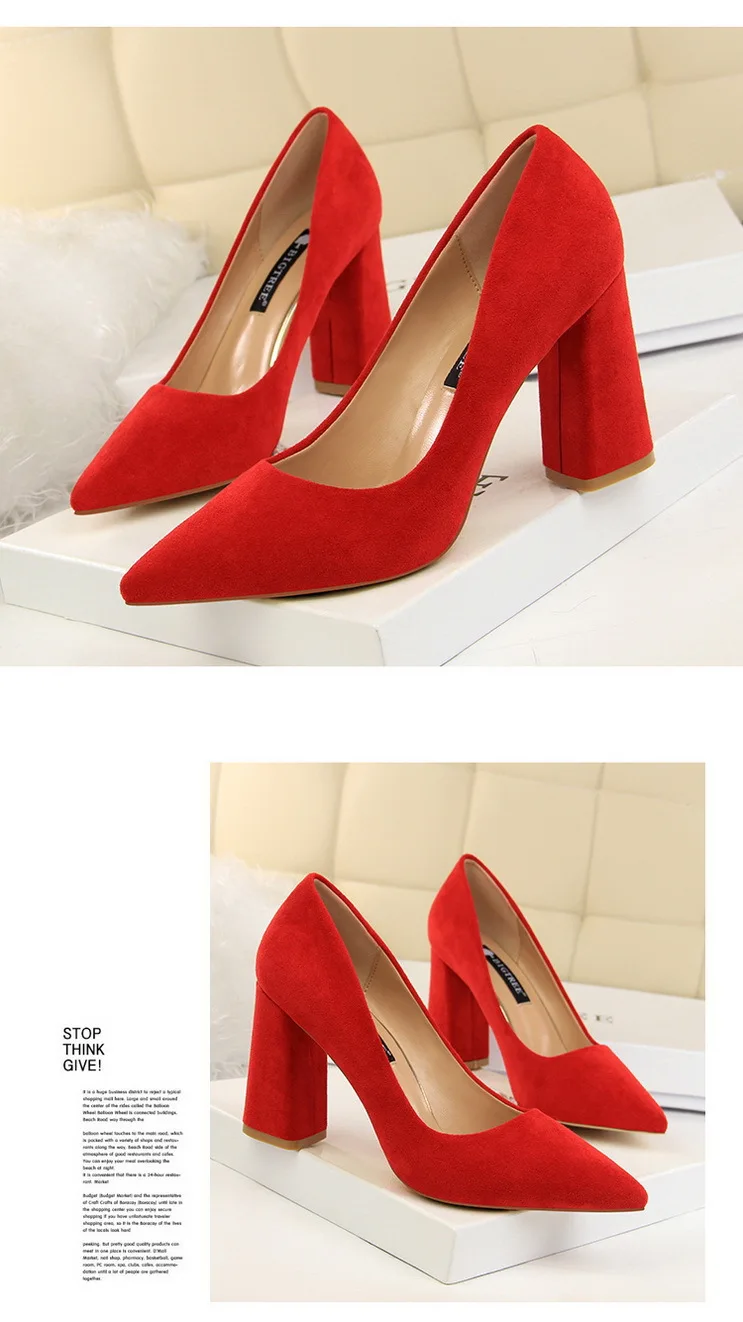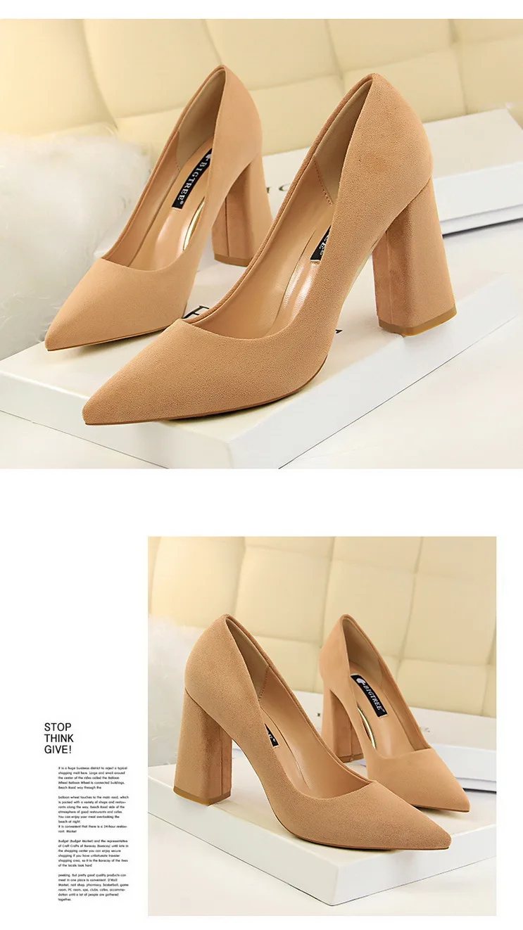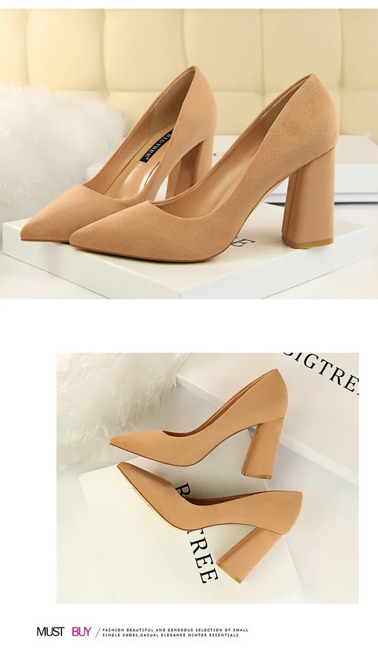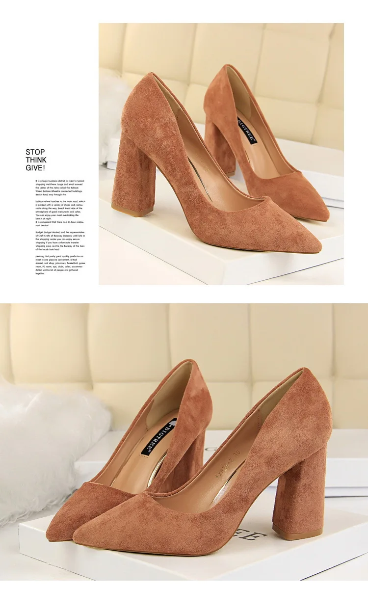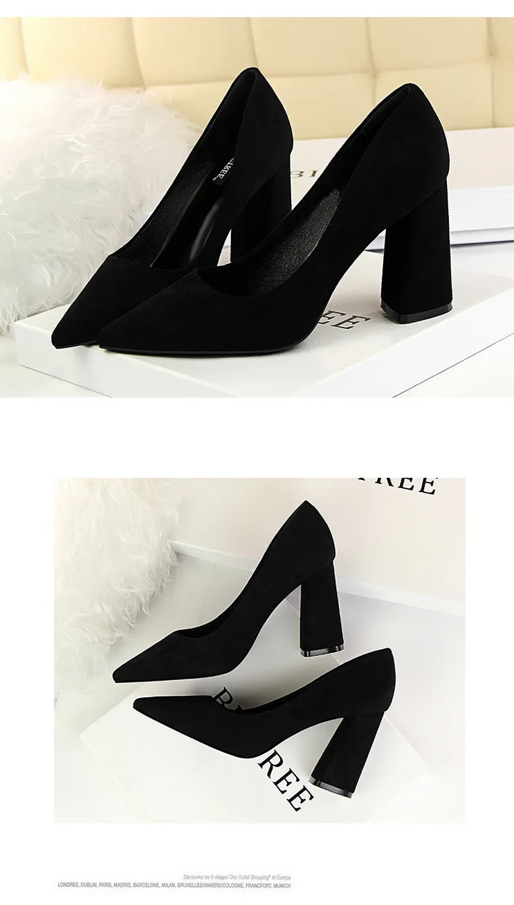 BIGTREE Shoes Thick Heel Woman Pumps Suede Women Heels Office Shoes Pointed Toe High Heels Wedding Shoes Female Heel Shoes